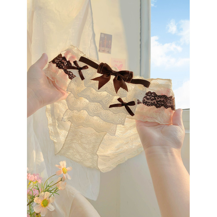 甜心糖霜~可愛女生高顔值內褲女7a級抗菌絕美蕾絲女款透氣三角褲