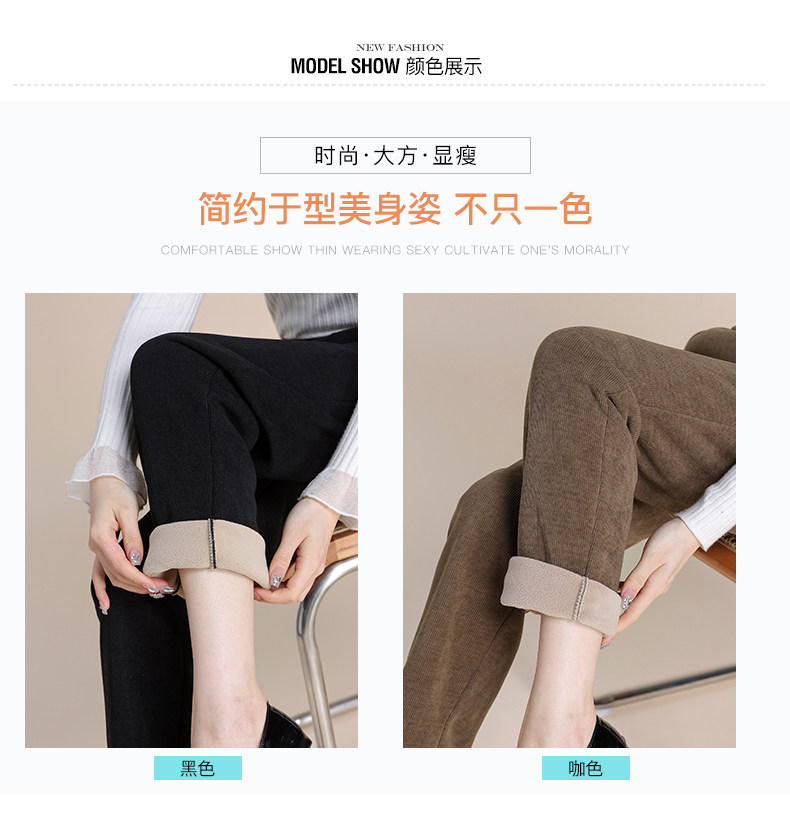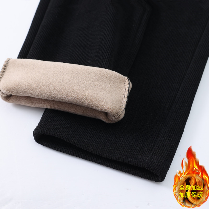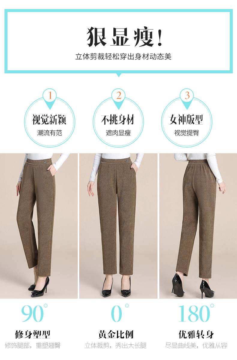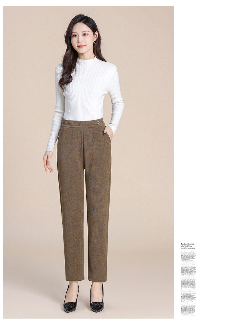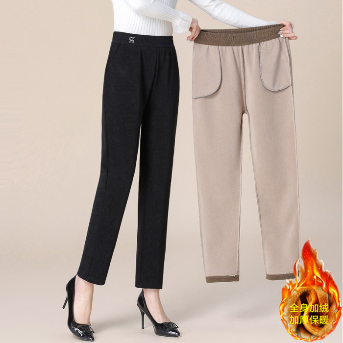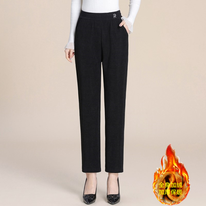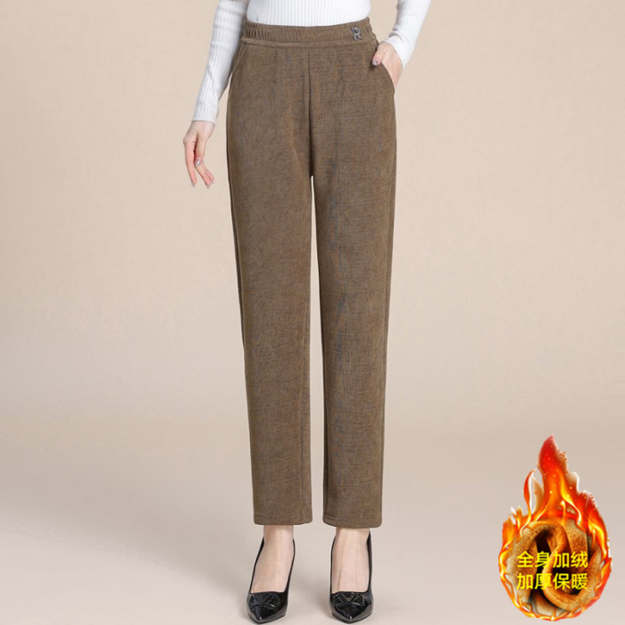 中年女秋冬款媽媽外穿條絨長褲加絨加厚中老年女裝直筒休閒褲子