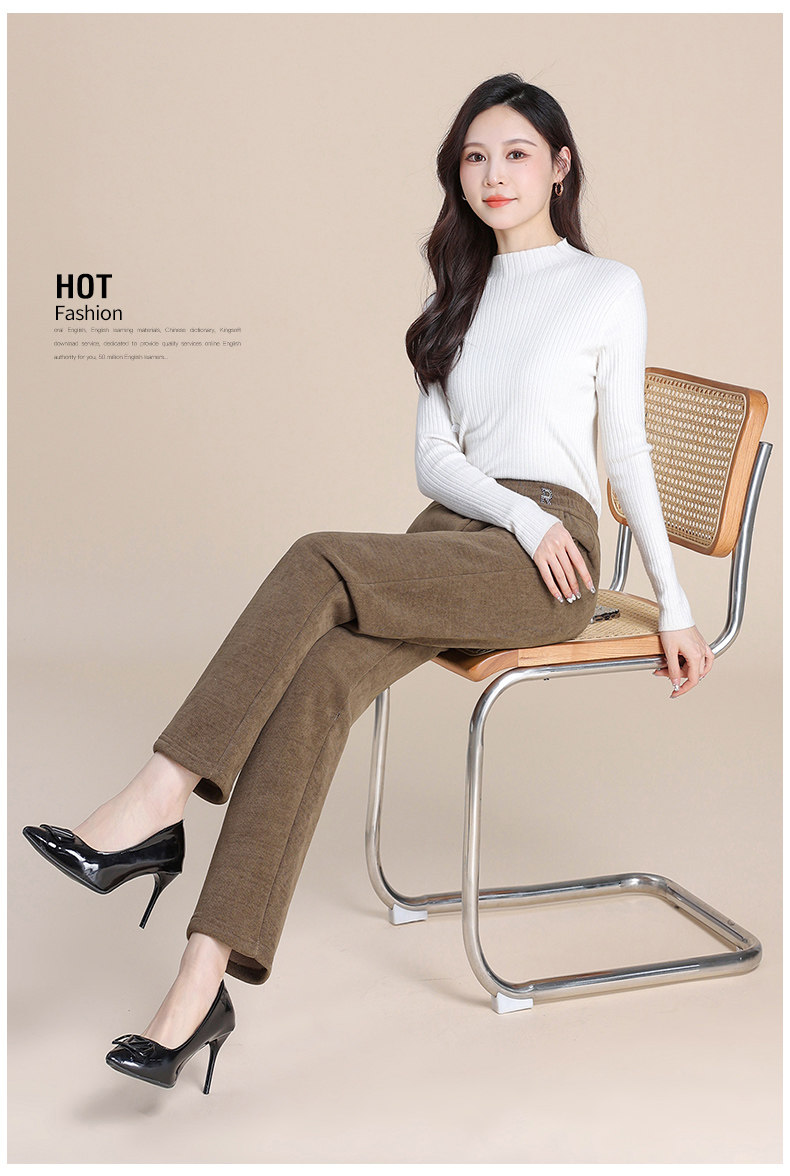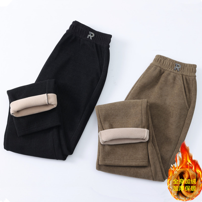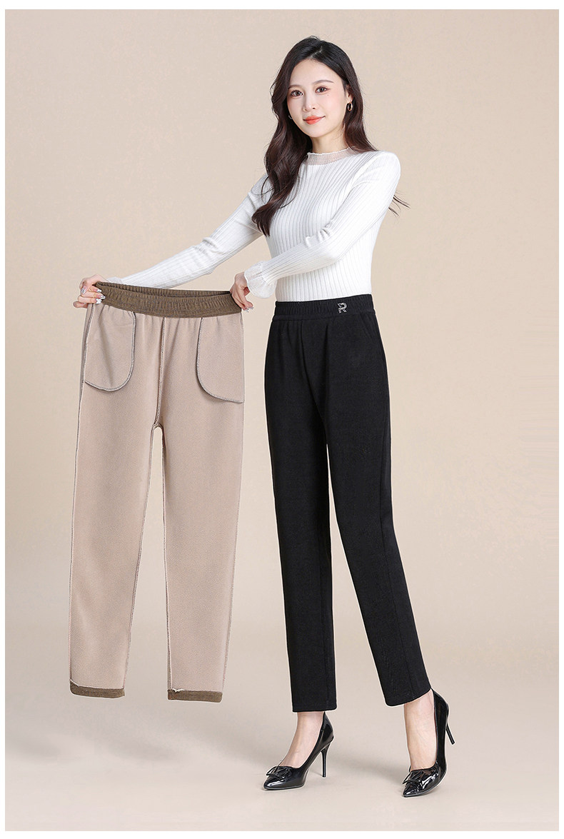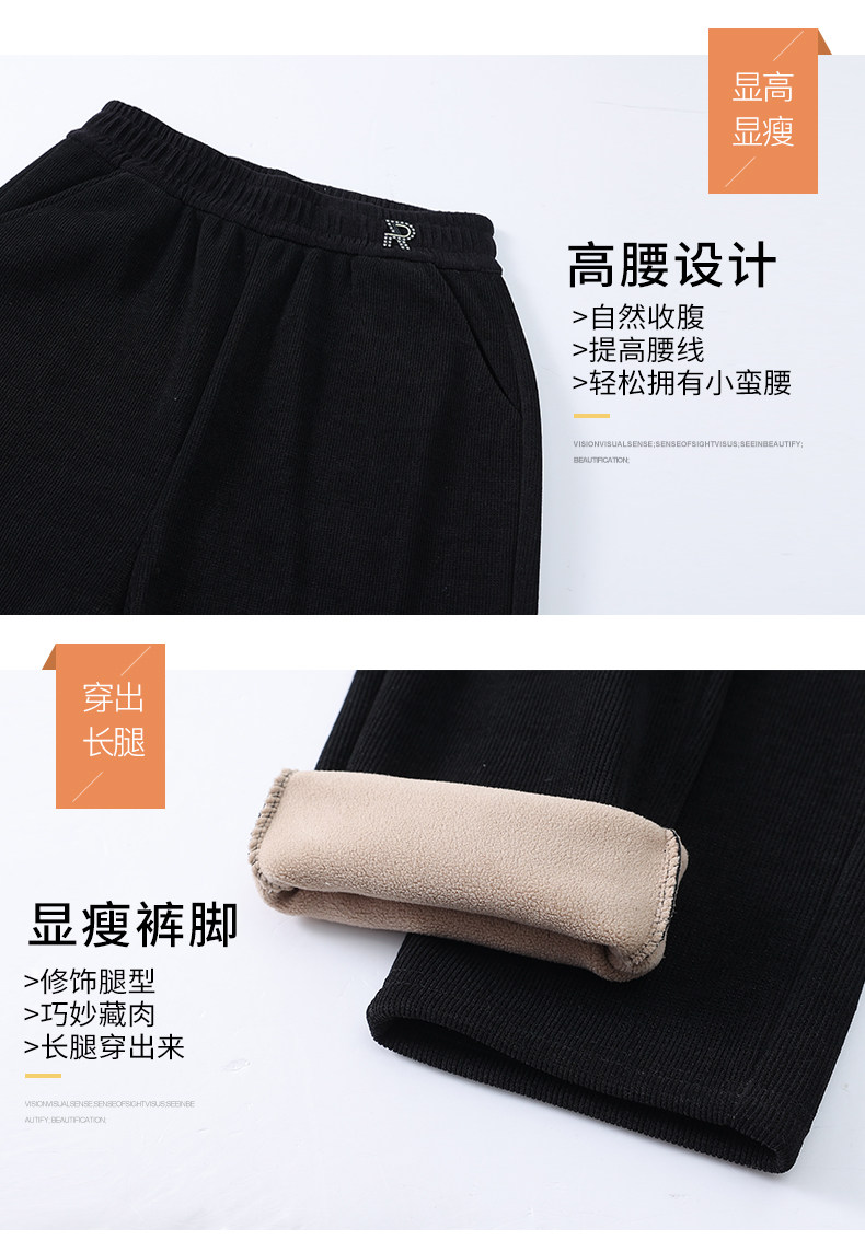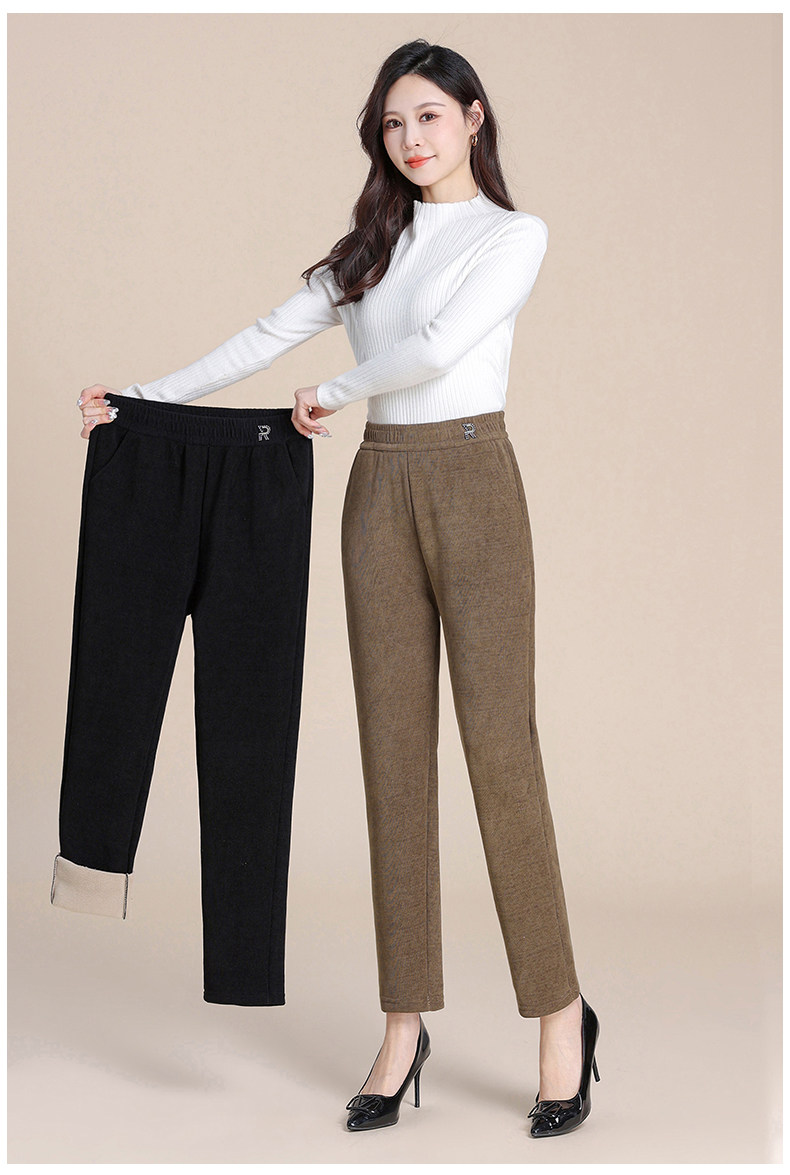 中年女秋冬款媽媽外穿條絨長褲加絨加厚中老年女裝直筒休閒褲子