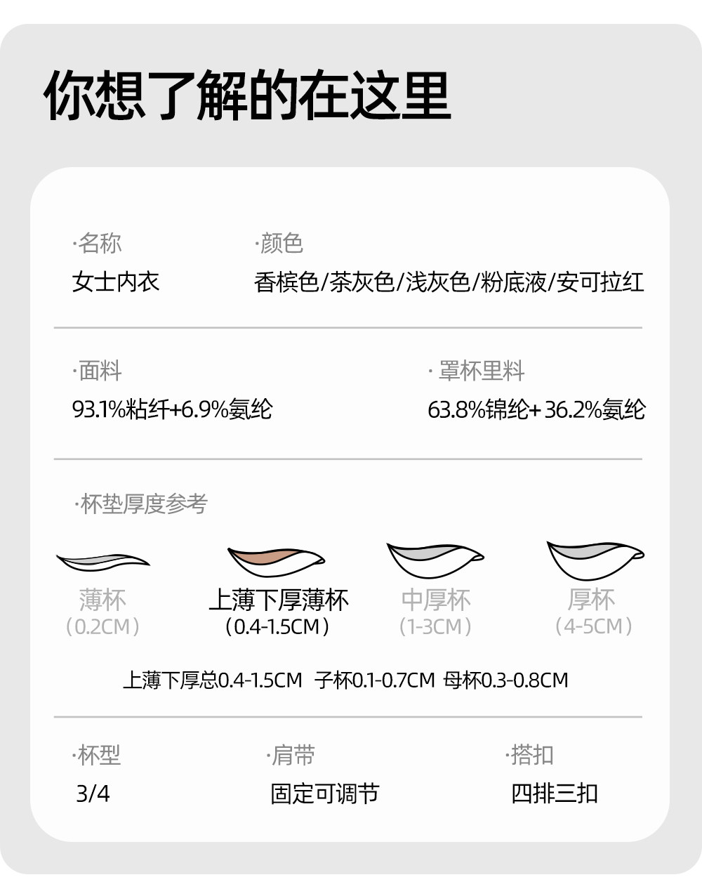 | 罩杯裡料成分含量 | 61%(含)-80%(含) |
