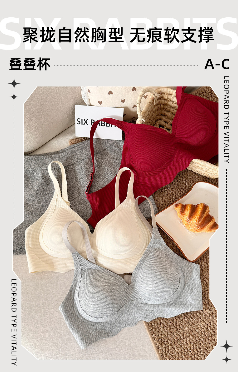 六隻兔子內衣女小胸聚攏顯大胸罩無鋼圈軟支撐側收副乳防外擴文胸
