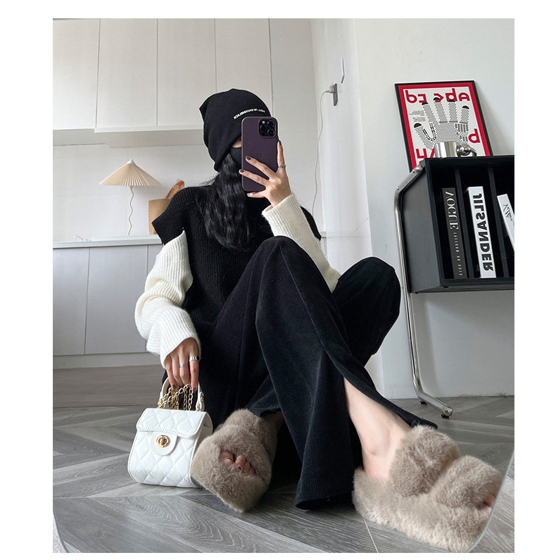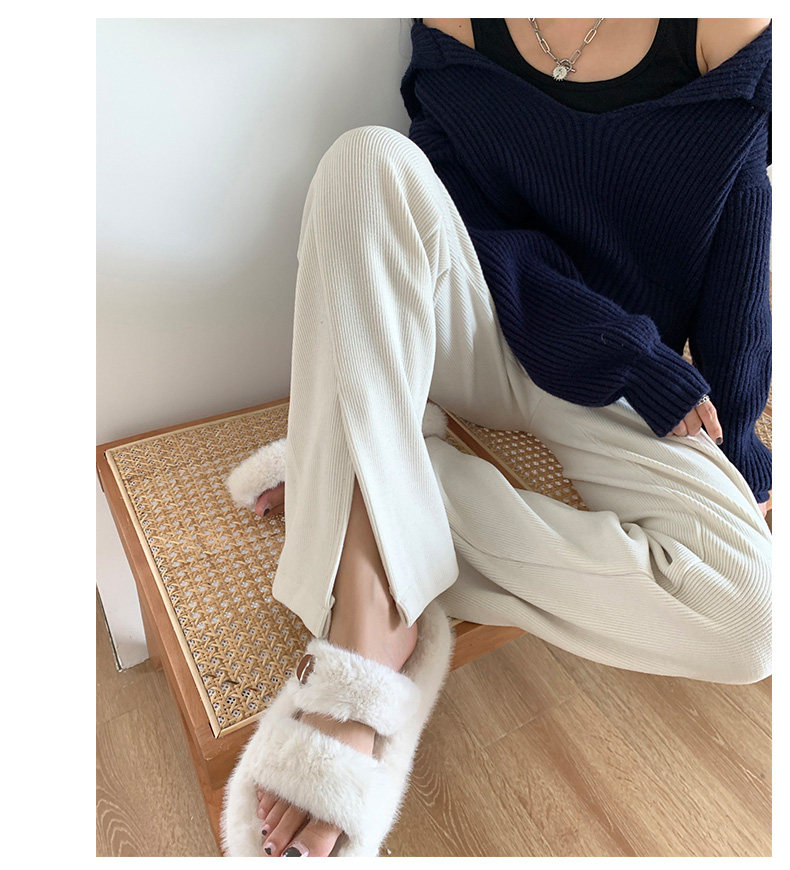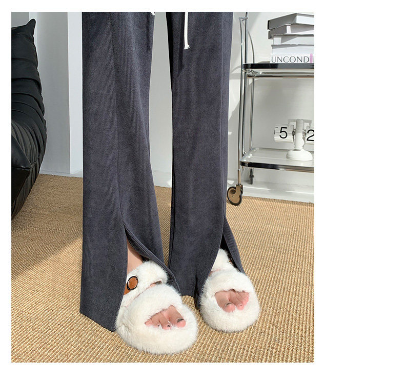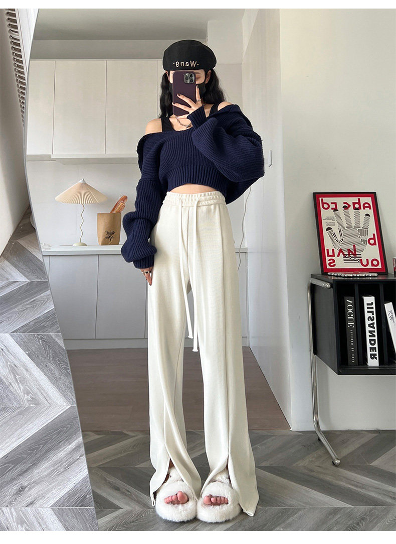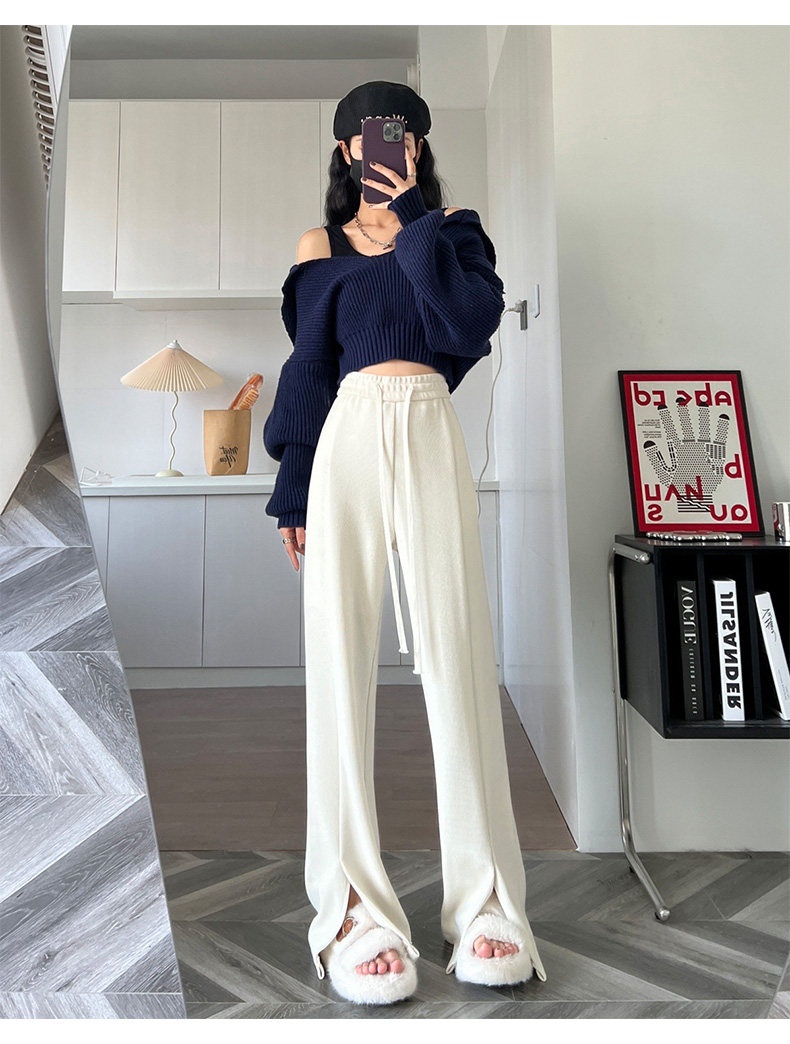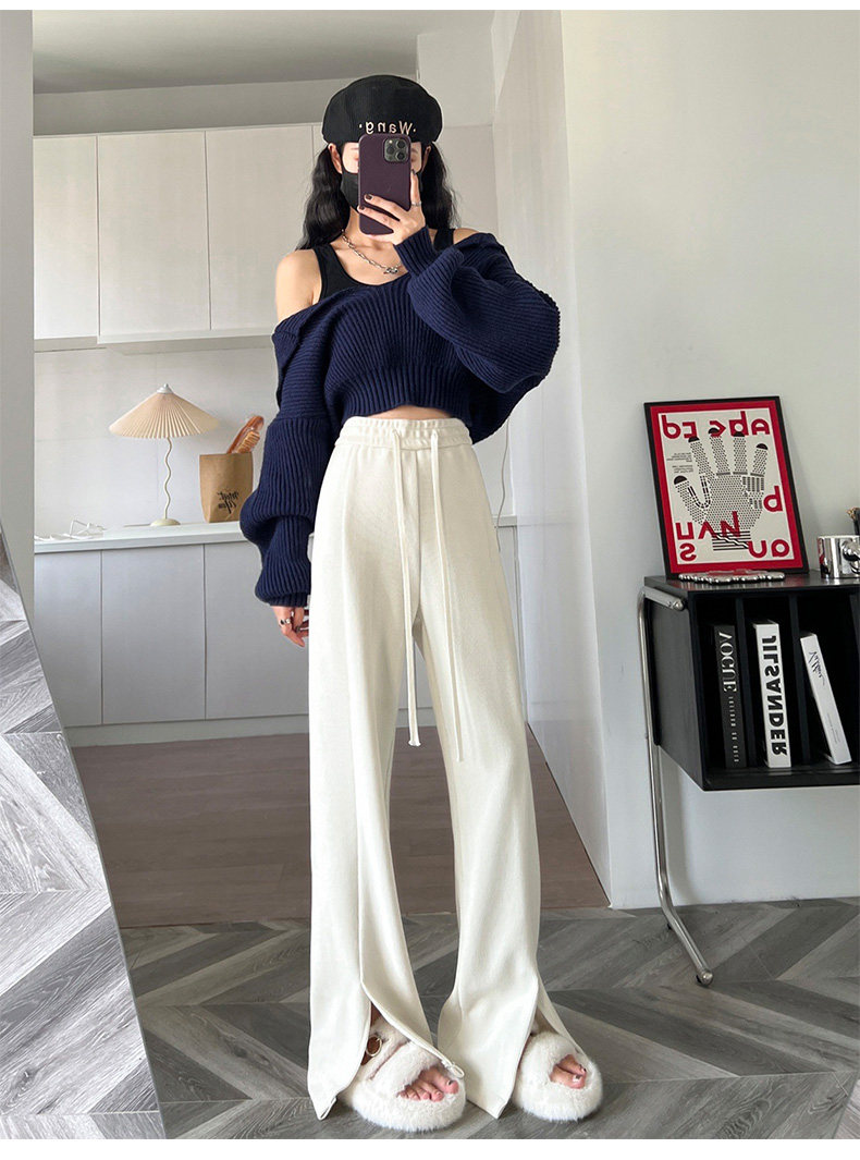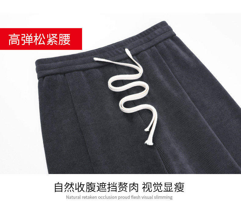 拉夏貝爾窄版開叉濶腿褲女冬季新款高腰垂感拖地加絨雪尼爾直筒褲