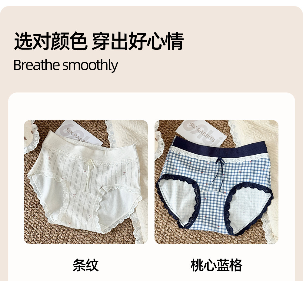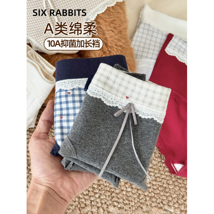 六隻兔子A類棉內褲女10A抑菌加長純棉底襠三角褲中腰防夾臀短褲