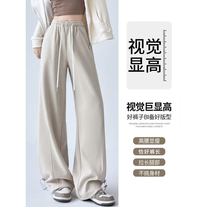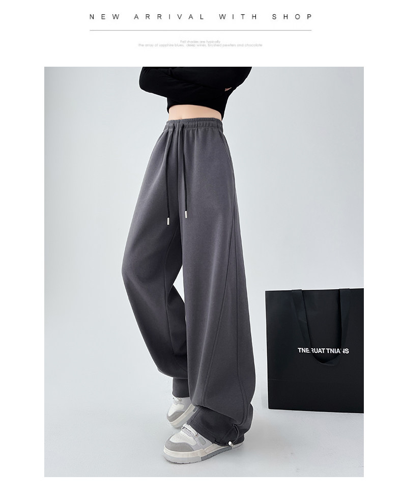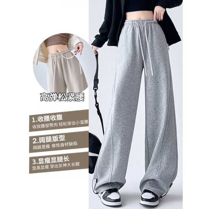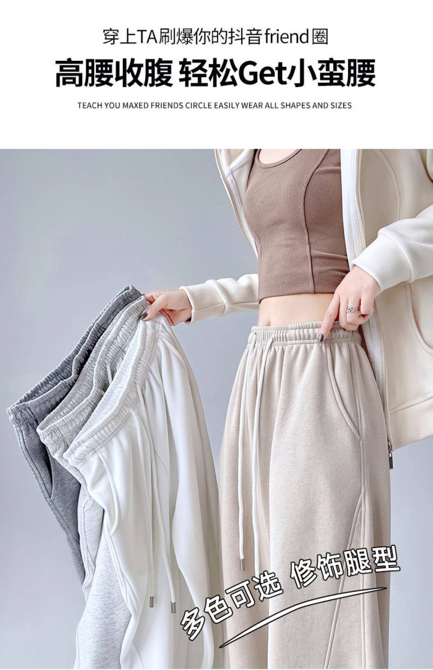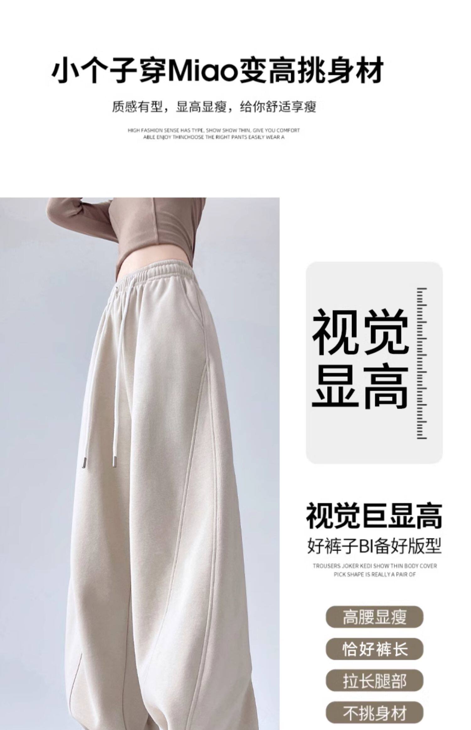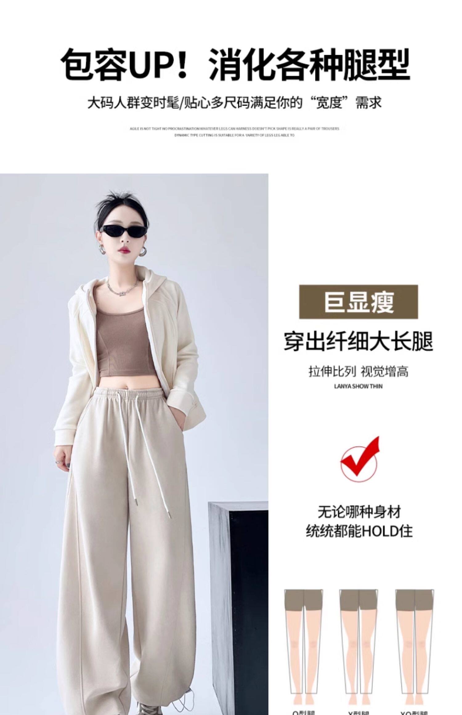 美式運動衛褲子女春秋冬季2026新高級寬鬆垂感拖地休閒香蕉濶腿褲