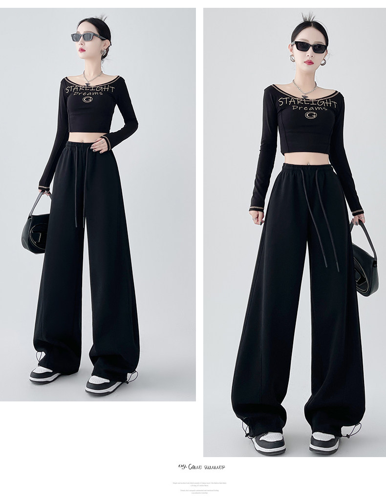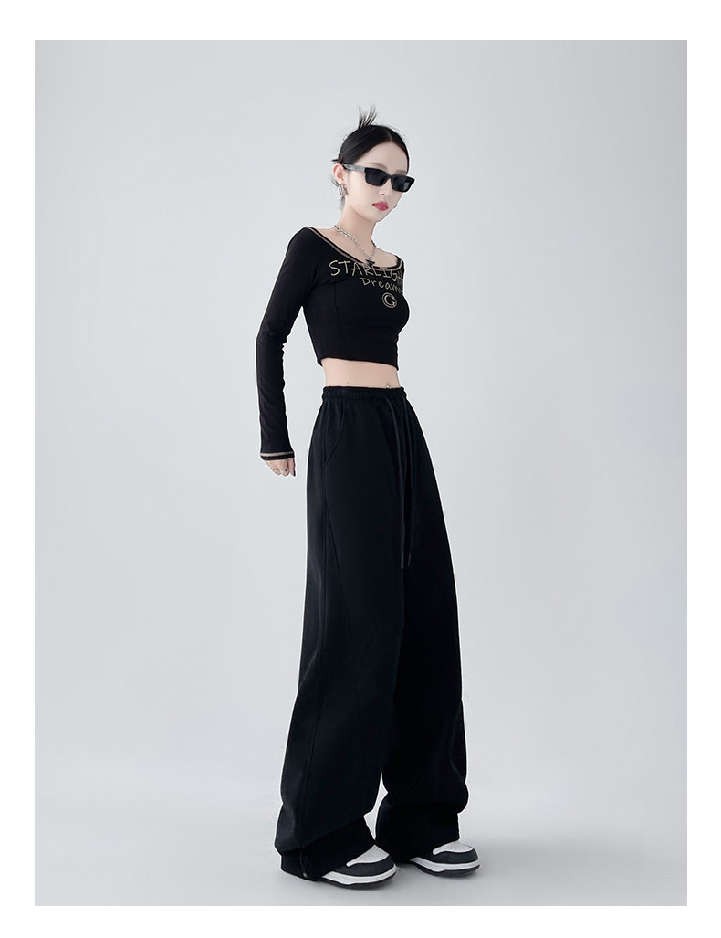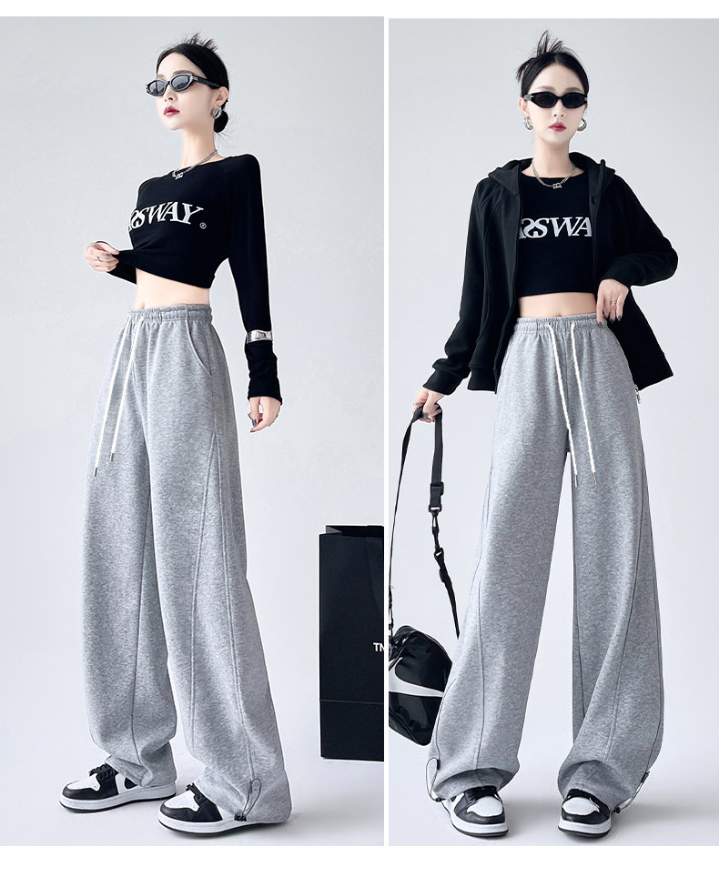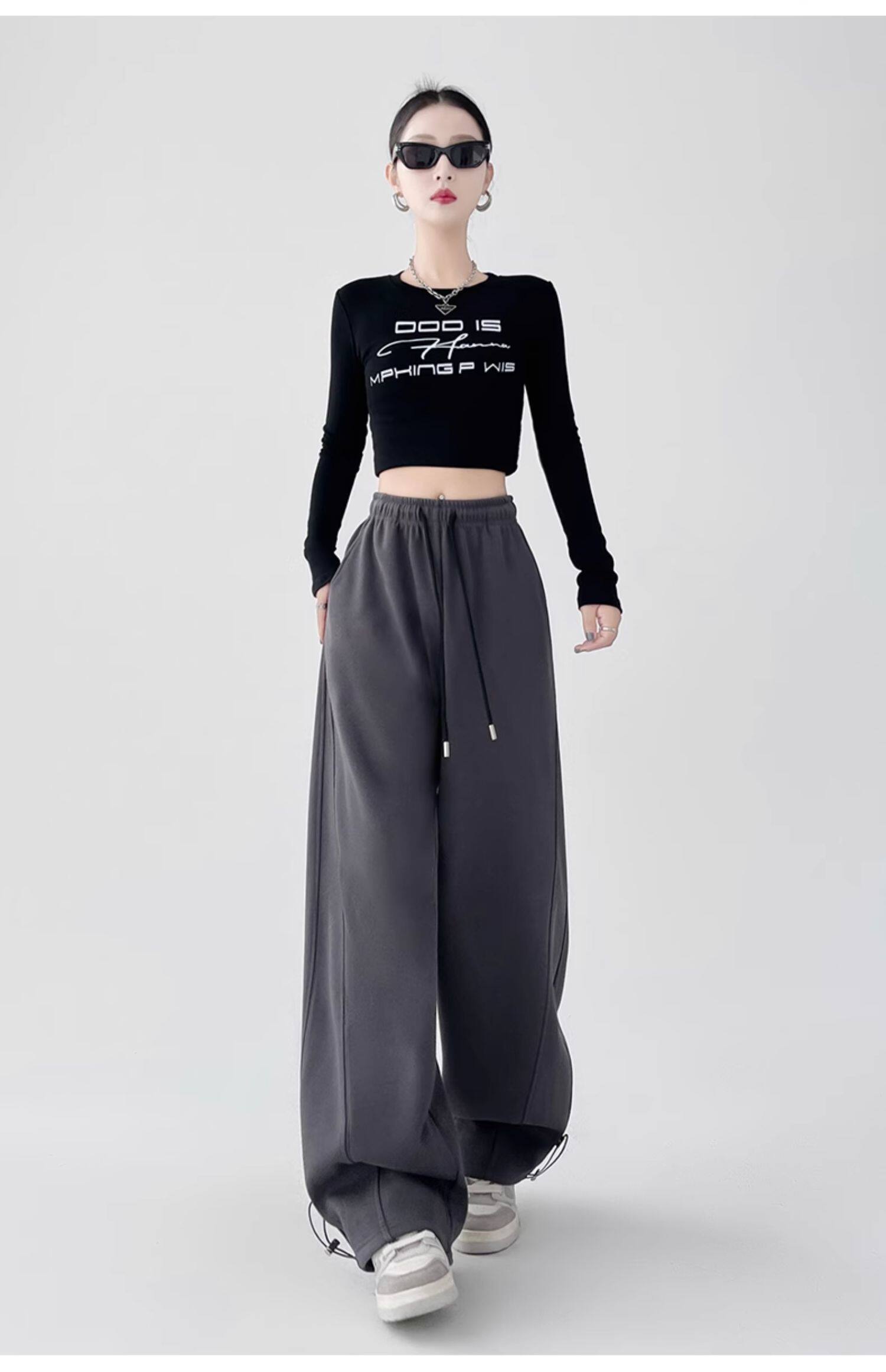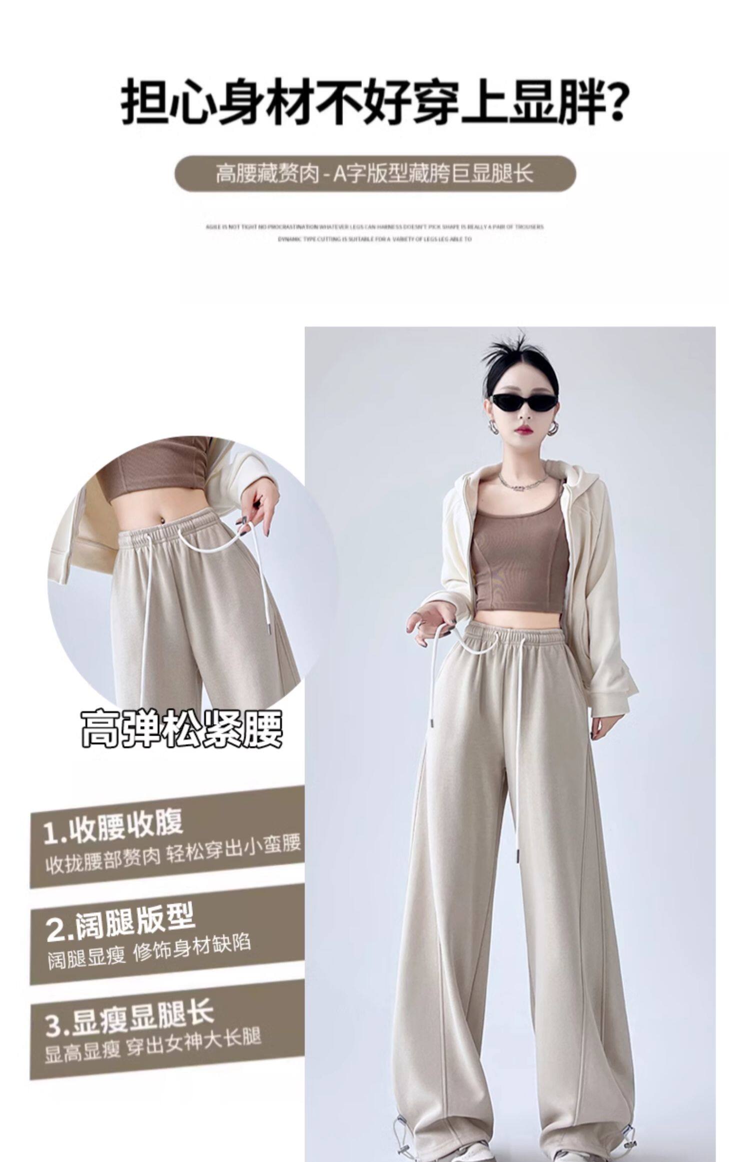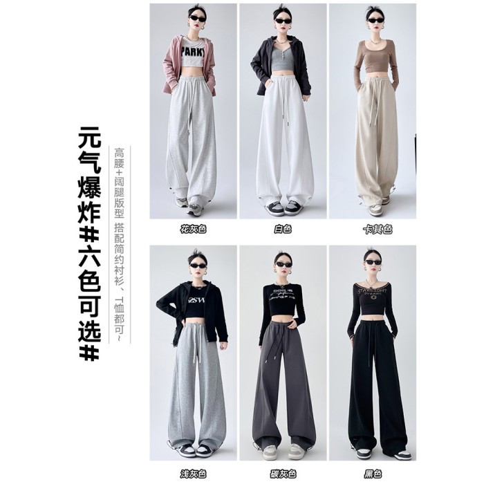 美式運動衛褲子女春秋冬季2026新高級寬鬆垂感拖地休閒香蕉濶腿褲