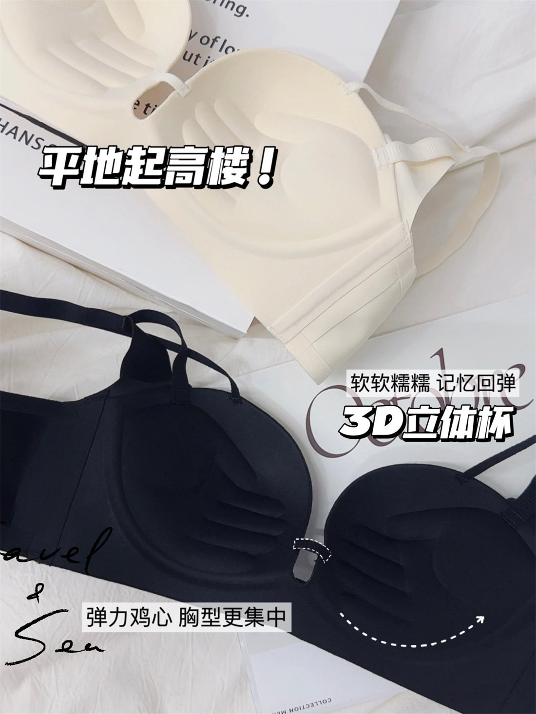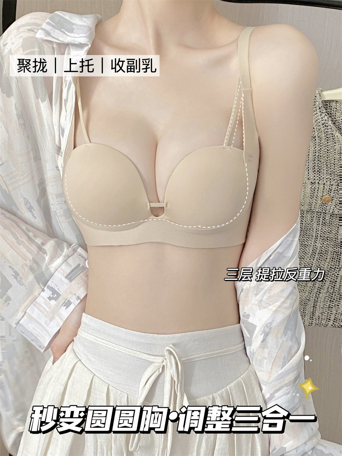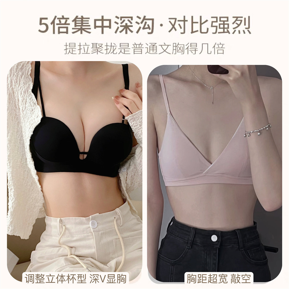 五倍聚攏 無痕內衣女小胸聚攏顯大A變C收副乳防下垂調整型文胸罩