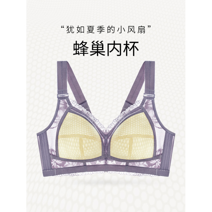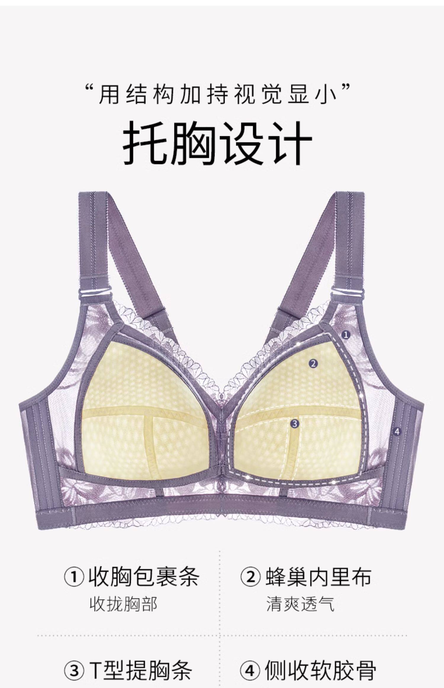 千奈美大胸顯小內衣薄款無鋼圈防下垂大碼全罩杯收副乳調整型文胸