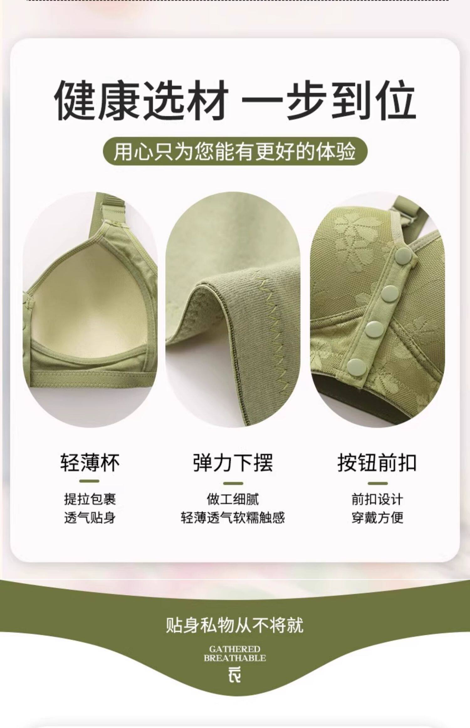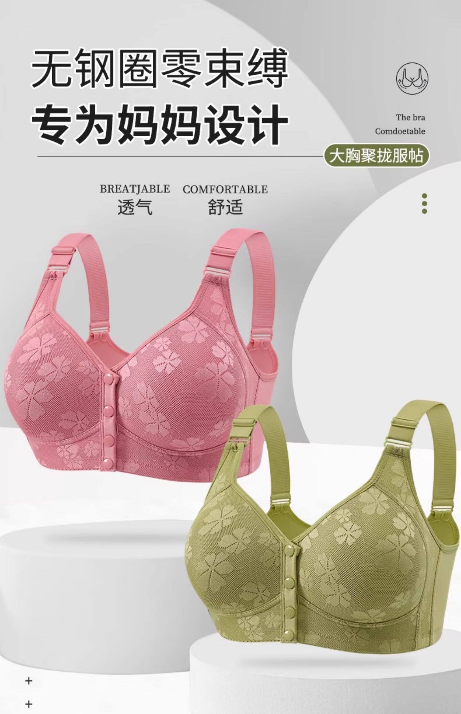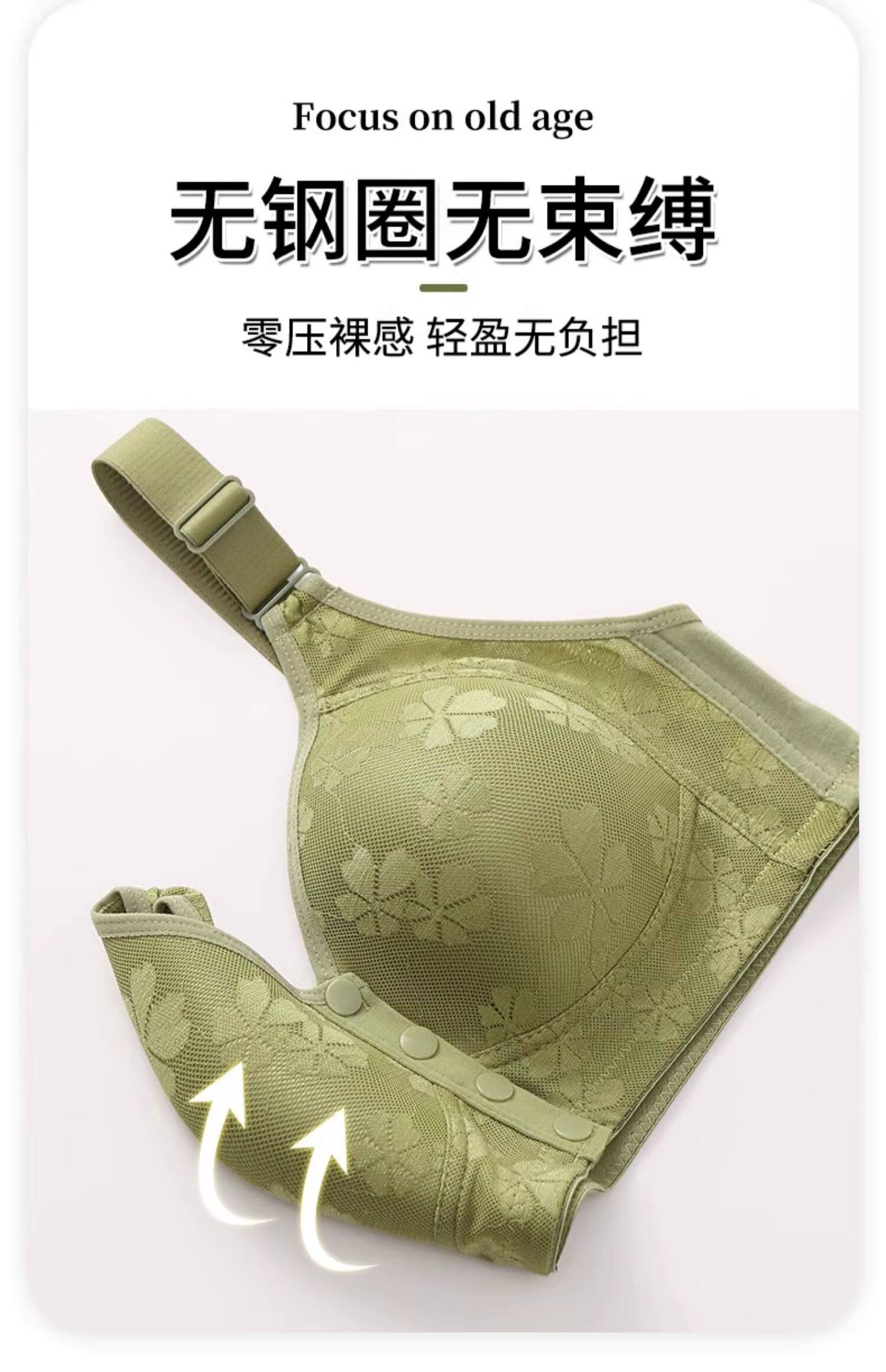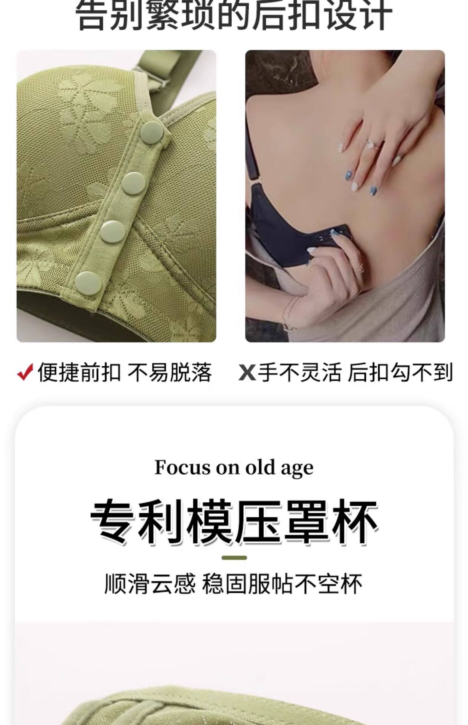 前釦內衣女薄款無鋼圈收副乳防下垂聚攏上托背心式中老年媽媽文胸