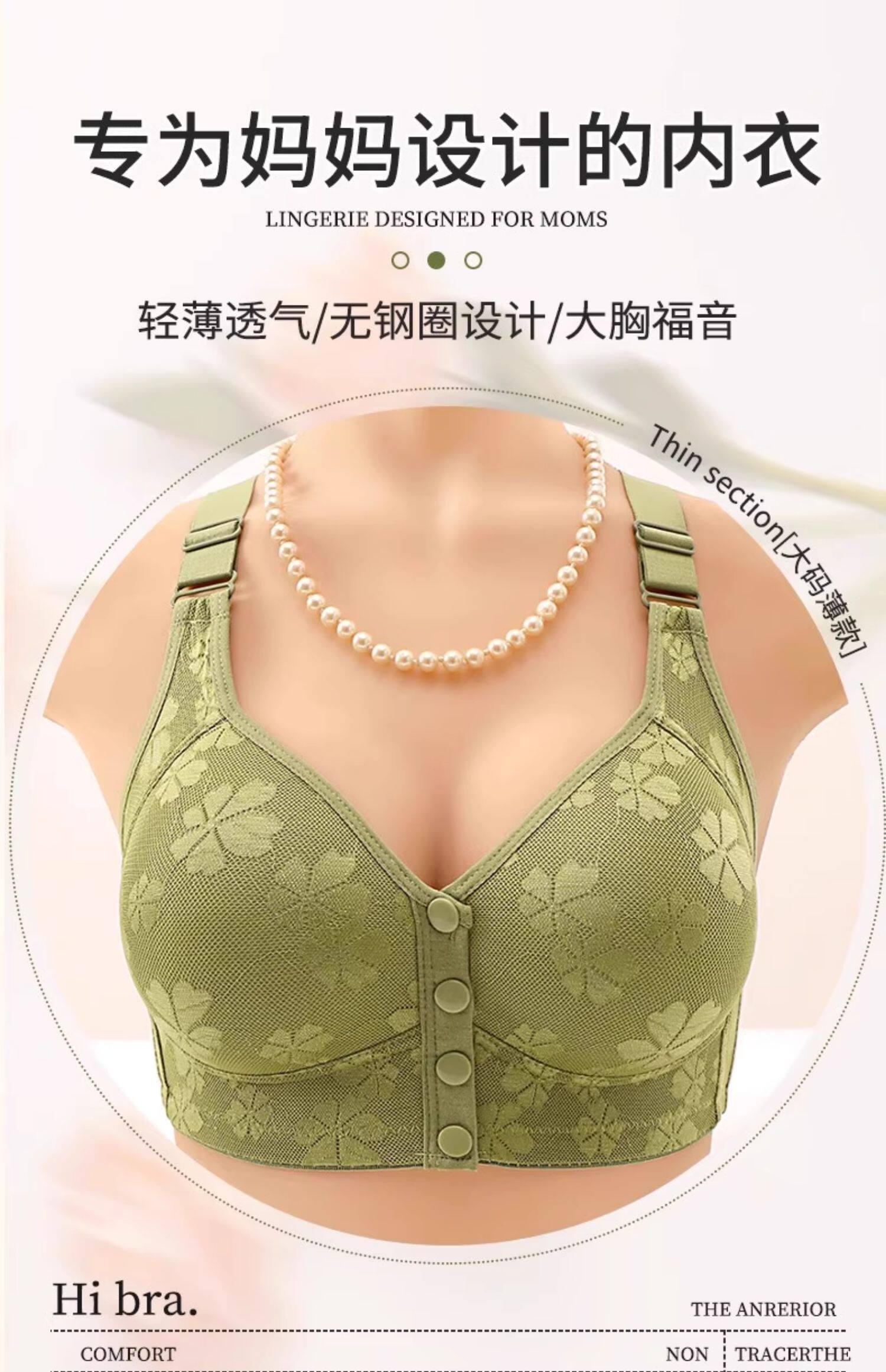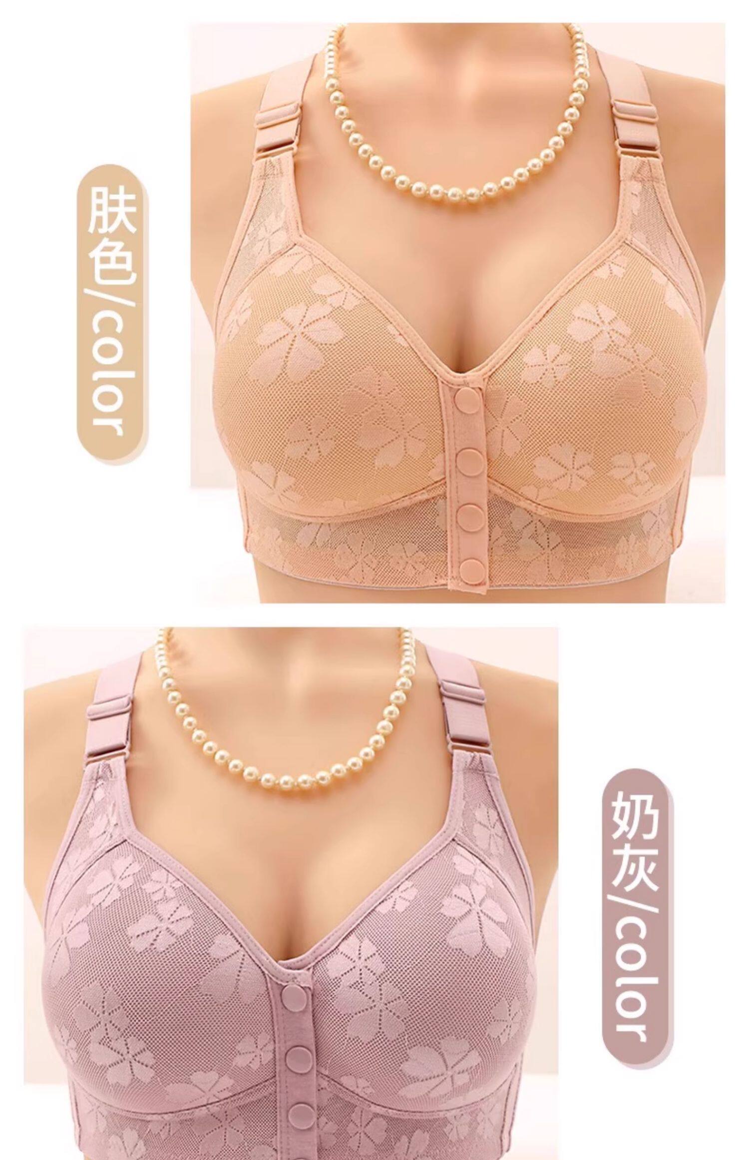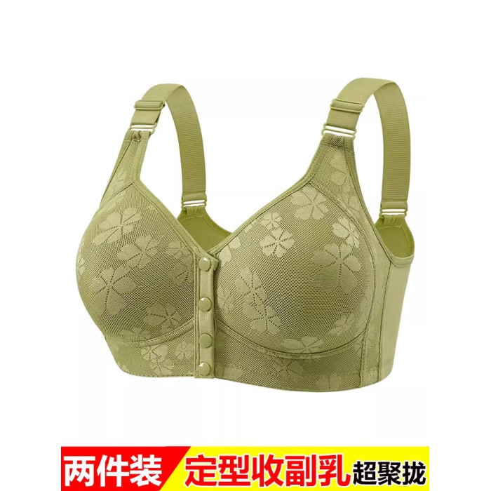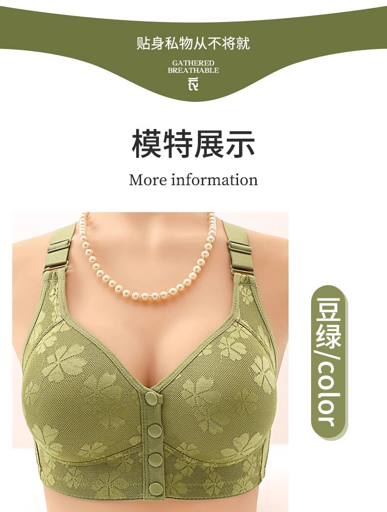 前釦內衣女薄款無鋼圈收副乳防下垂聚攏上托背心式中老年媽媽文胸