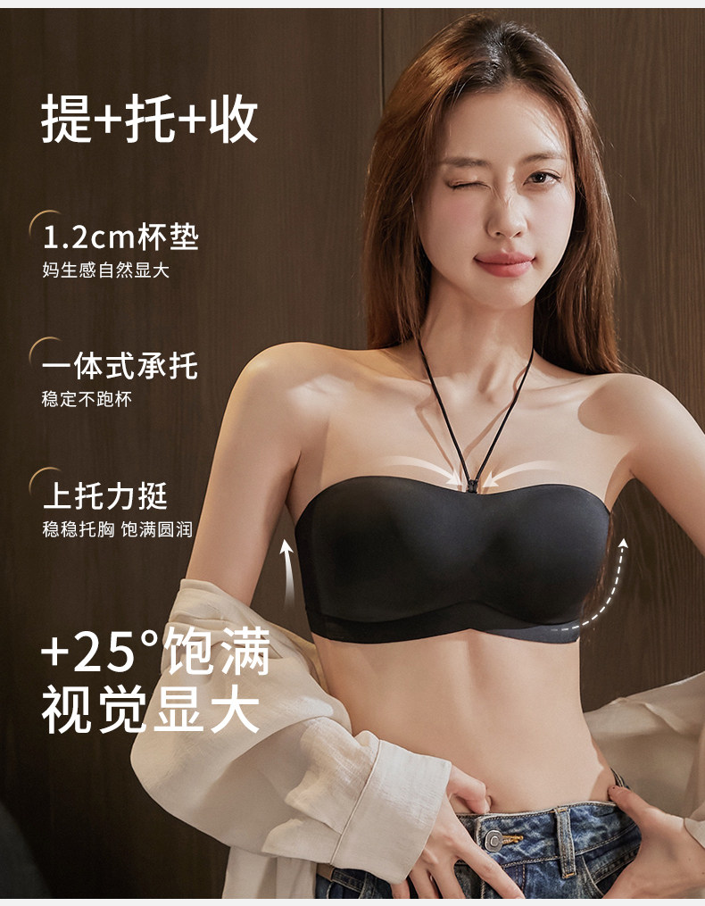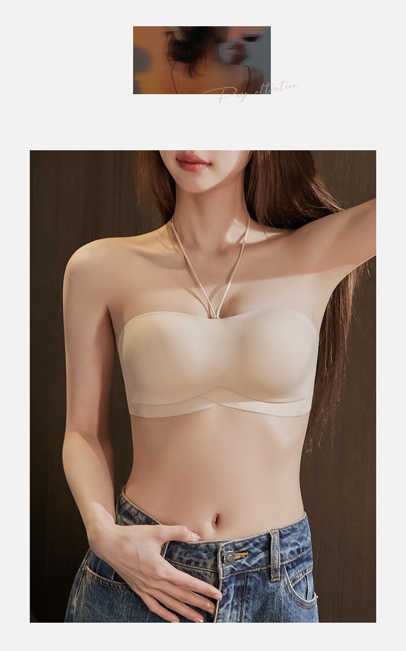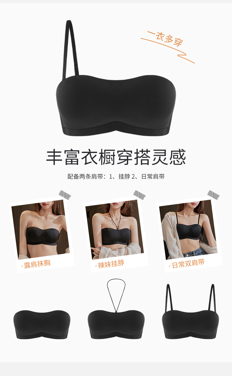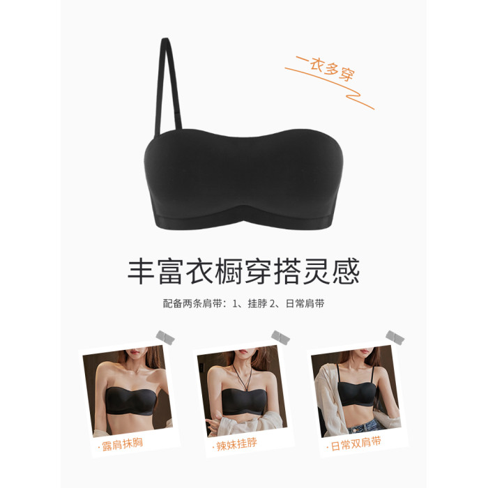 無肩帶內衣防滑防走光無痕聚攏無鋼圈防下垂抹胸掛脖美背隱形文胸