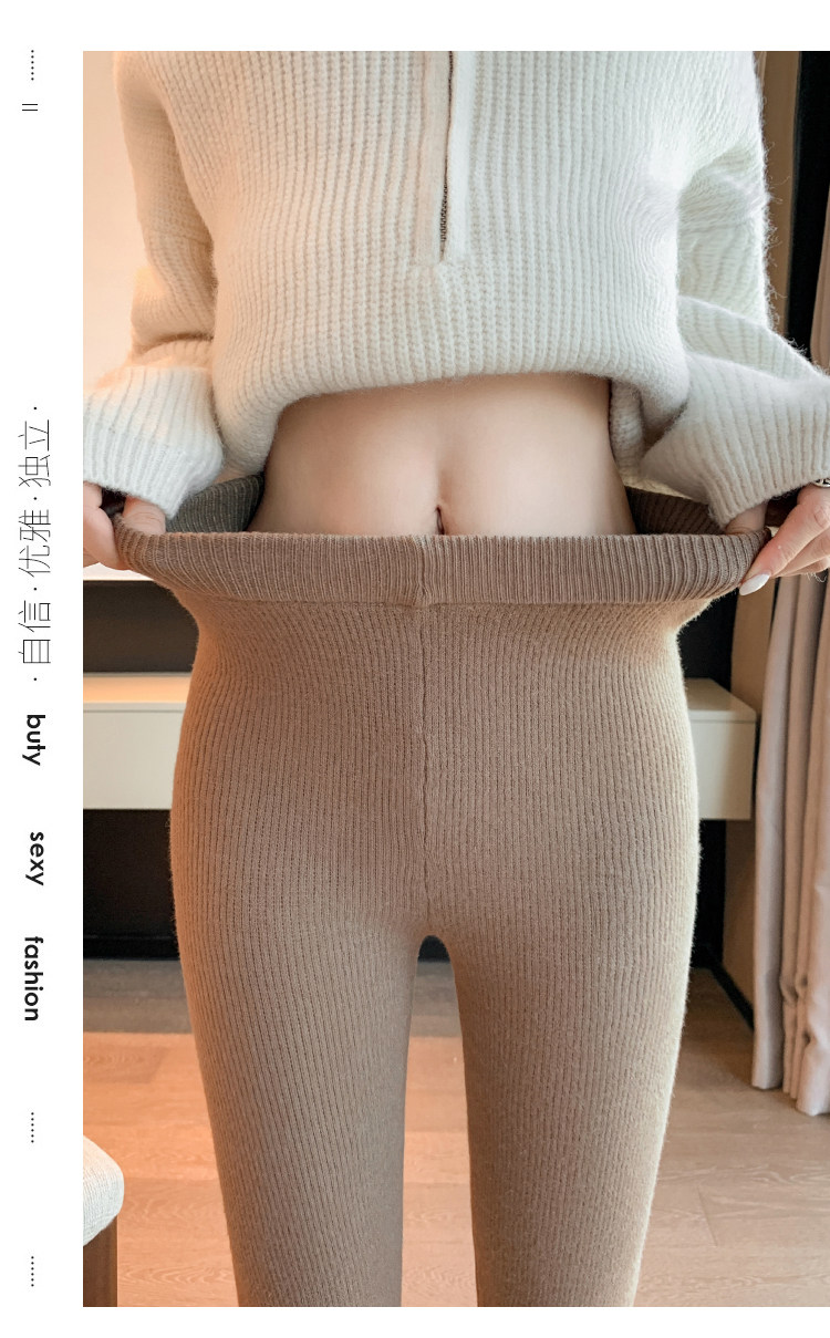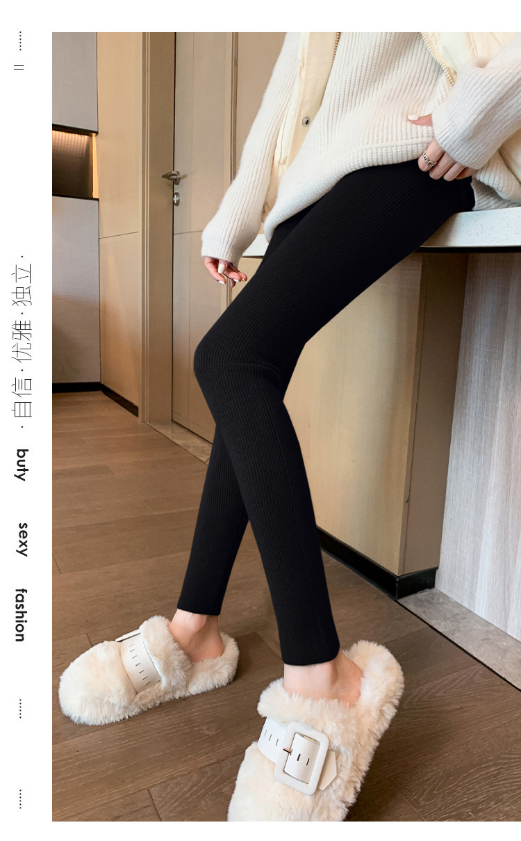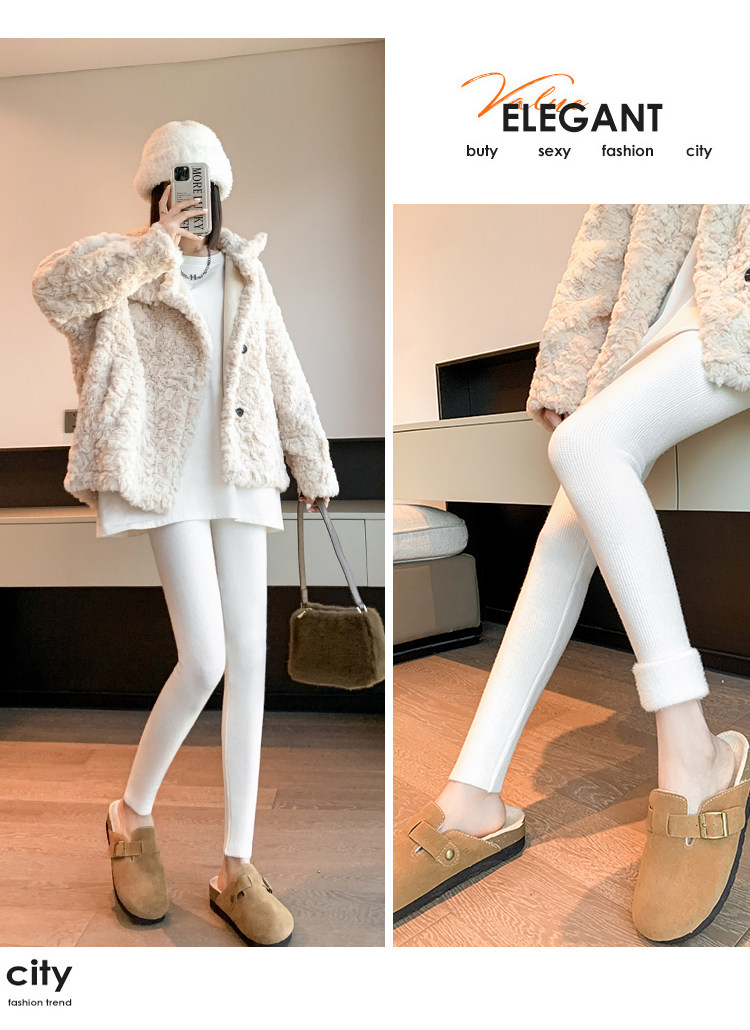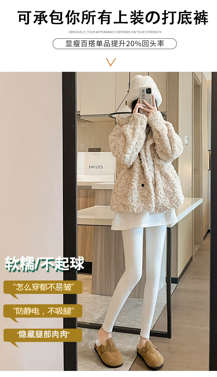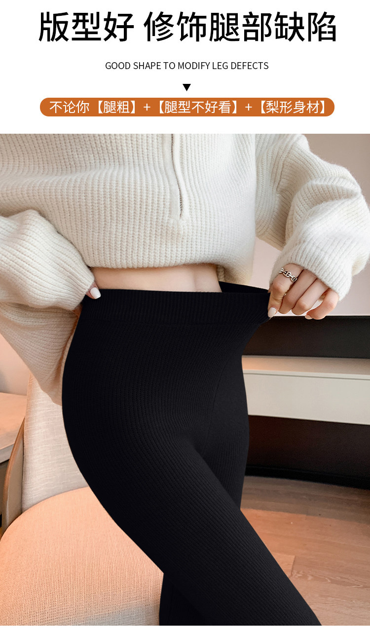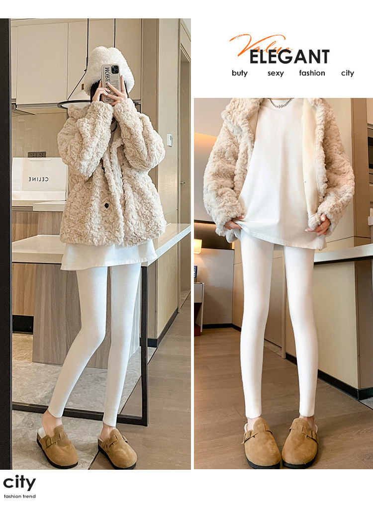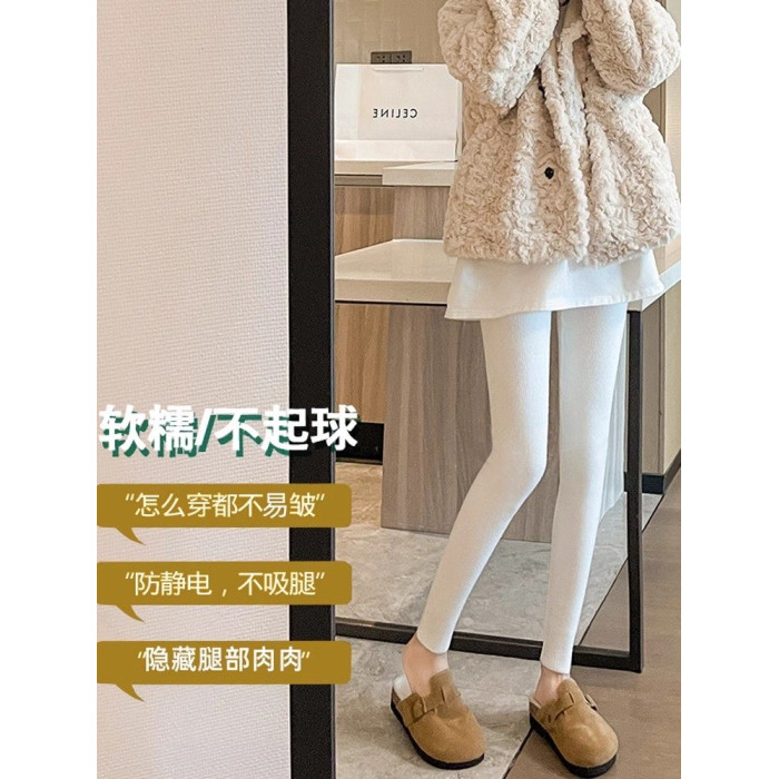 白色針織打底褲女秋冬加絨外穿保暖棉秋褲高腰顯瘦彈力緊身小腳褲