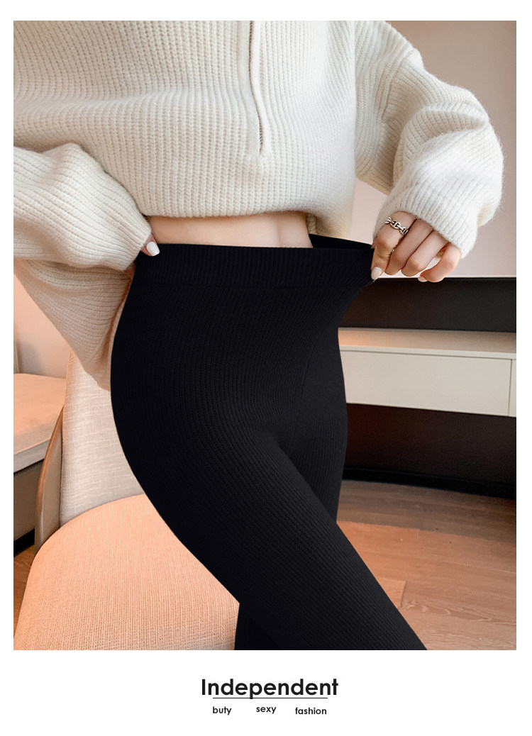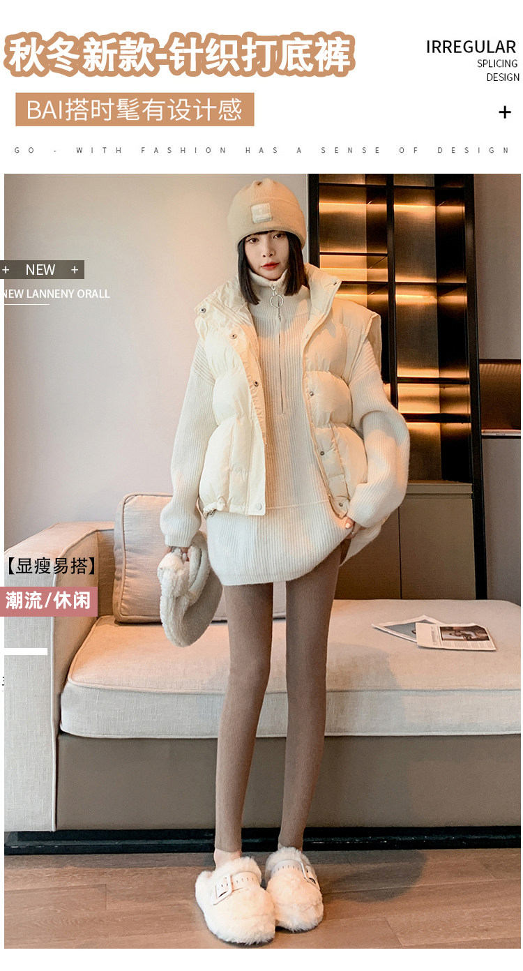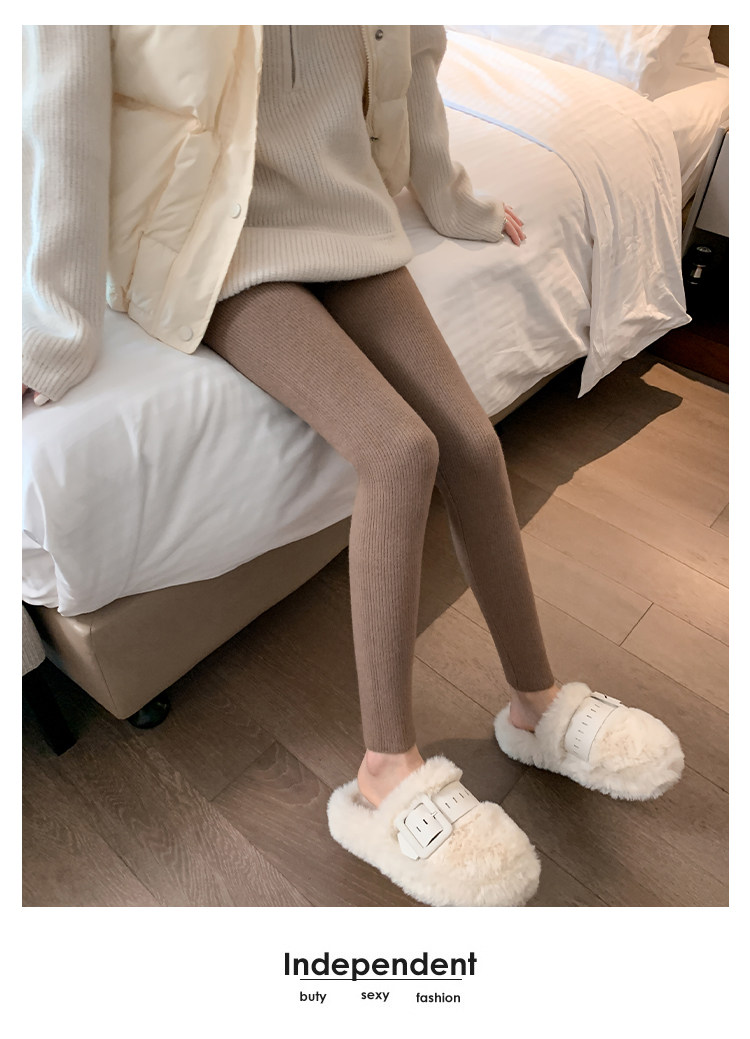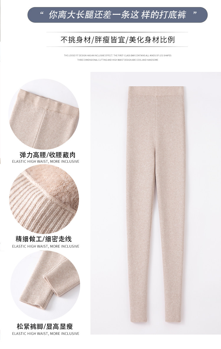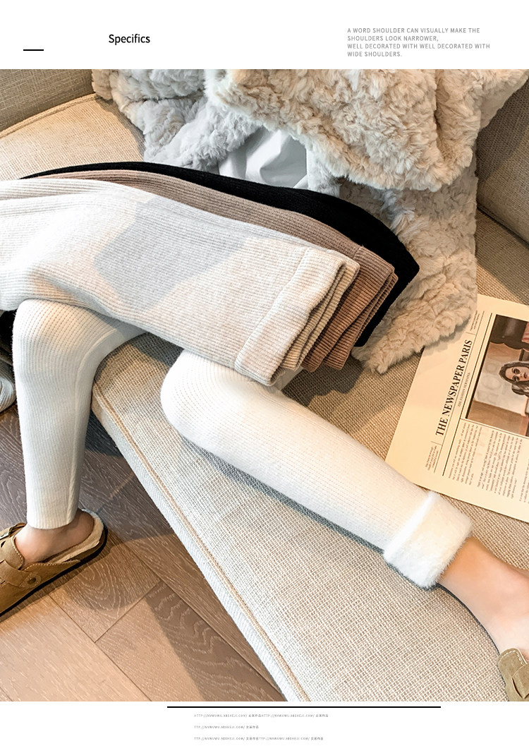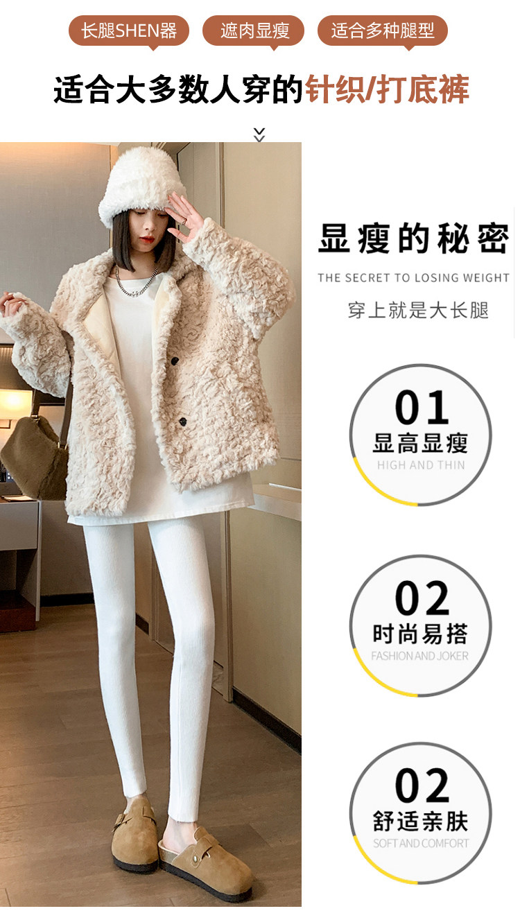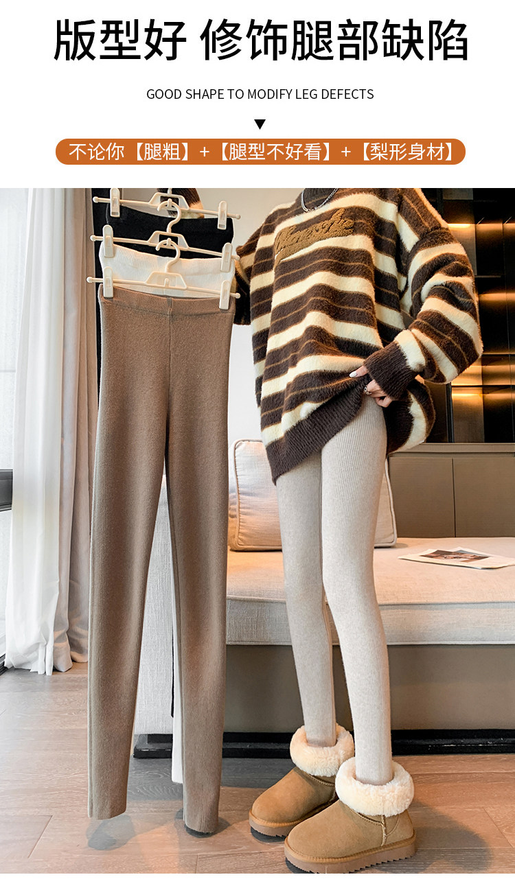 白色針織打底褲女秋冬加絨外穿保暖棉秋褲高腰顯瘦彈力緊身小腳褲
