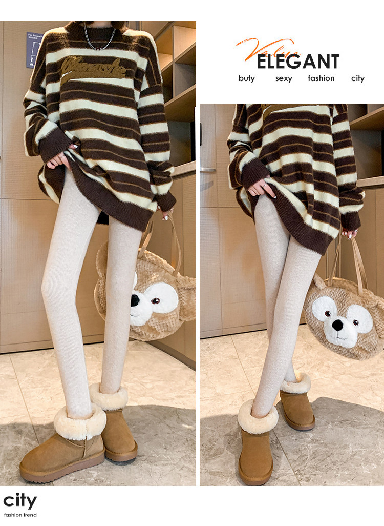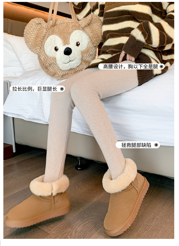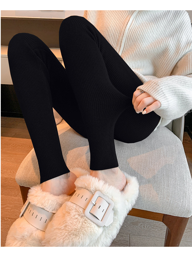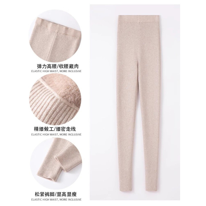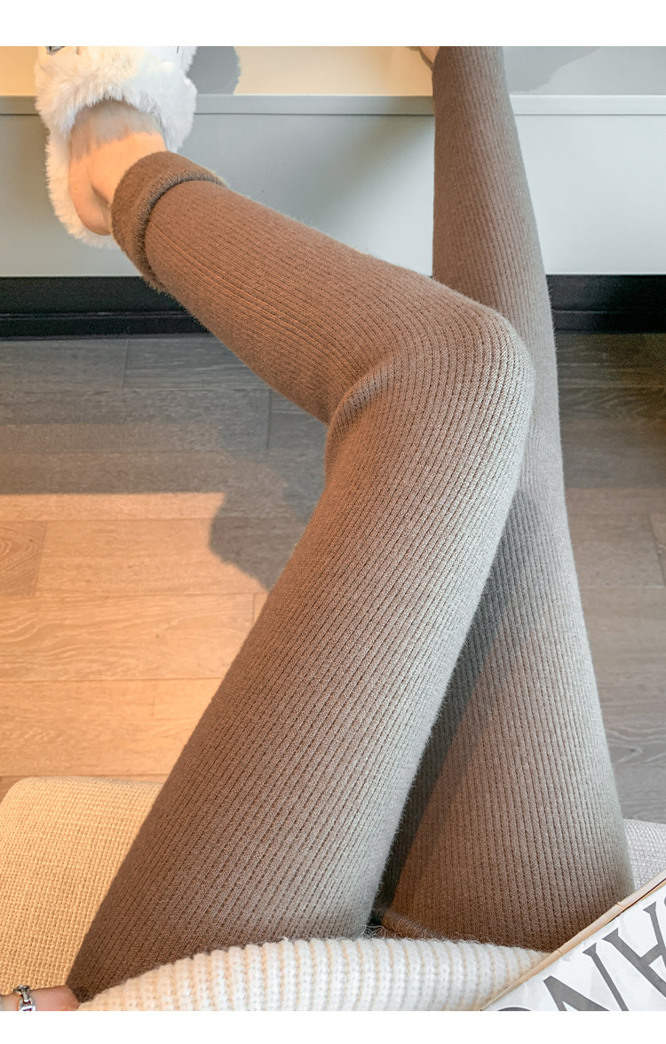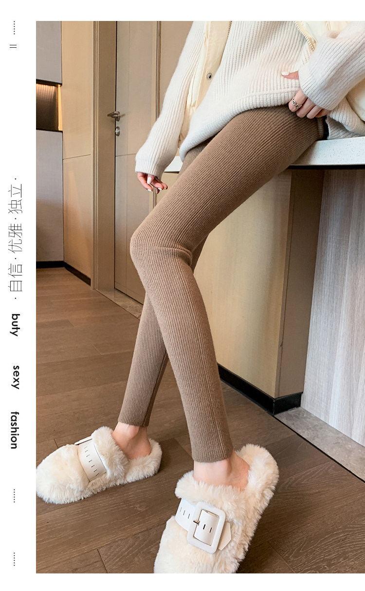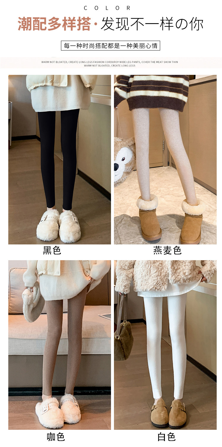 白色針織打底褲女秋冬加絨外穿保暖棉秋褲高腰顯瘦彈力緊身小腳褲