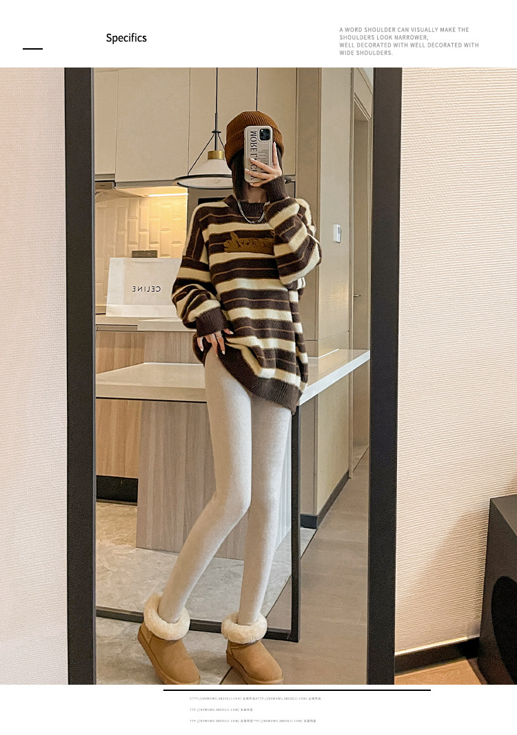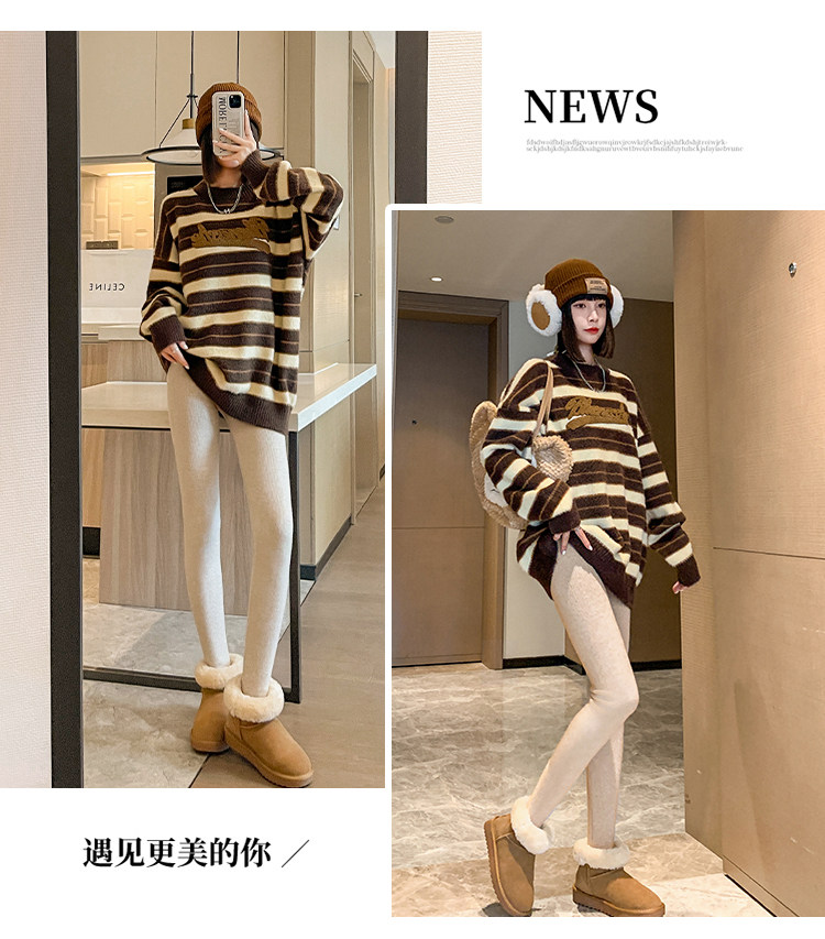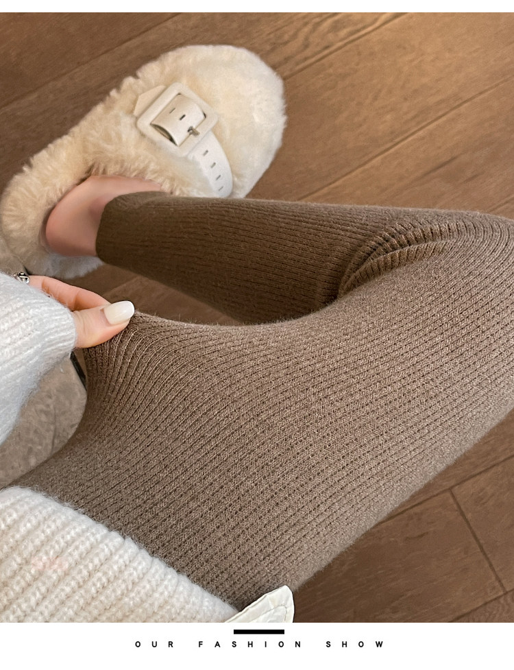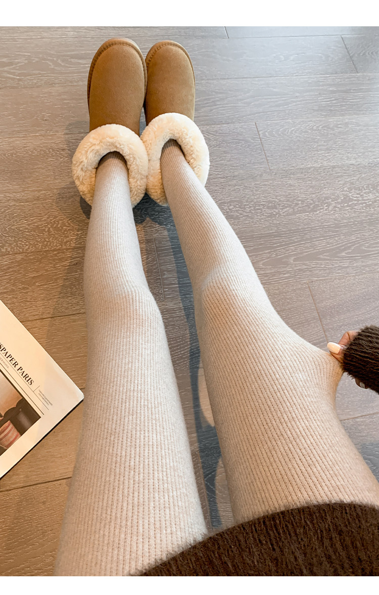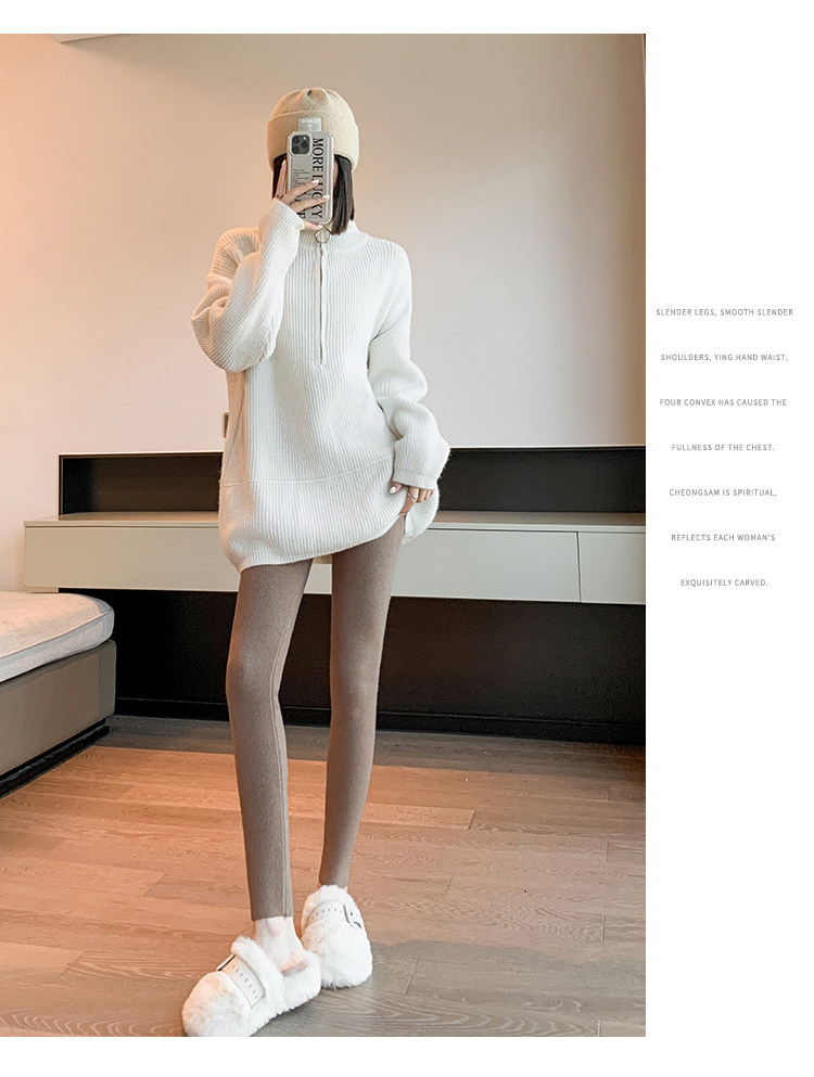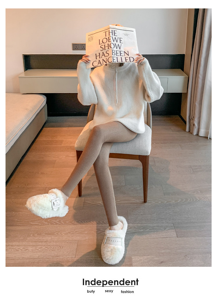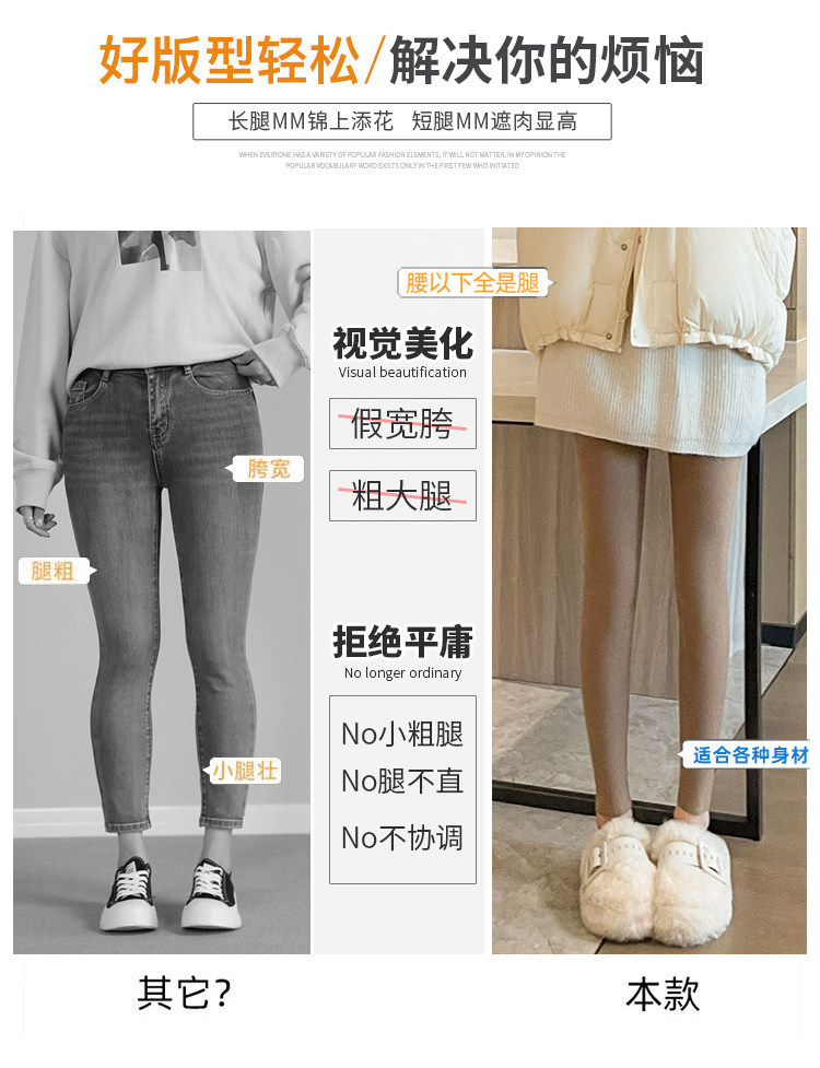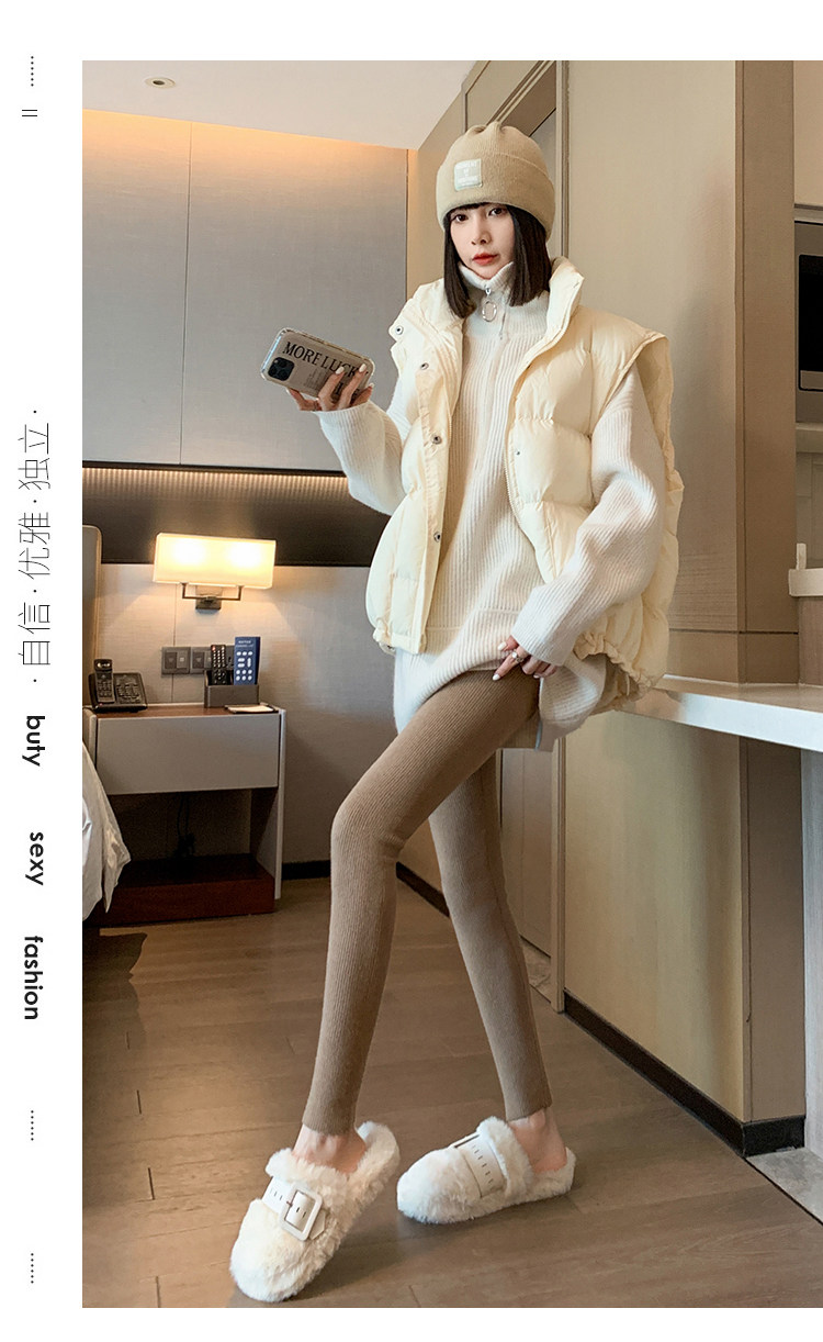 白色針織打底褲女秋冬加絨外穿保暖棉秋褲高腰顯瘦彈力緊身小腳褲