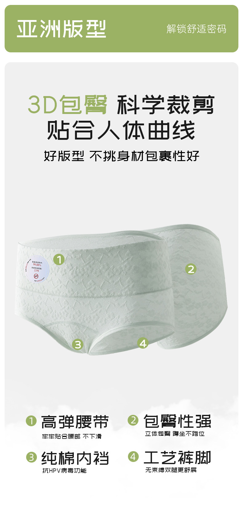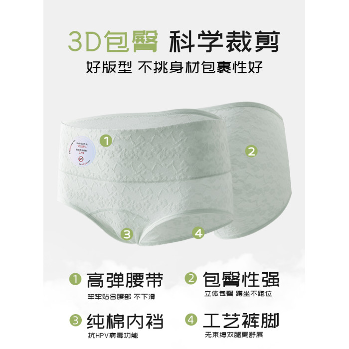10A級抑菌加長底襠高腰純棉內褲女士100全棉四季收腹透氣大碼短褲