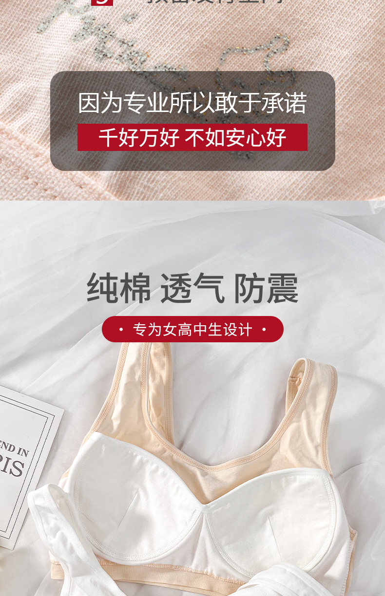 少女內衣三階段文胸發育期16嵗女孩青少年18純棉學生固定杯防震
