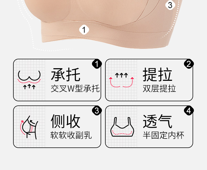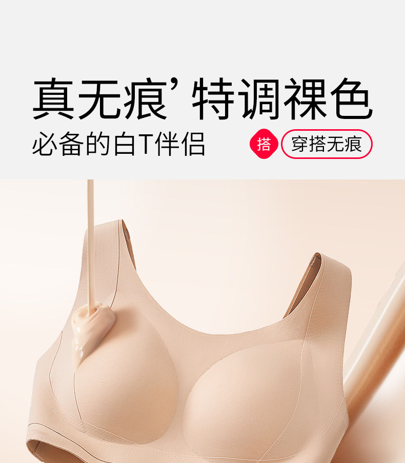 千奈美無痕粉底液內衣女大胸顯小薄款文胸寬肩帶美背無鋼圈胸罩
