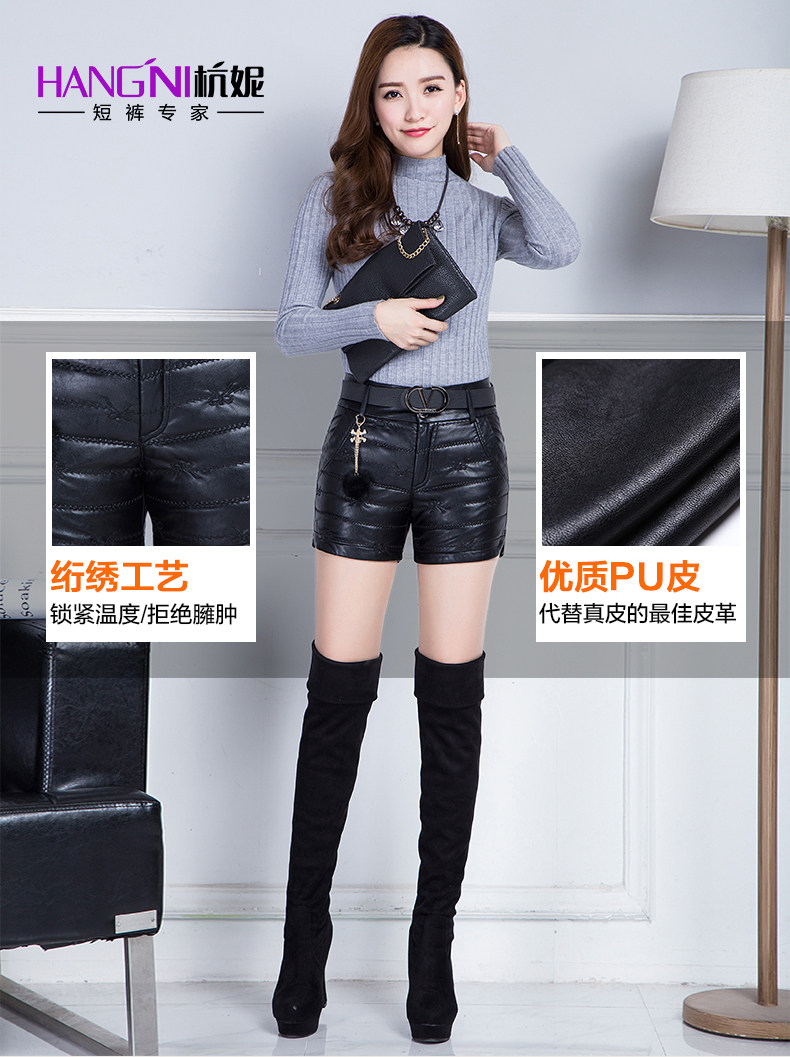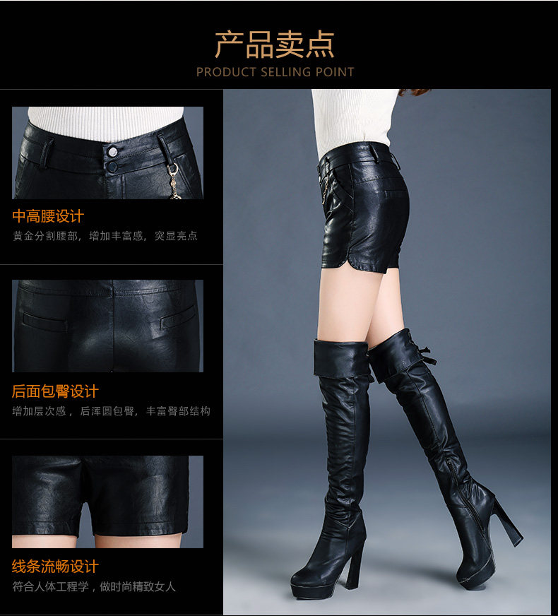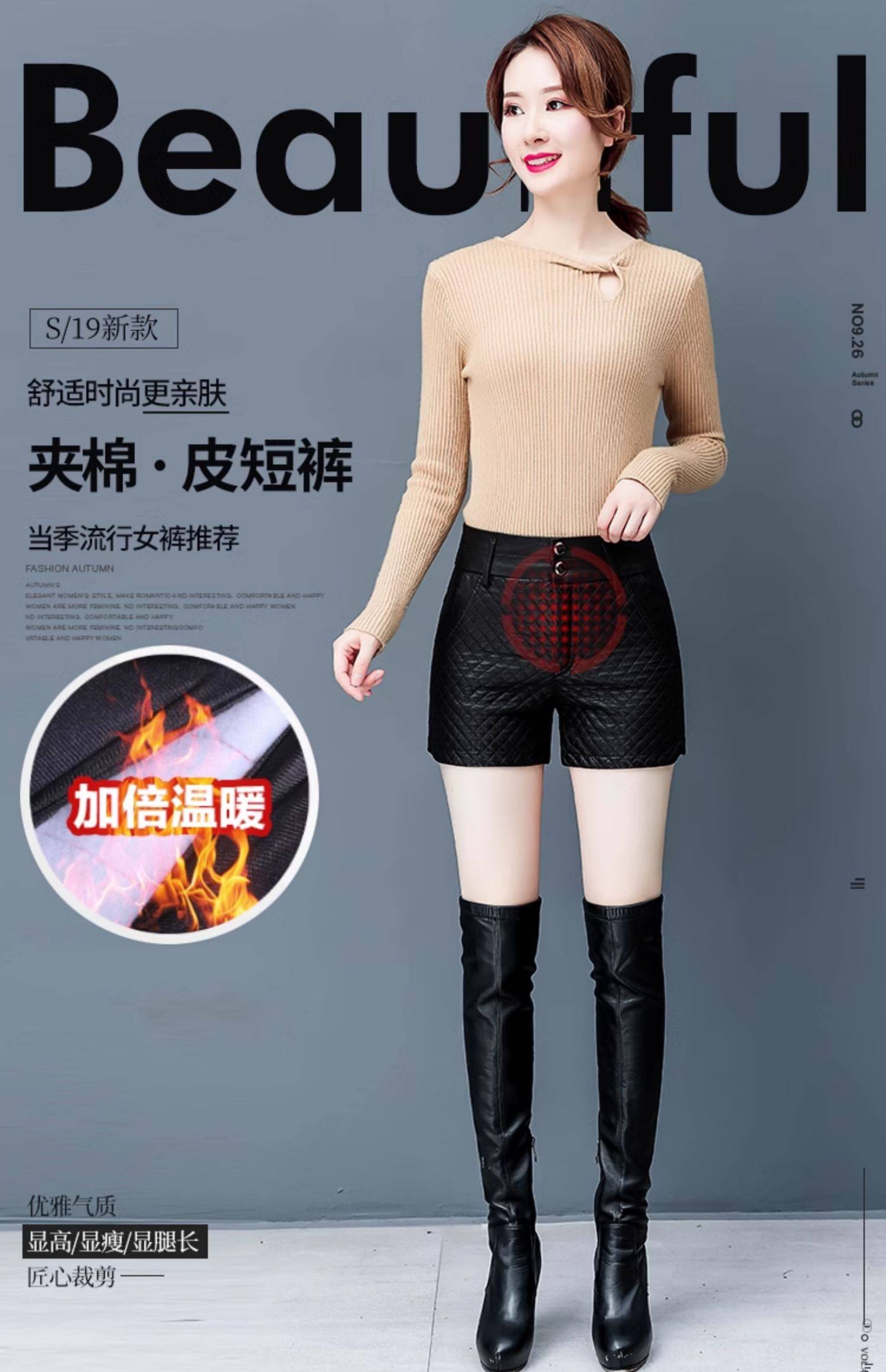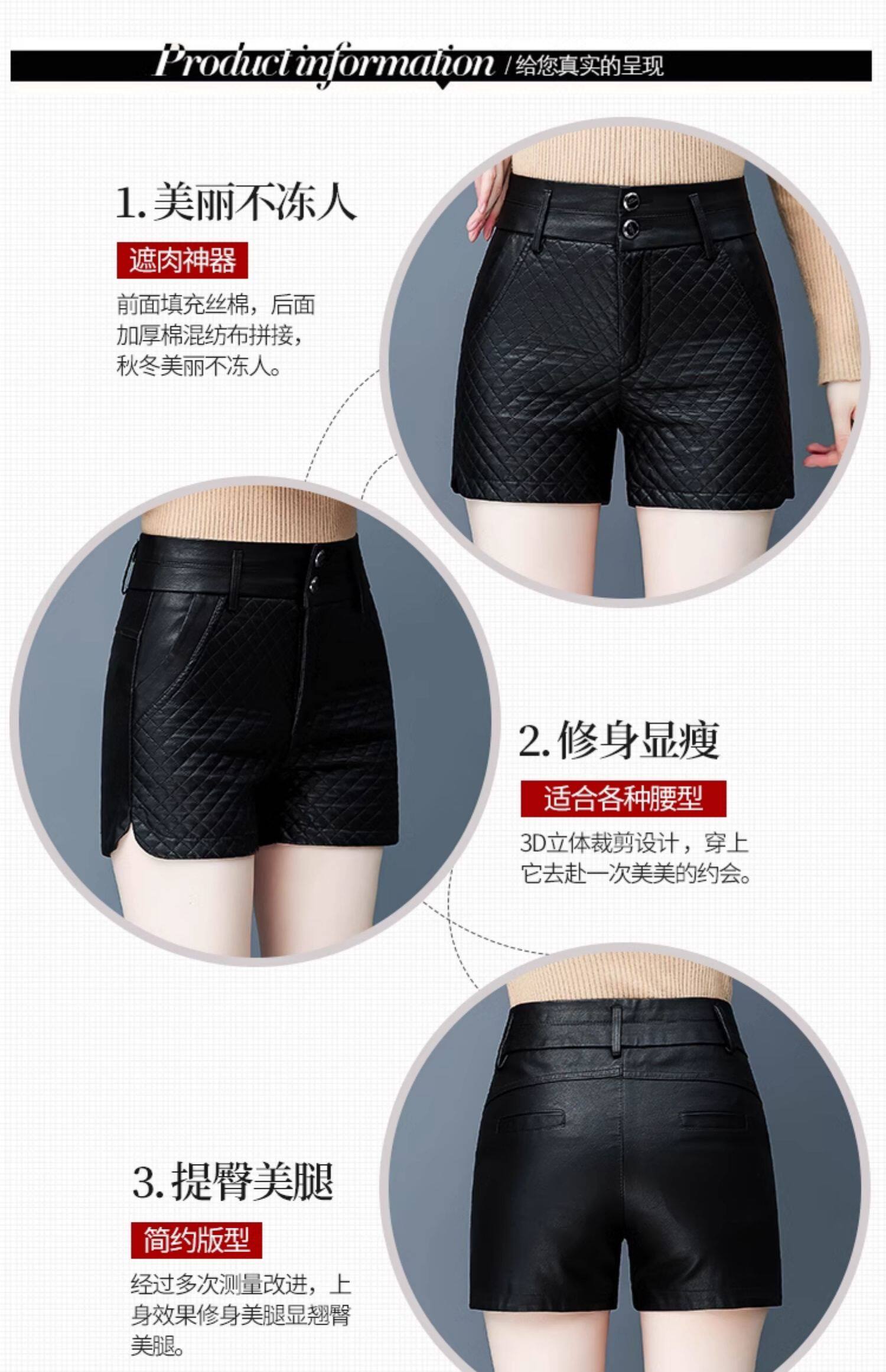皮短褲女秋冬新款2025打底PU皮褲高腰加厚顯瘦大碼外穿直筒褲靴褲