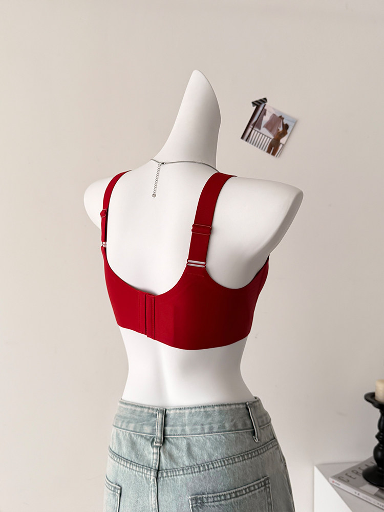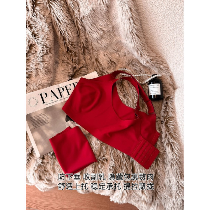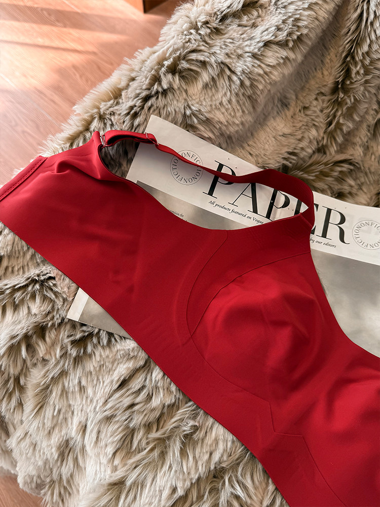 紅色兔耳杯!超薄無痕內衣女大胸顯小防下垂收副乳提拉本命年文胸