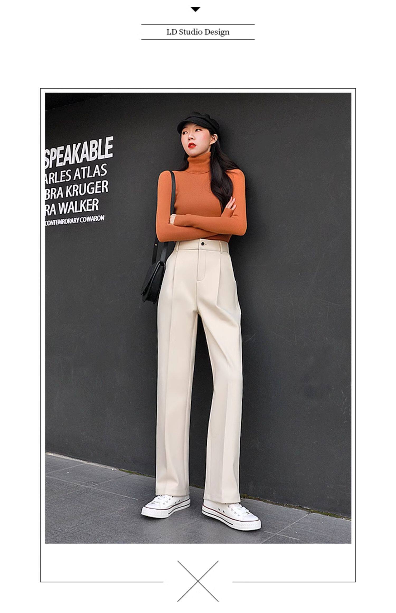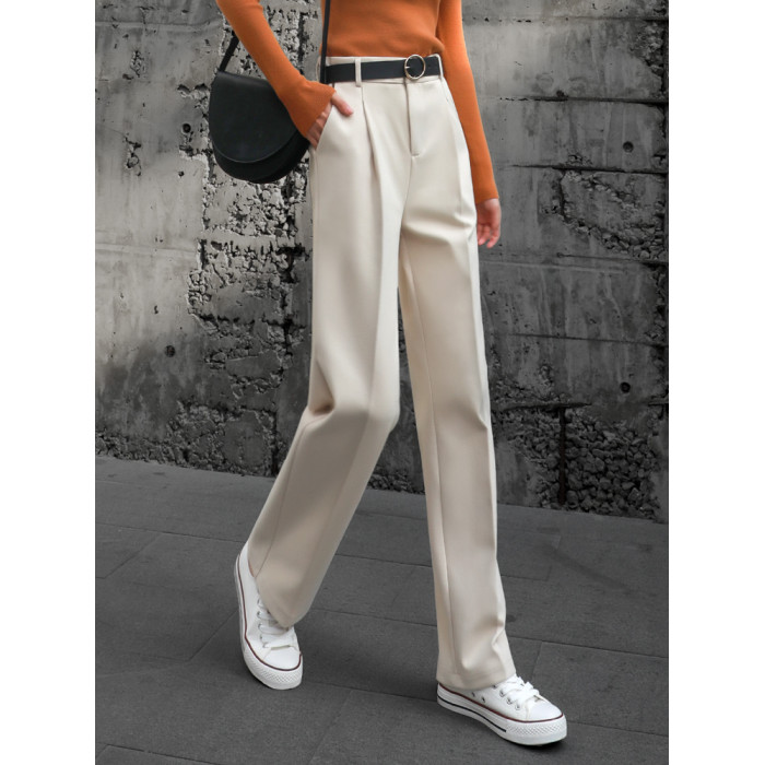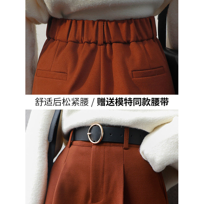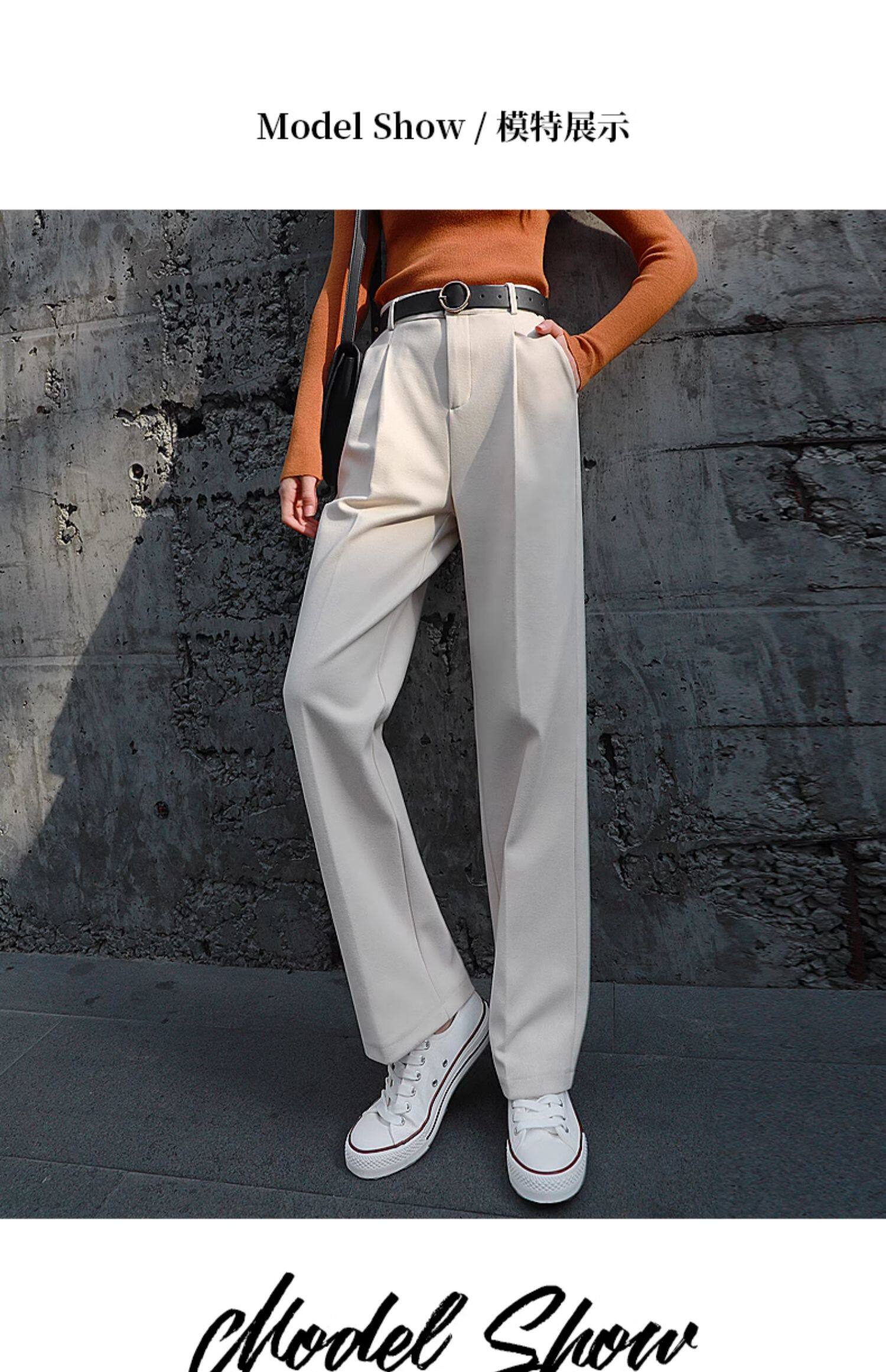 毛呢子西裝濶腿褲女褲春秋冬2025新款米白色休閒垂感窄版直筒長褲