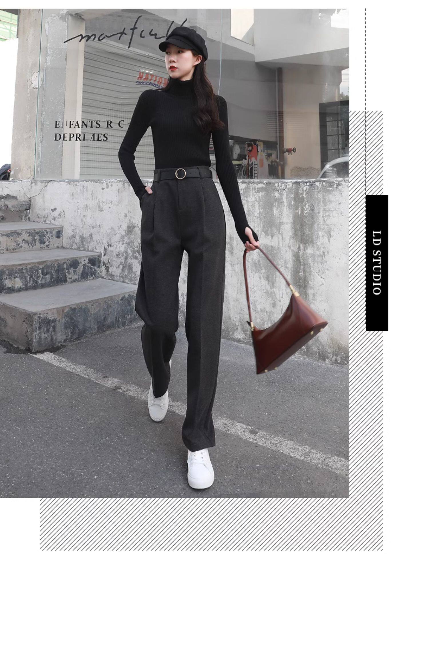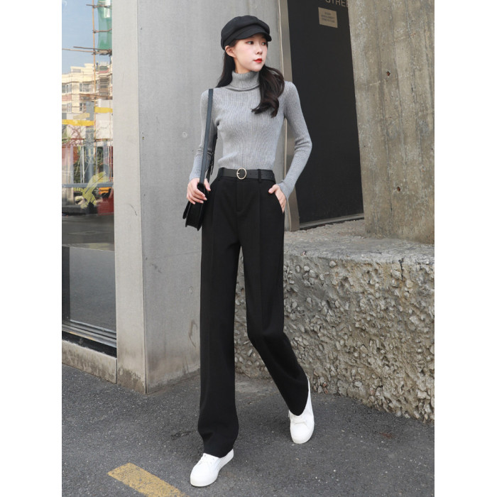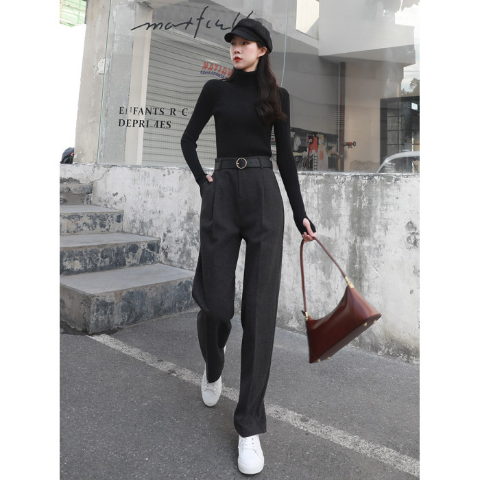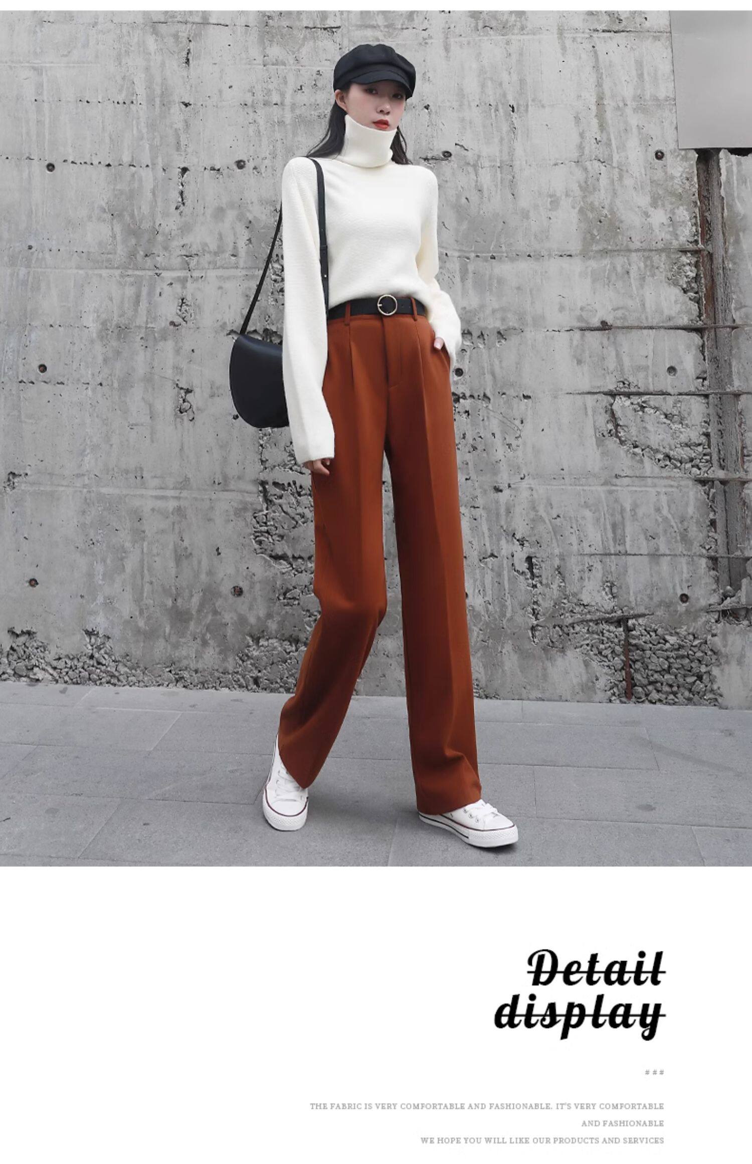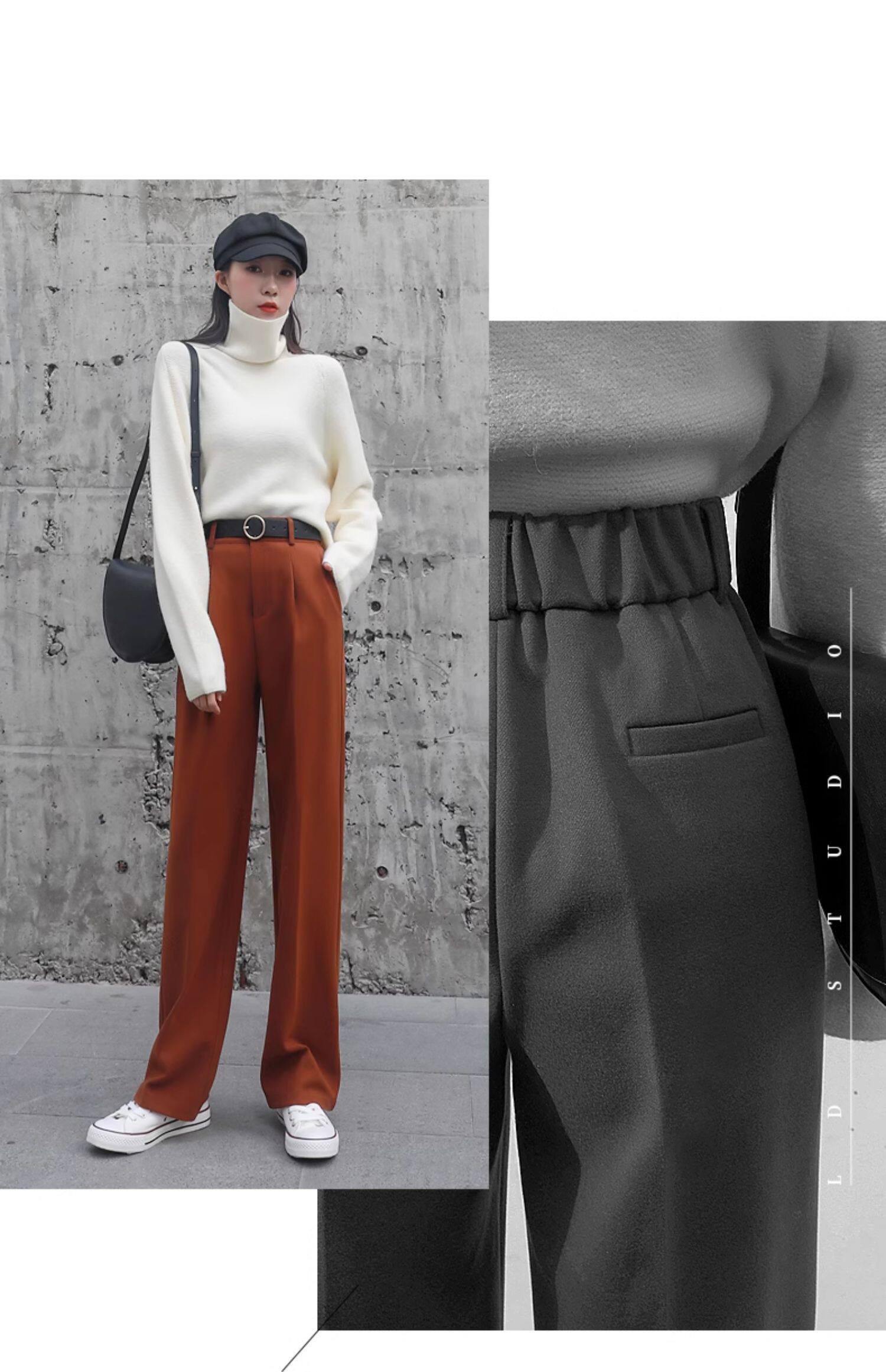 毛呢子西裝濶腿褲女褲春秋冬2025新款米白色休閒垂感窄版直筒長褲
