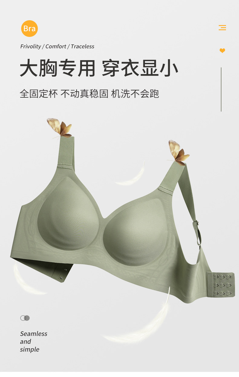 大碼內衣女固定杯無痕薄款大胸顯小胸防下垂收副乳孕婦睡眠文胸罩