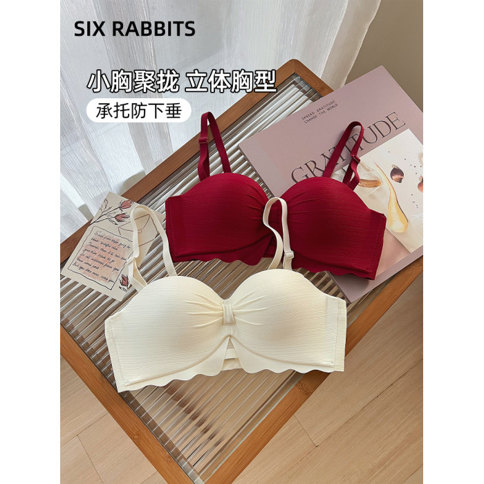 六隻兔子無痕內衣女小胸聚攏無鋼圈文胸軟支撐上托防下垂文胸罩