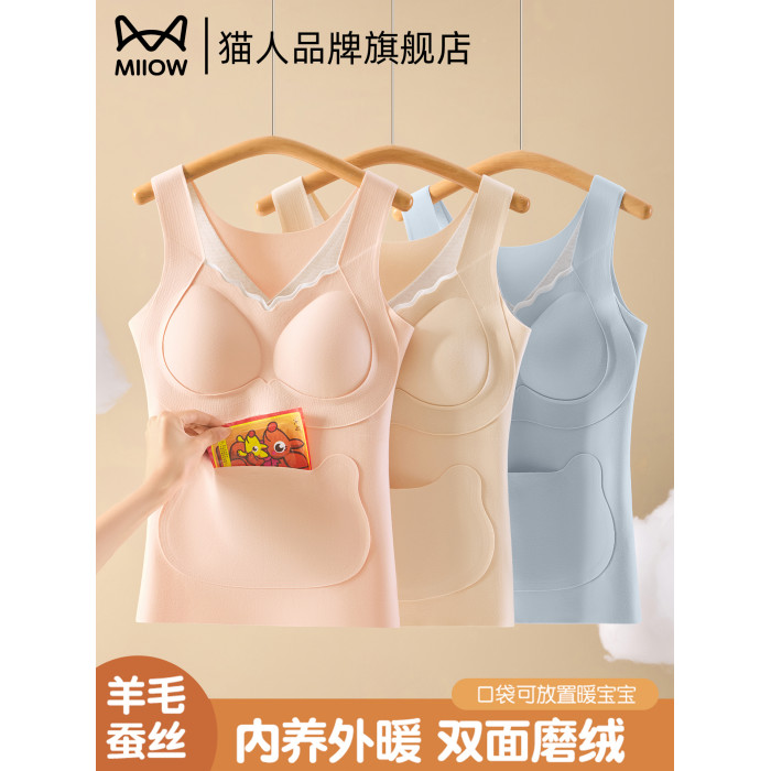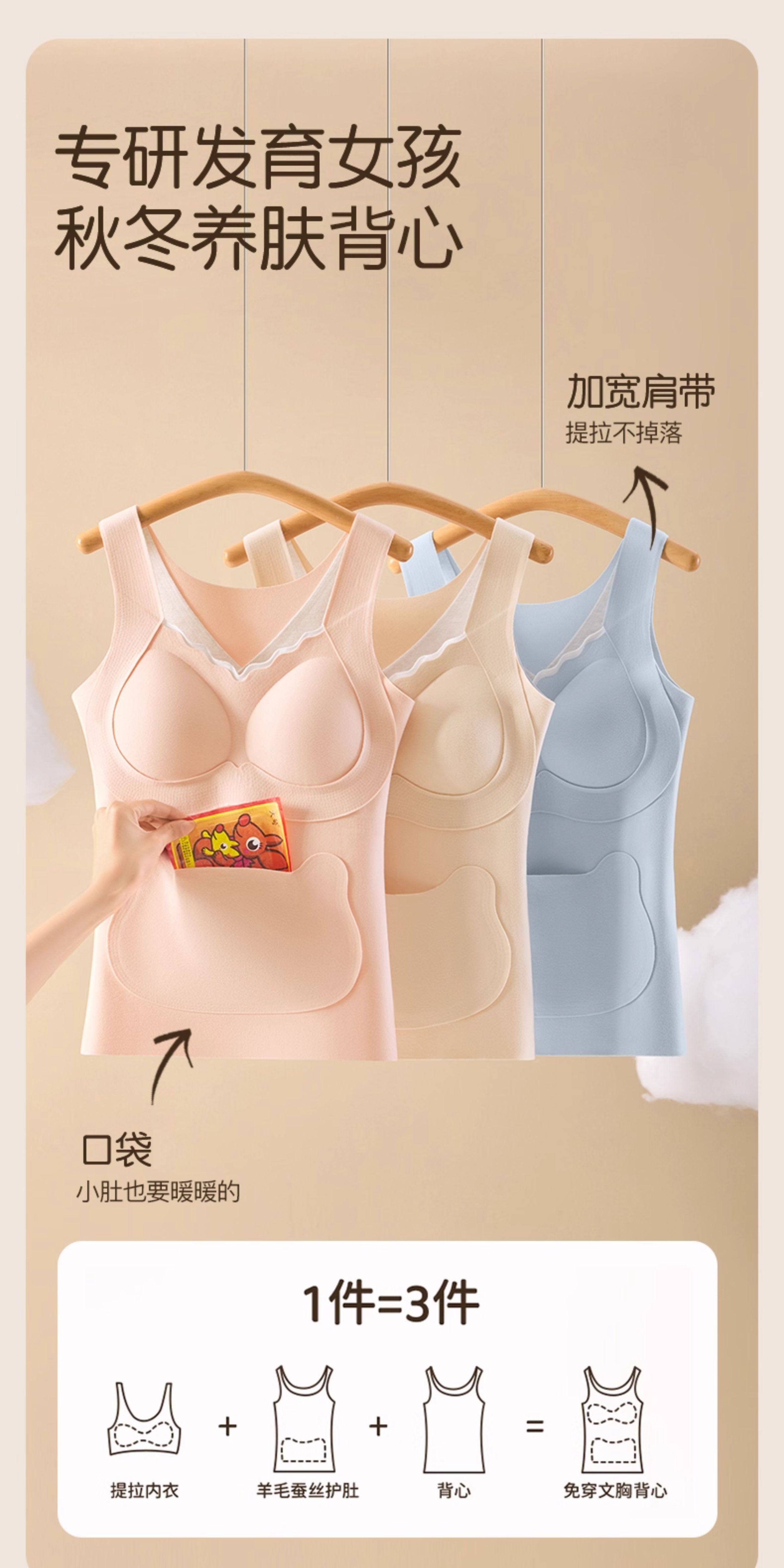 貓人少女女童發育期初高中生保暖背心羊毛蠶絲蓄熱青春期免穿文胸
