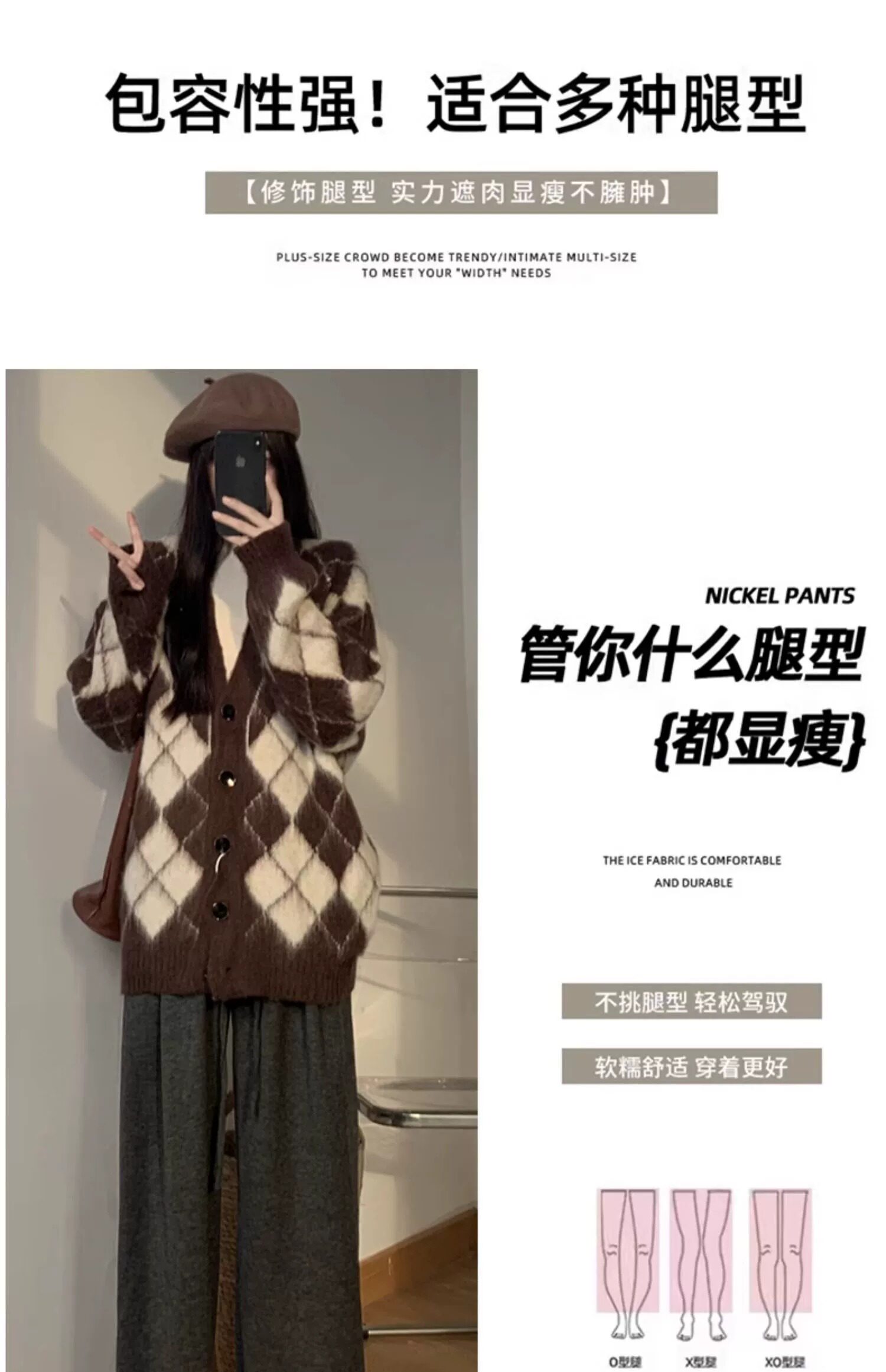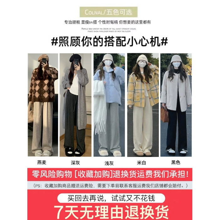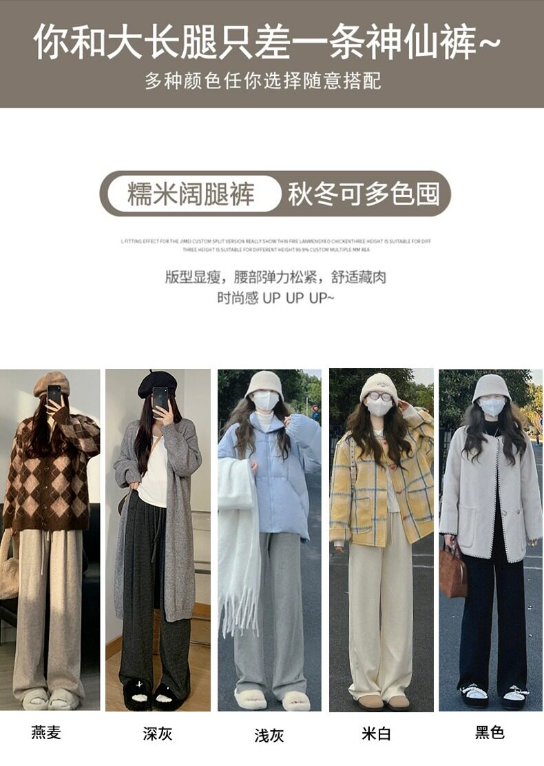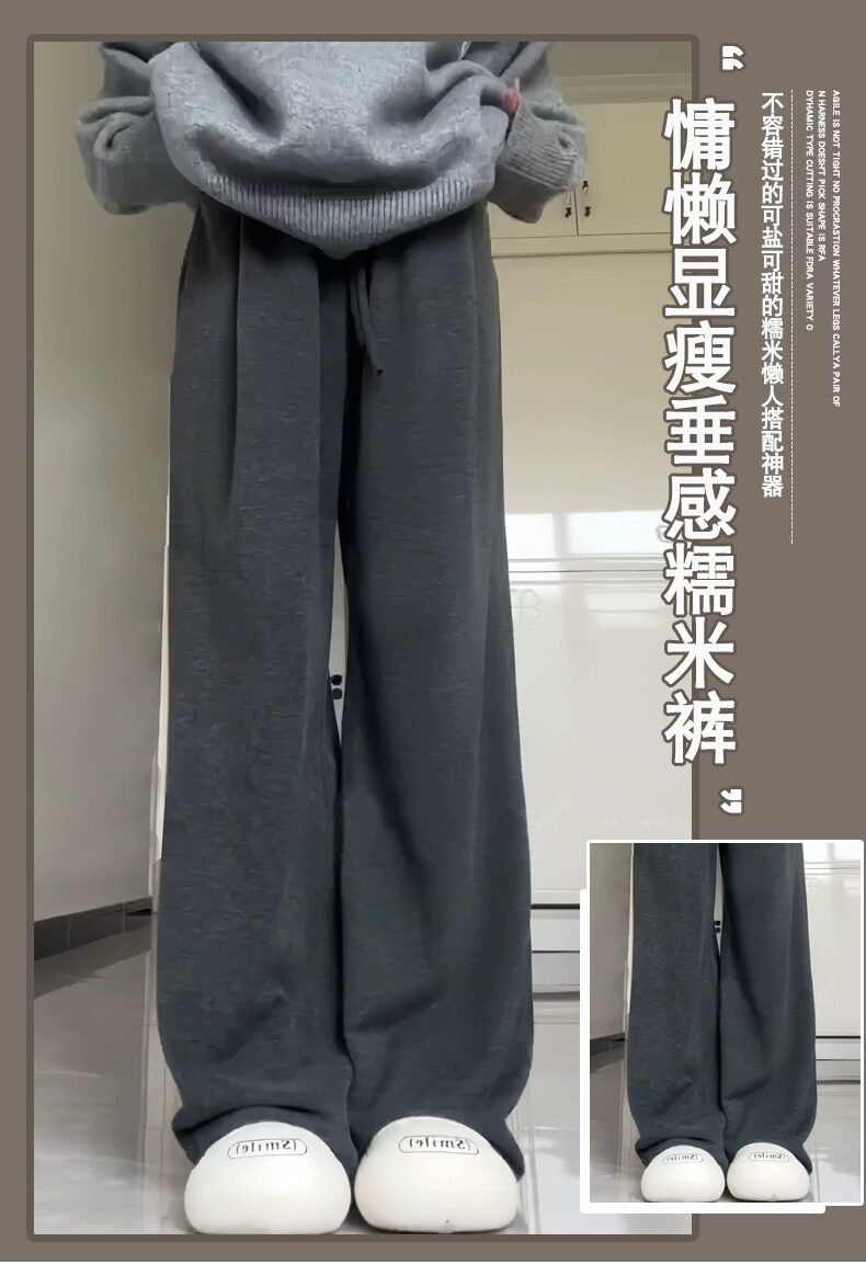 145小個子灰色糯米褲子女秋冬150加絨高腰直筒垂感羊絨寬鬆濶腿褲