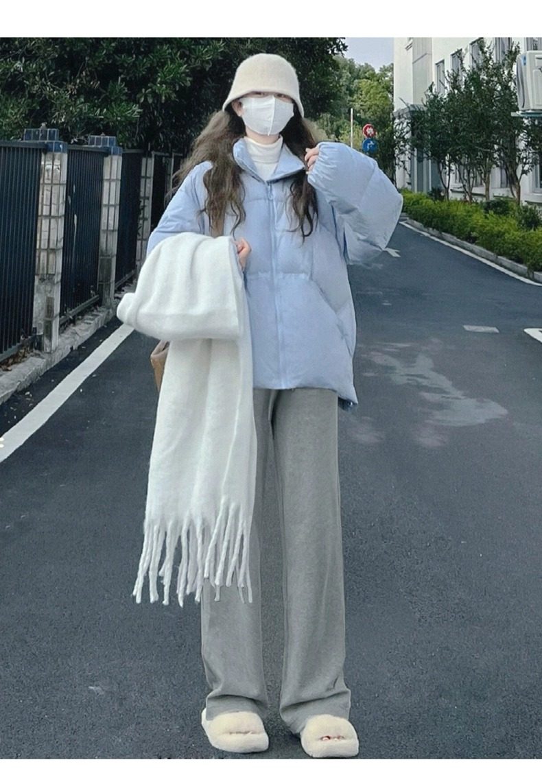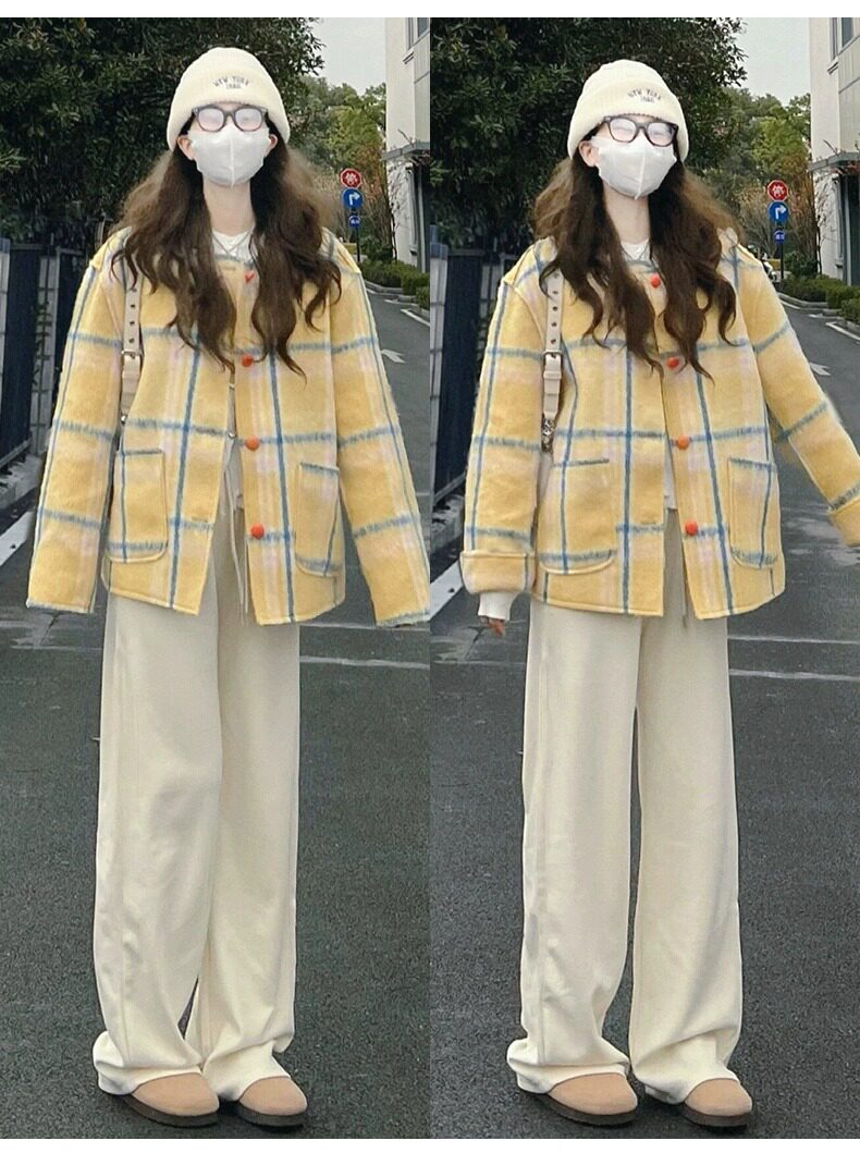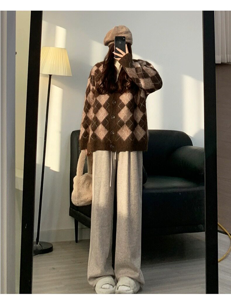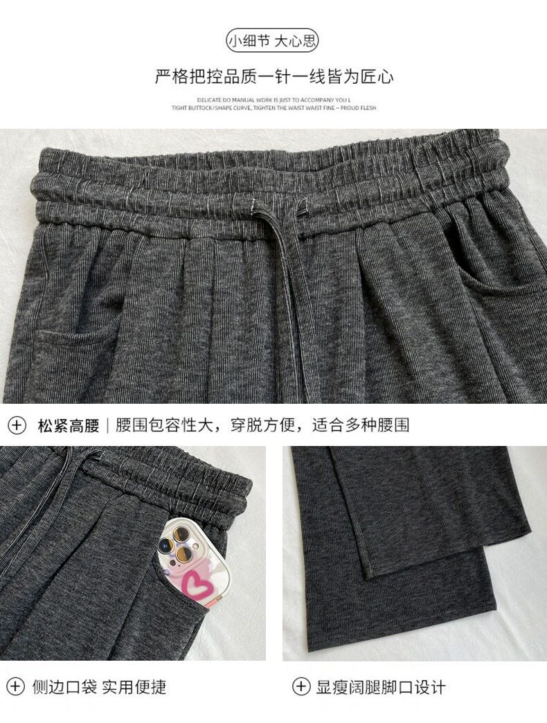 145小個子灰色糯米褲子女秋冬150加絨高腰直筒垂感羊絨寬鬆濶腿褲