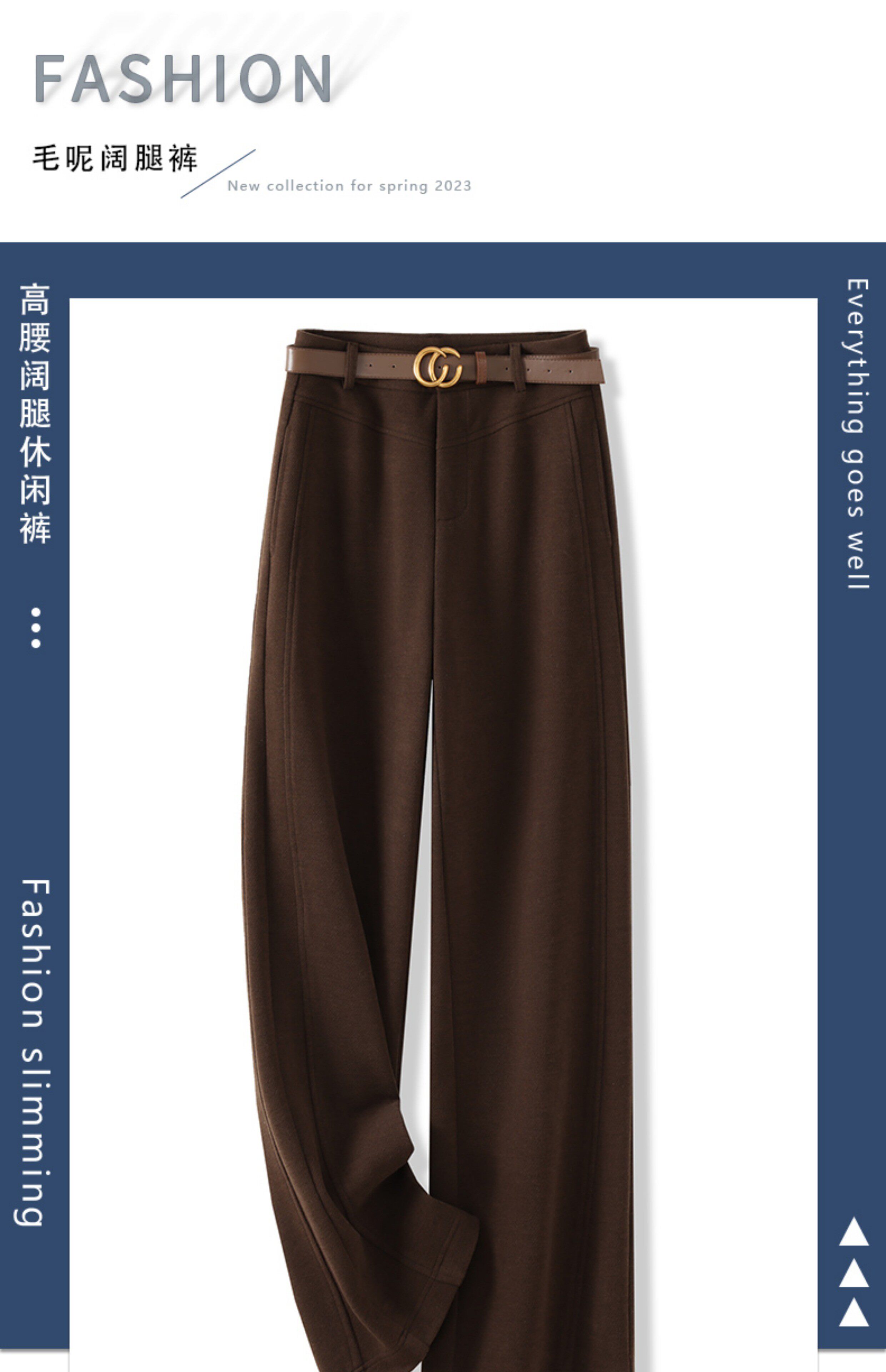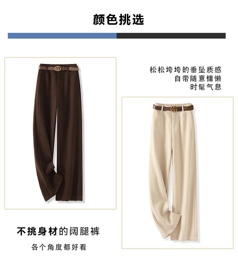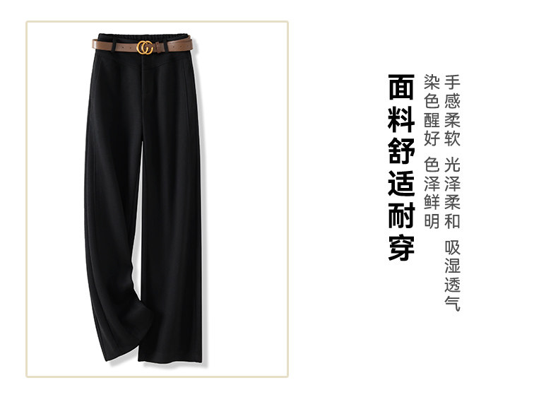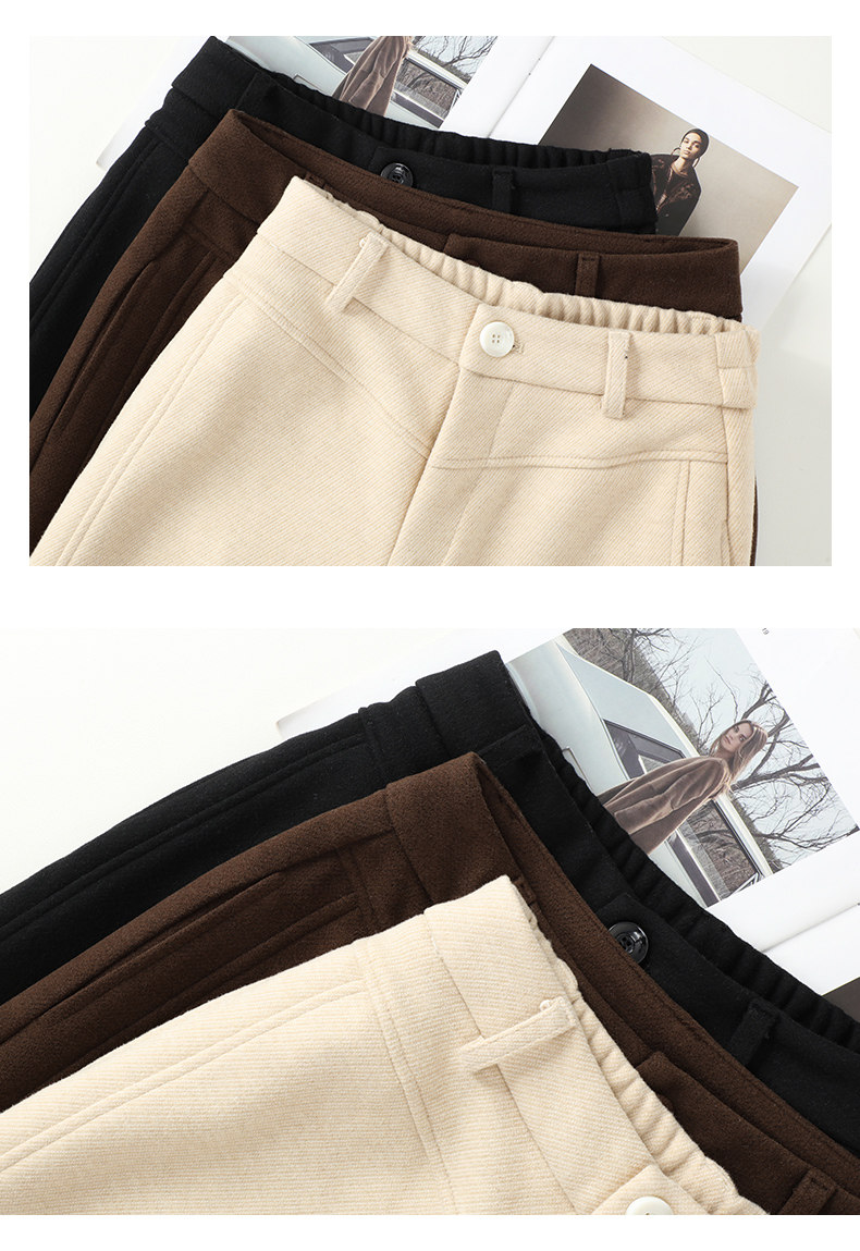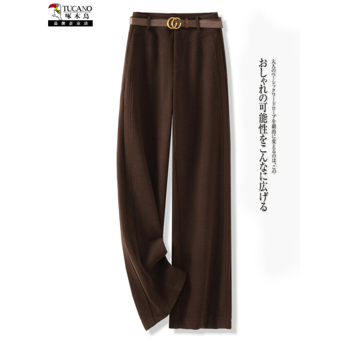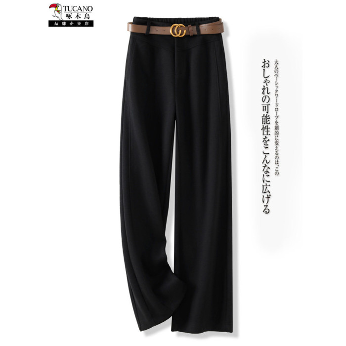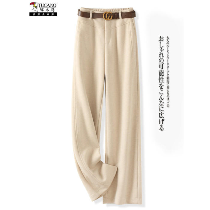 啄木鳥高級毛呢直筒褲女秋冬新款垂感呢子西褲加厚氣質窄版濶腿褲