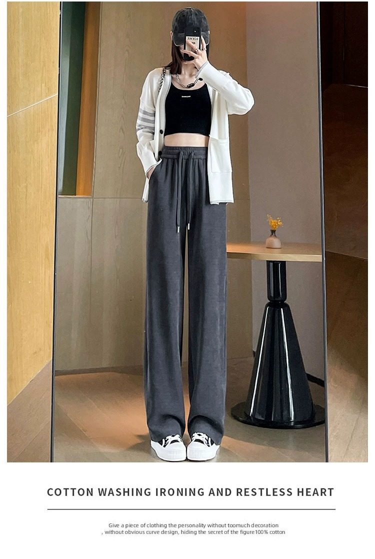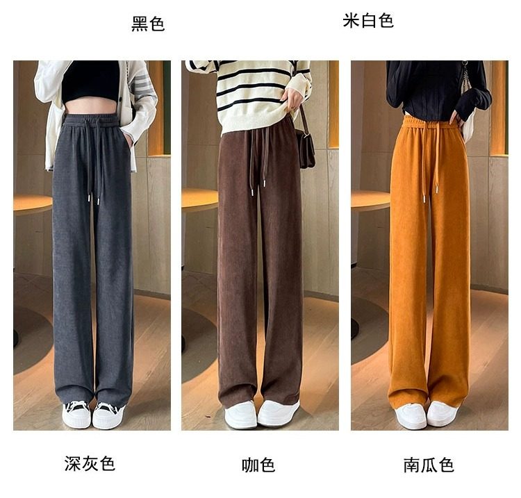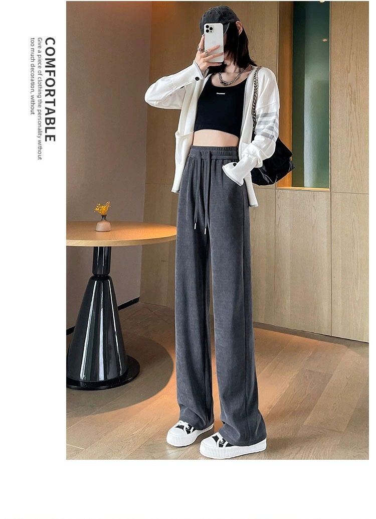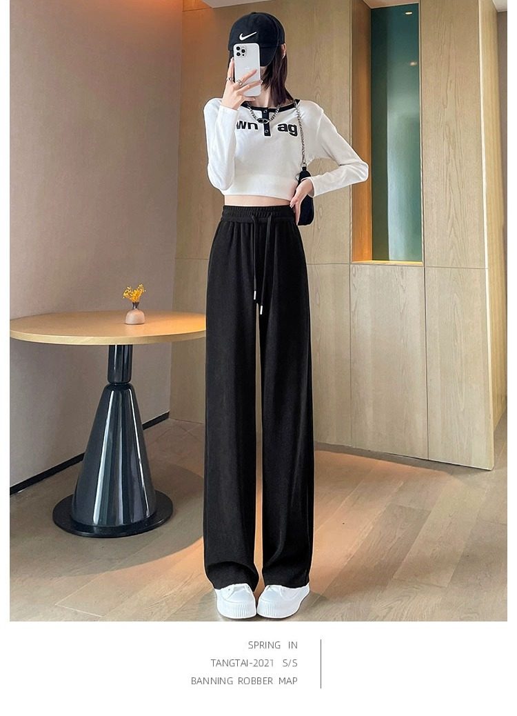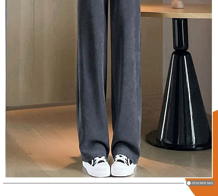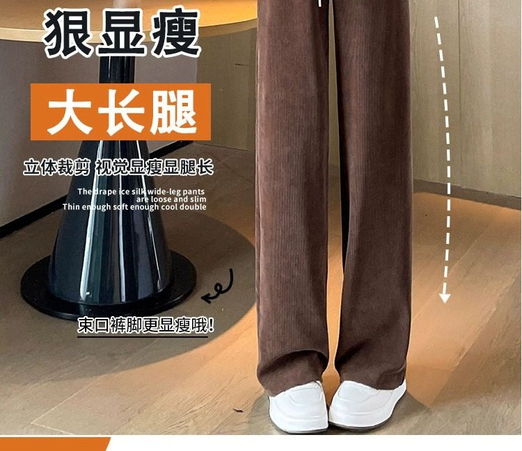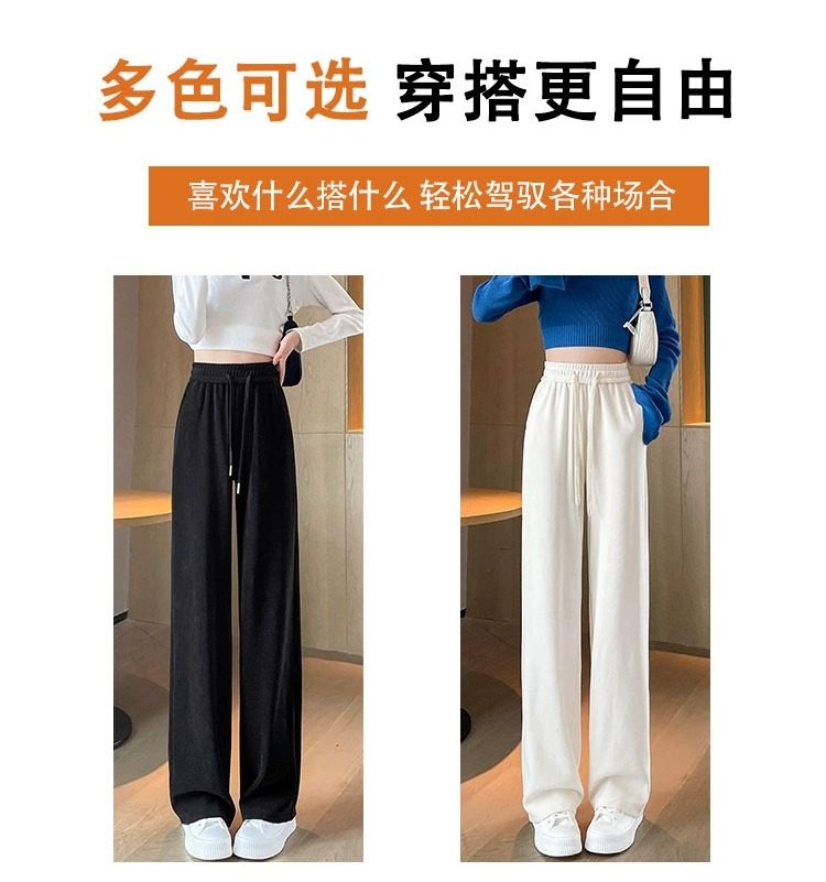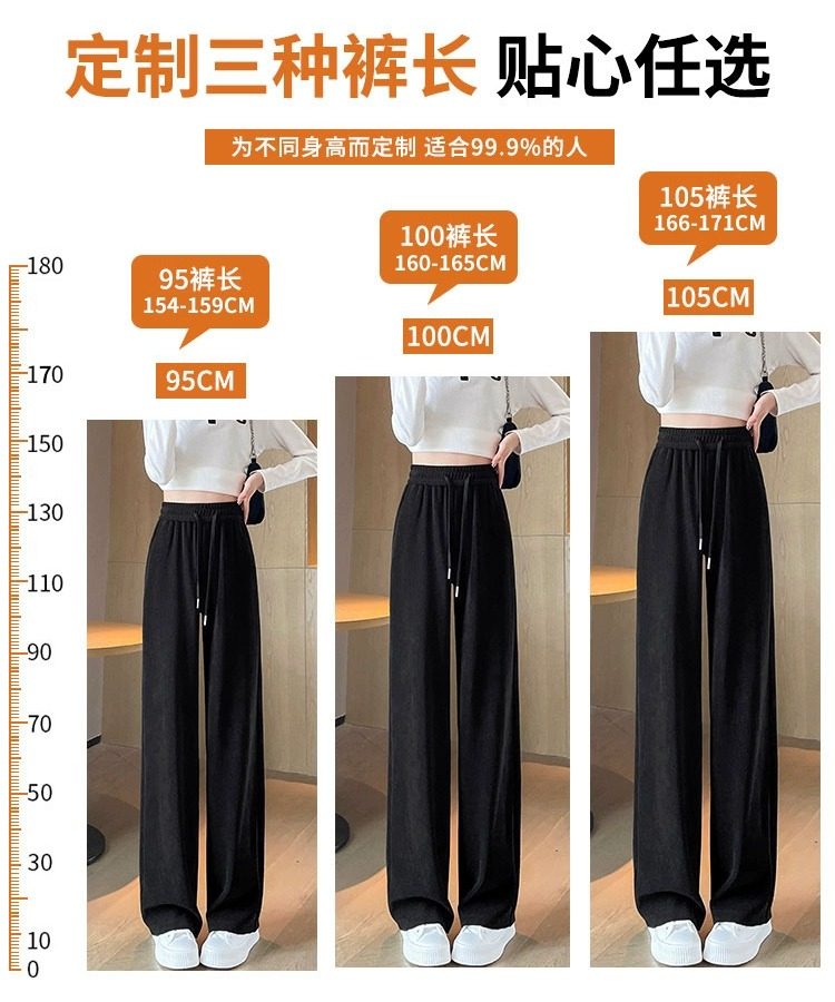 145cm小個子窄版濶腿褲女春秋2024年新款雪尼爾垂感休閒直筒褲子