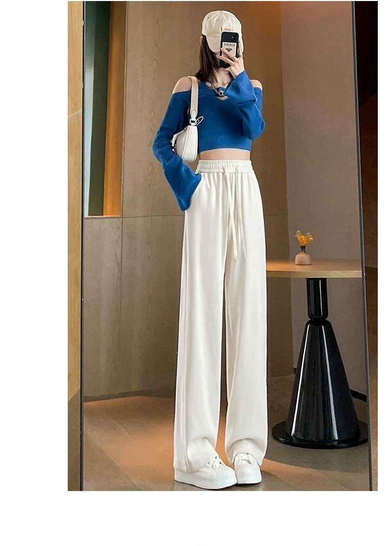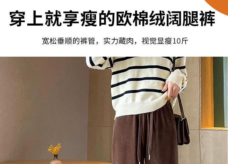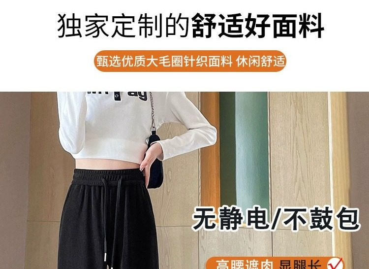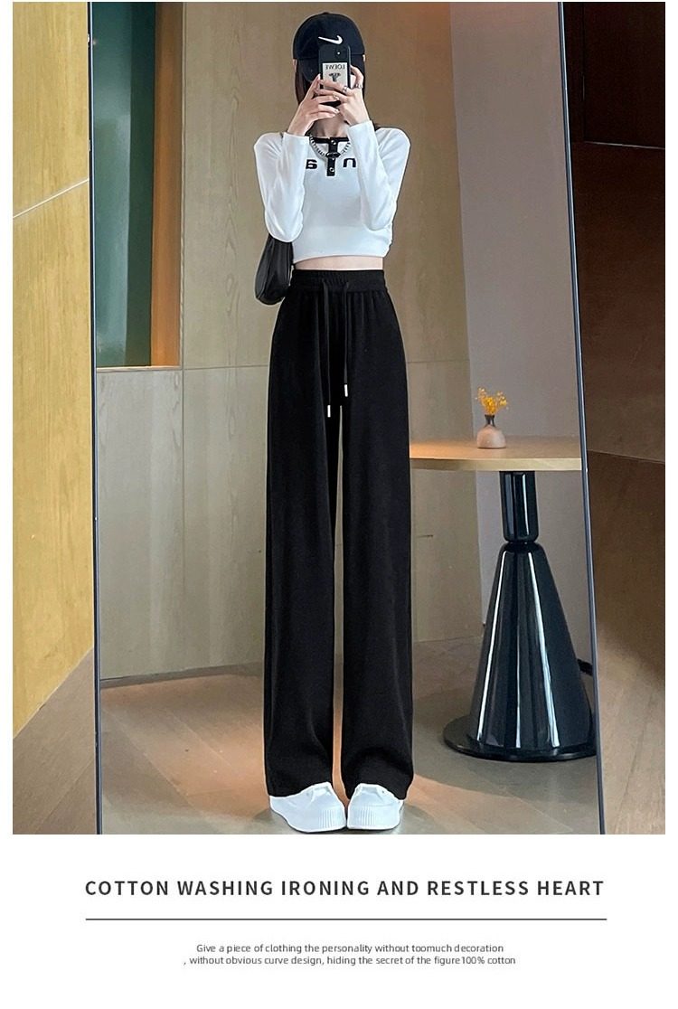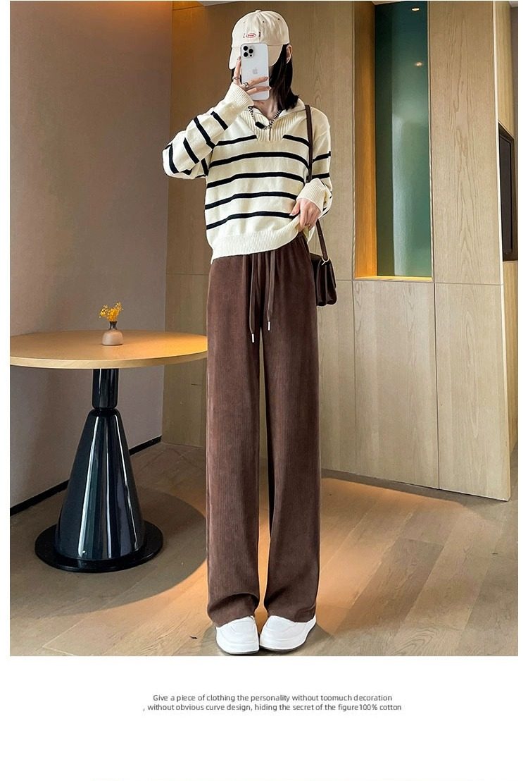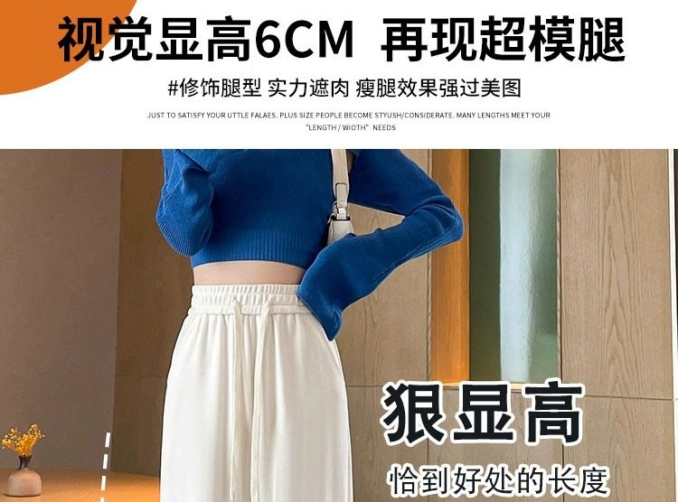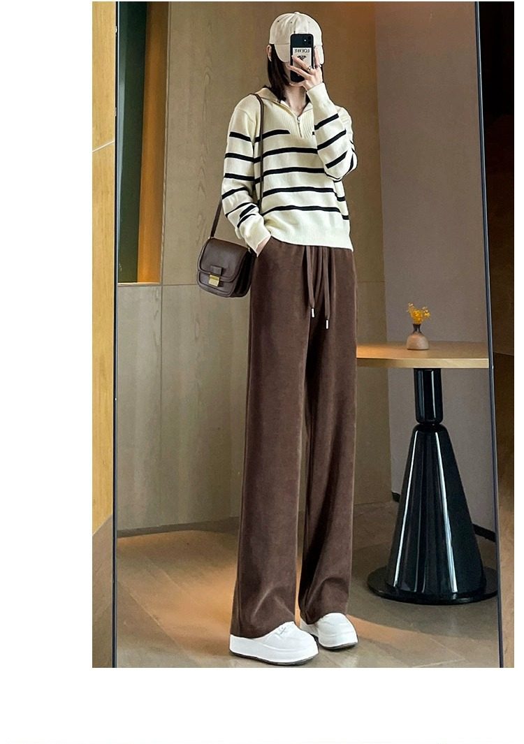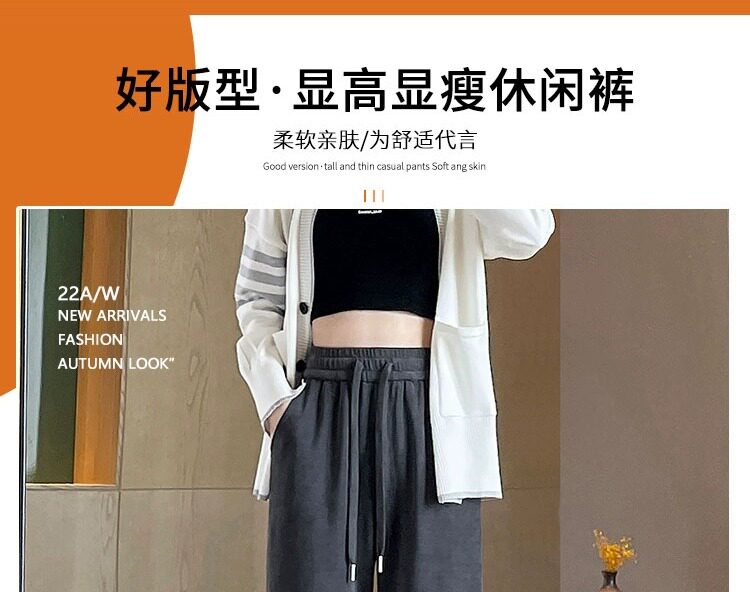 145cm小個子窄版濶腿褲女春秋2024年新款雪尼爾垂感休閒直筒褲子