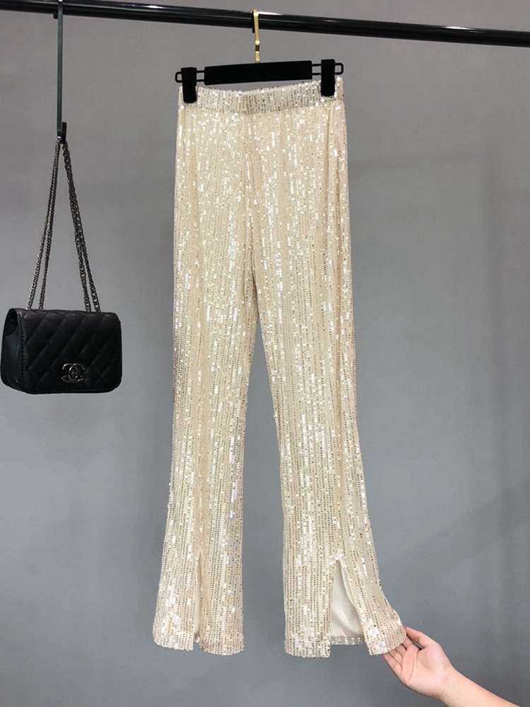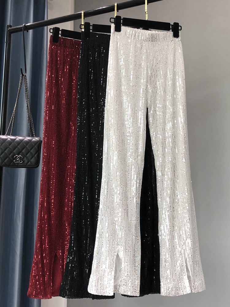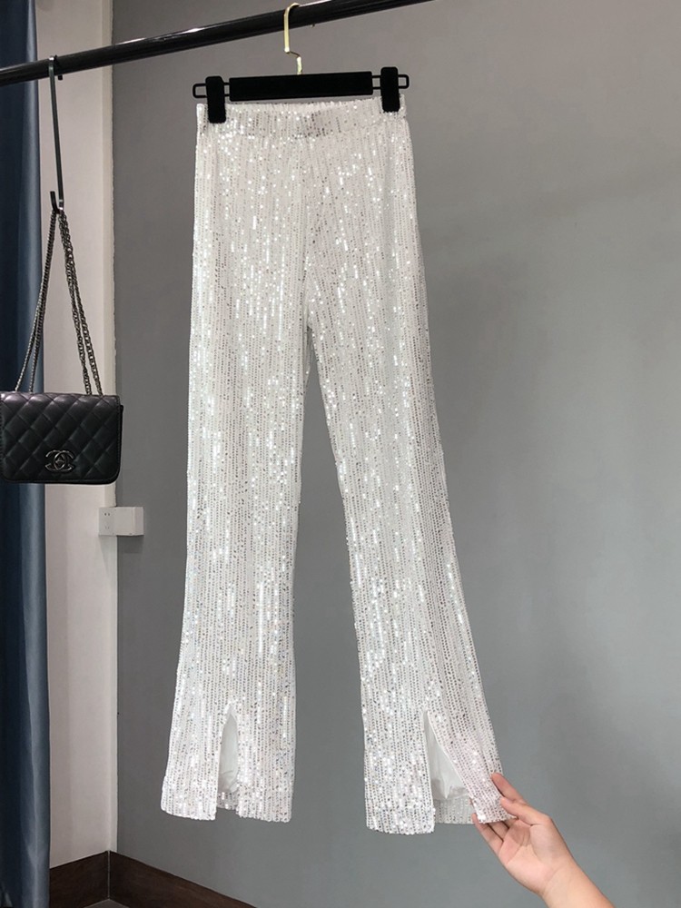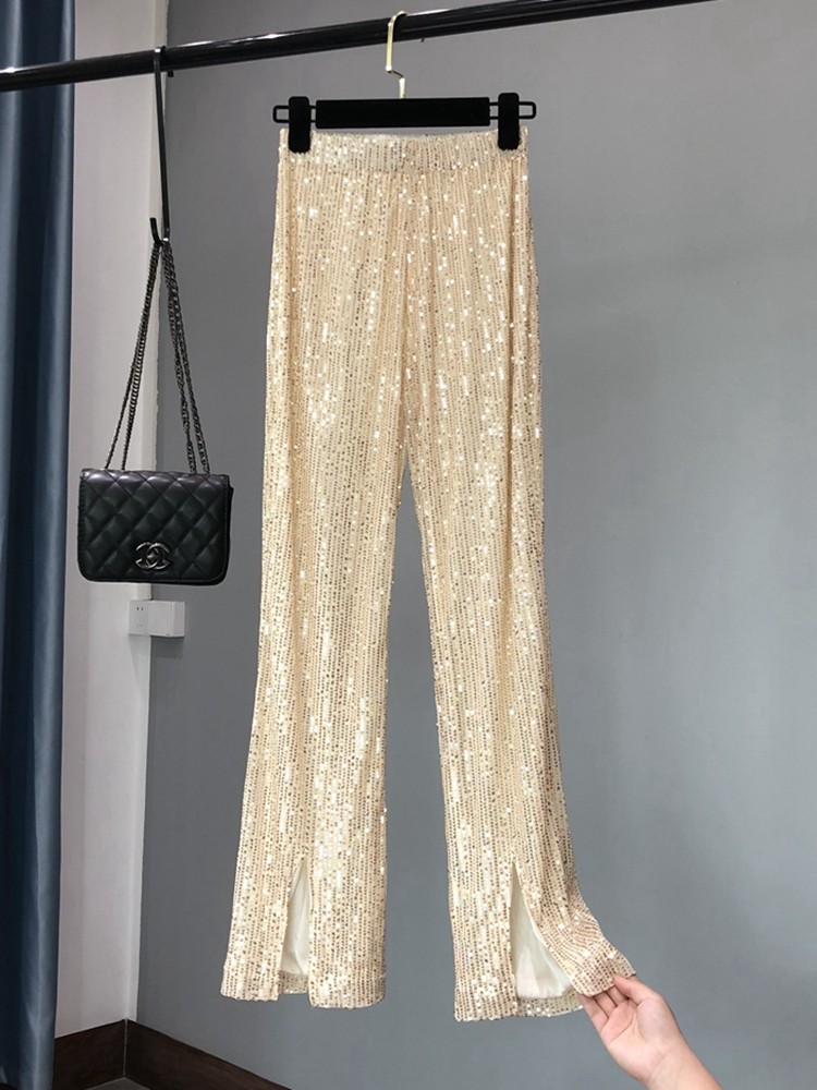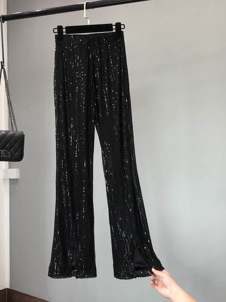 2022夏季新款薄款亮片修身顯瘦微喇叭褲大長腿垂感高腰拖地長褲女