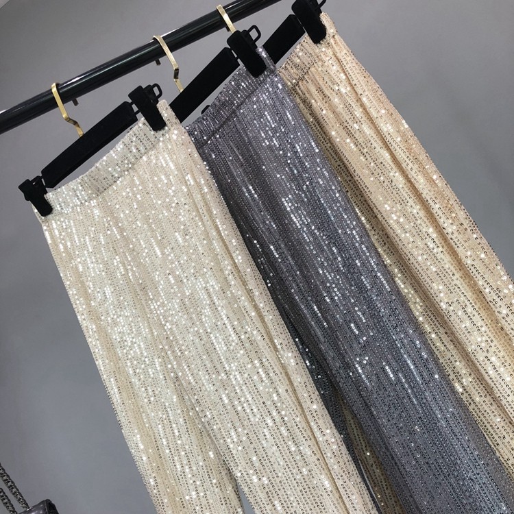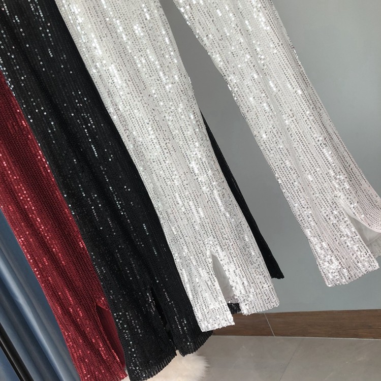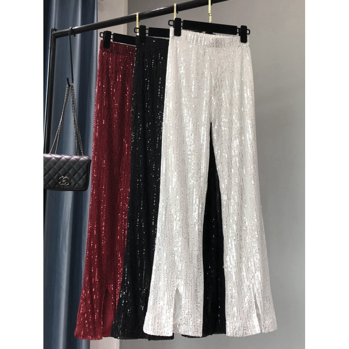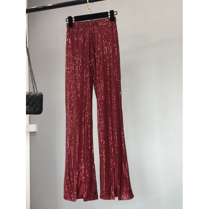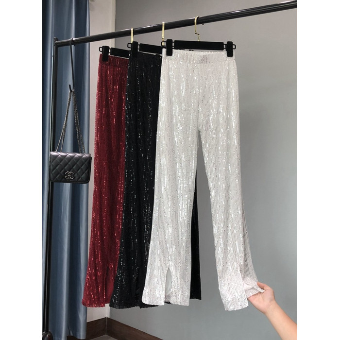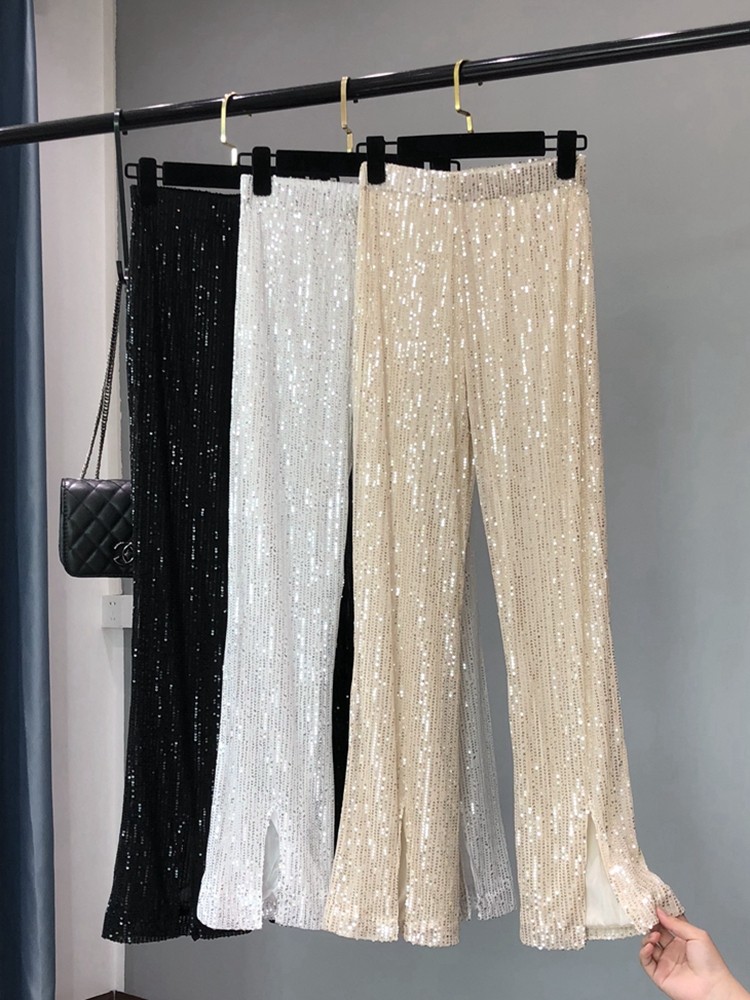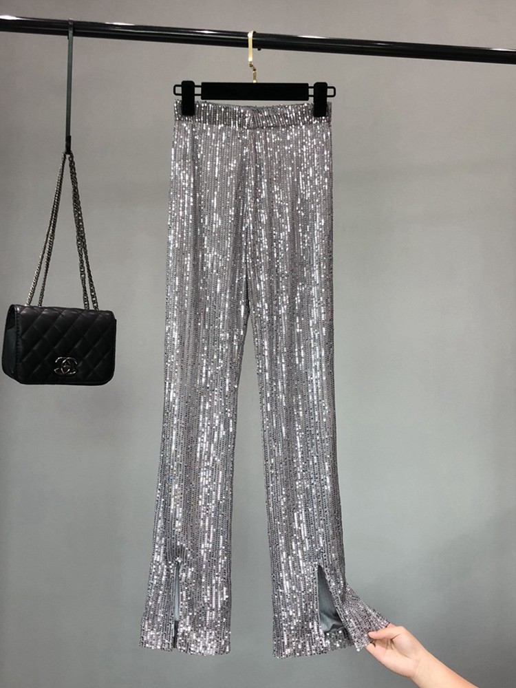 2022夏季新款薄款亮片修身顯瘦微喇叭褲大長腿垂感高腰拖地長褲女