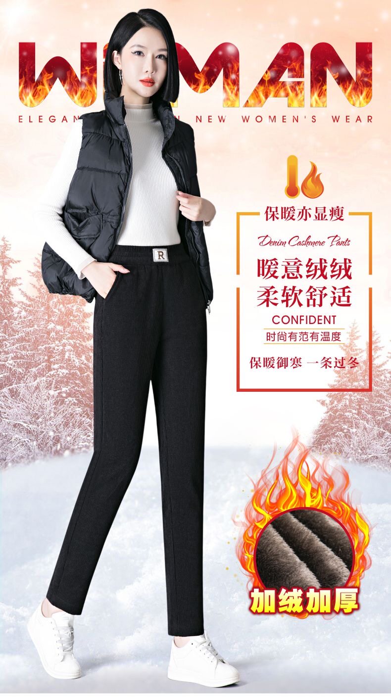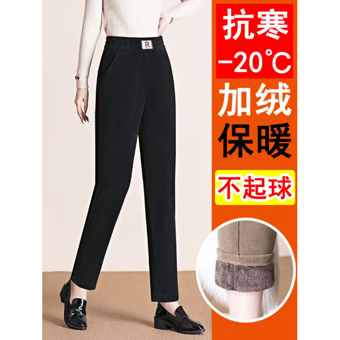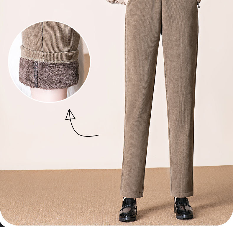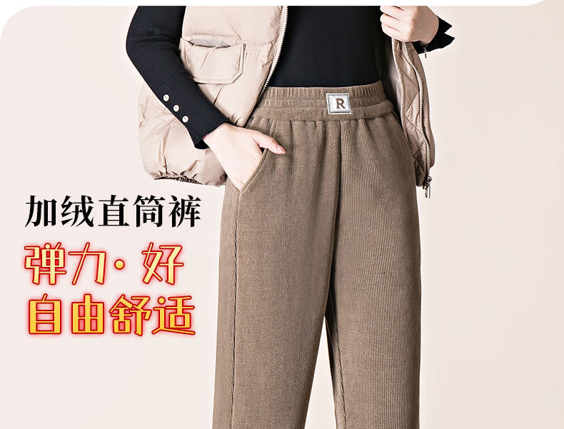 雪尼爾加絨褲子女冬季窄版直筒褲寬鬆加厚媽媽褲百搭外穿休閒女褲