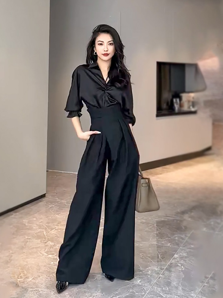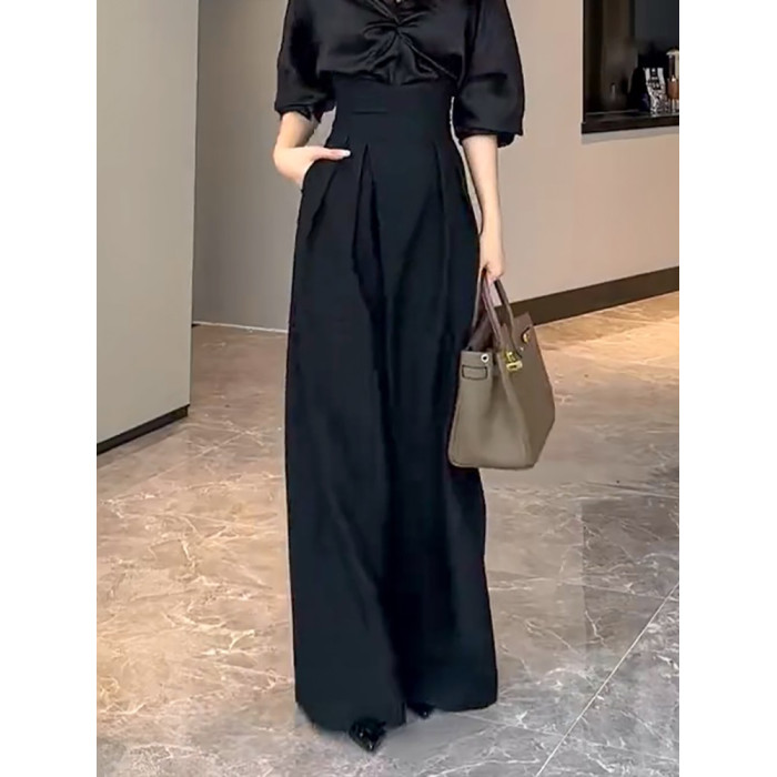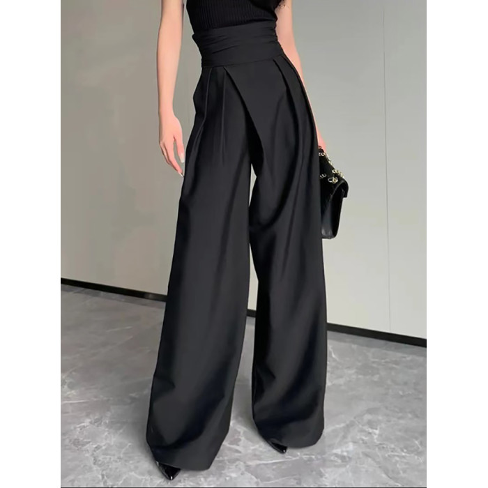 高腰濶腿褲女春秋2025新款韓版垂感顯瘦休閒寬鬆西裝褲拖地長褲