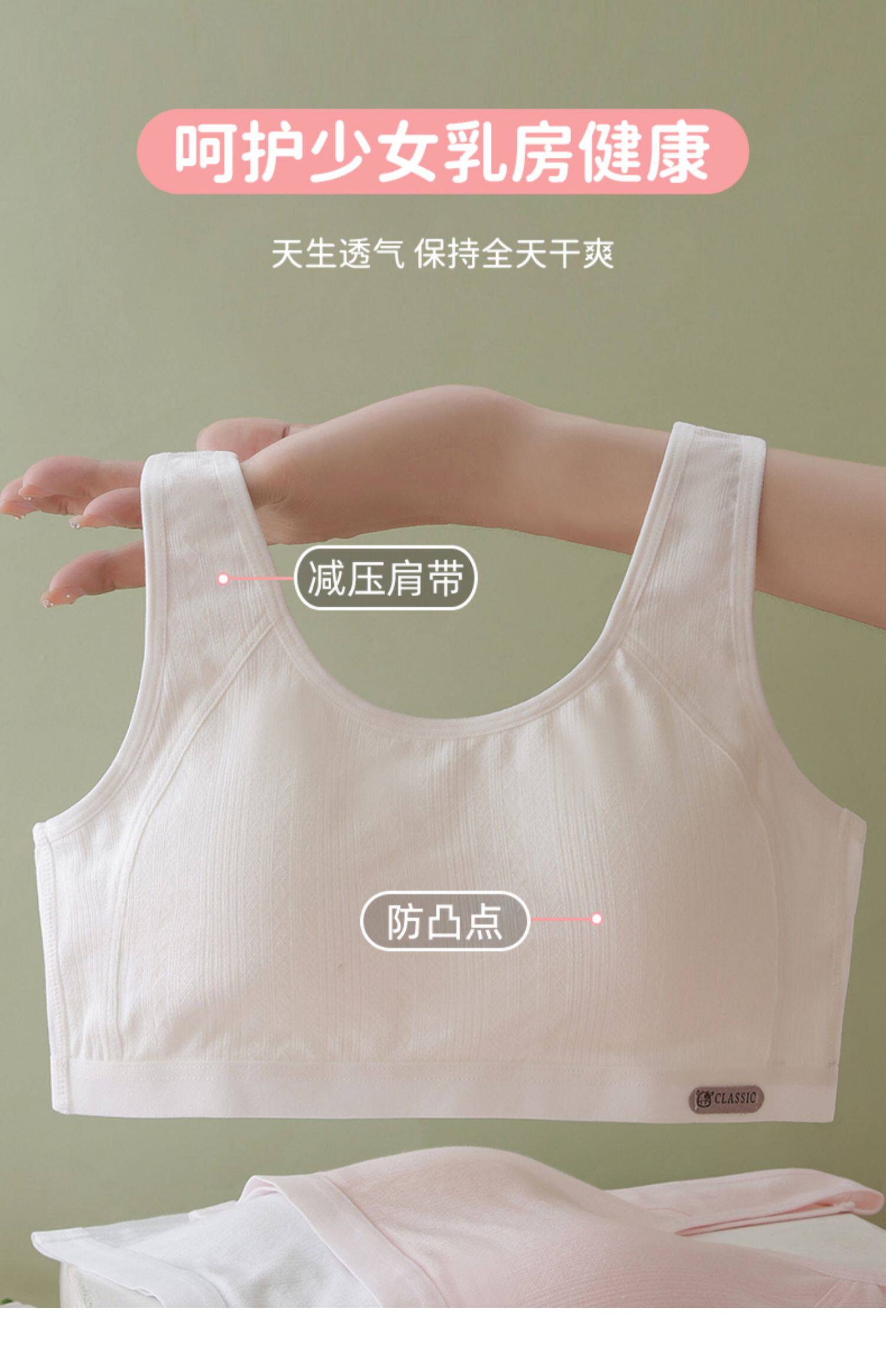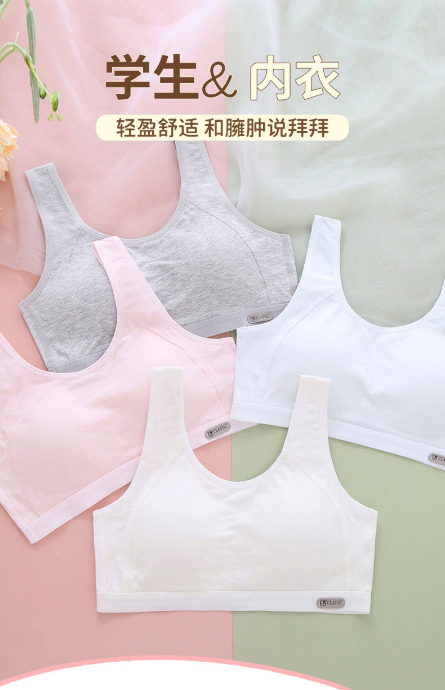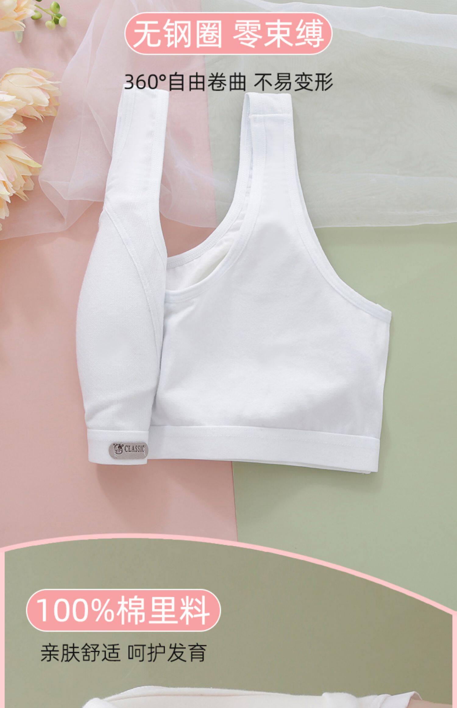 少女運動文胸學生無痕純棉內衣初中生背心發育期透氣高中生防震