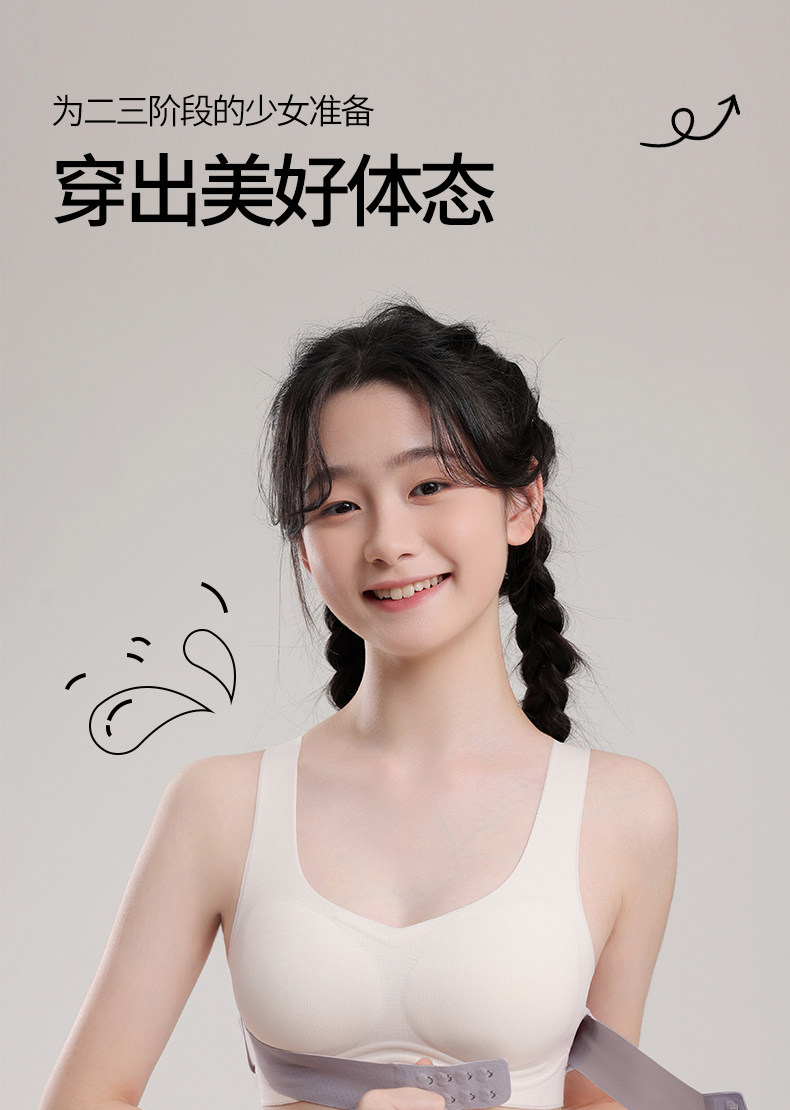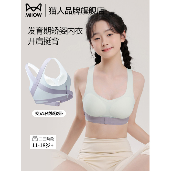 貓人少女發育期矯姿工字美背女大童內衣初中生開肩挺背二階段文胸