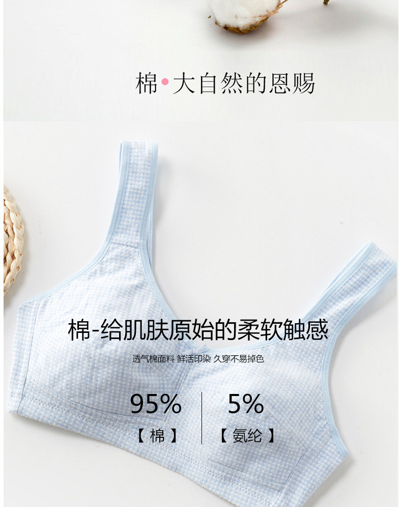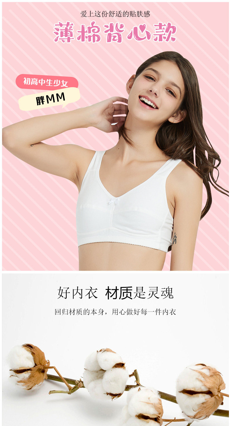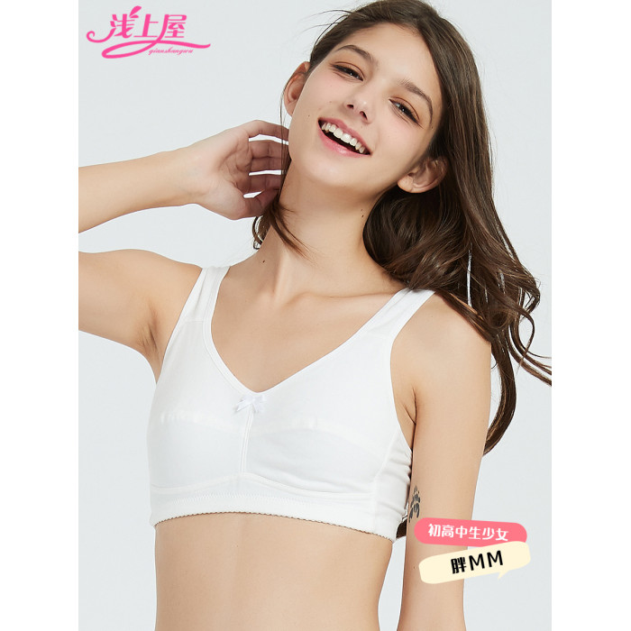 大碼少女文胸純棉無鋼圈薄款大胸顯小胖初中高中大學生發育期內衣
