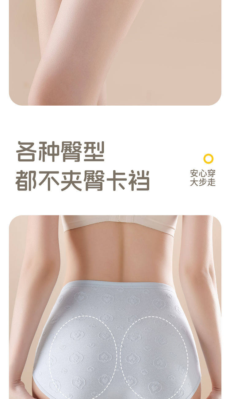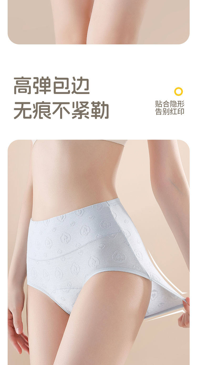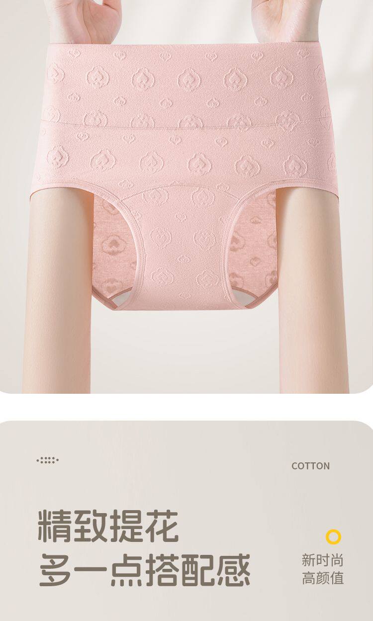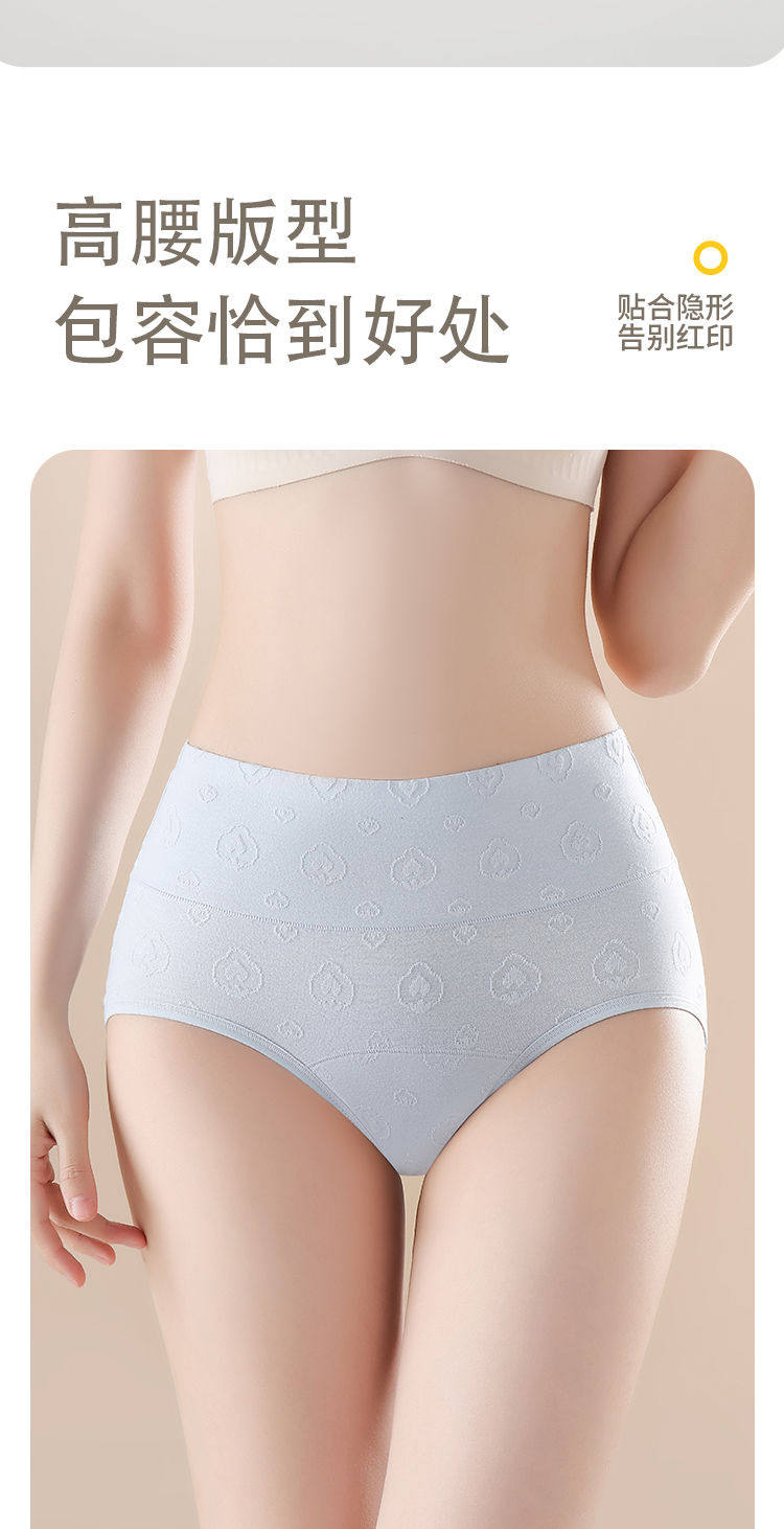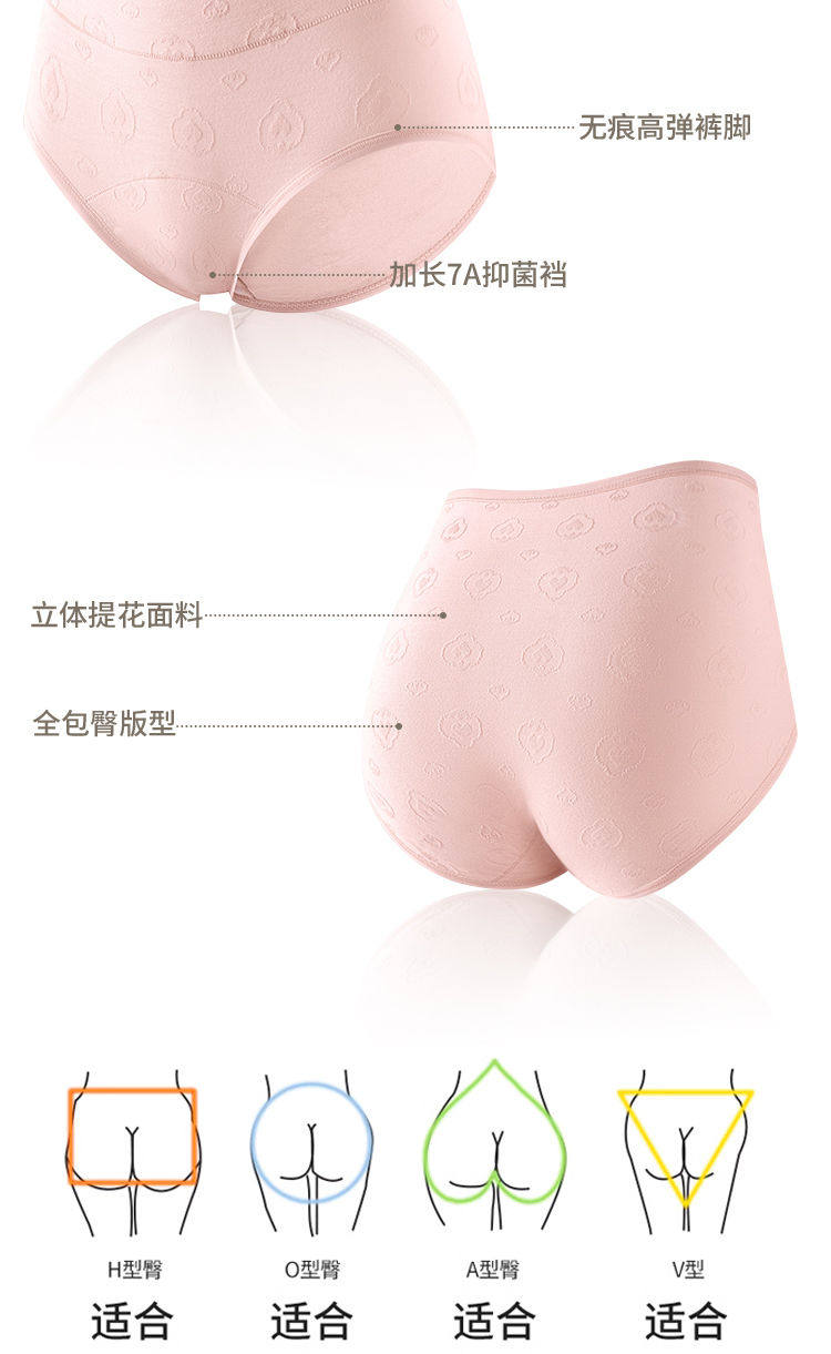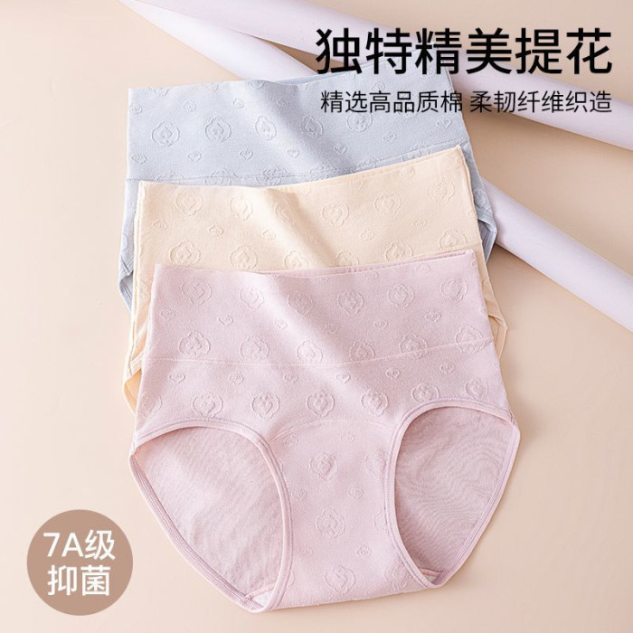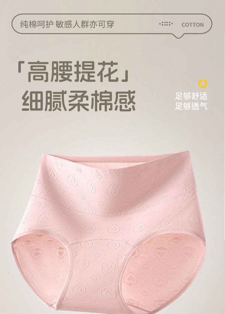 7A抑菌純棉高腰收腹提花舒適內襠加長女士內褲柔軟透氣全棉三角褲