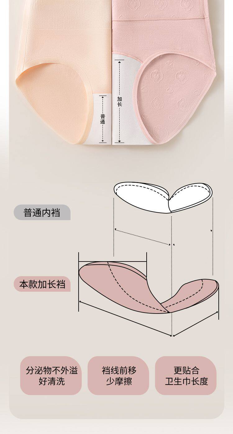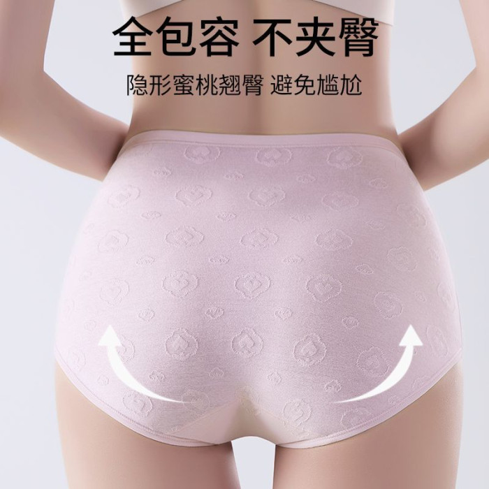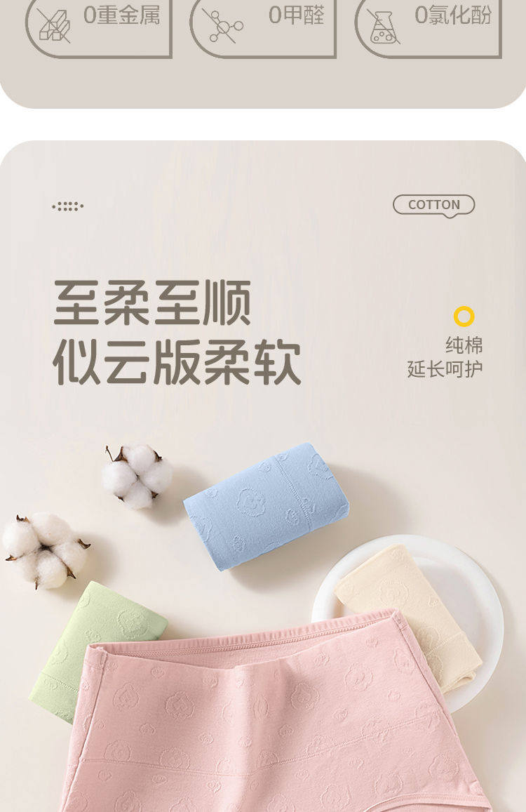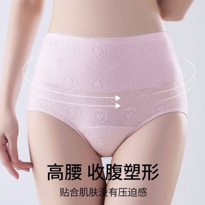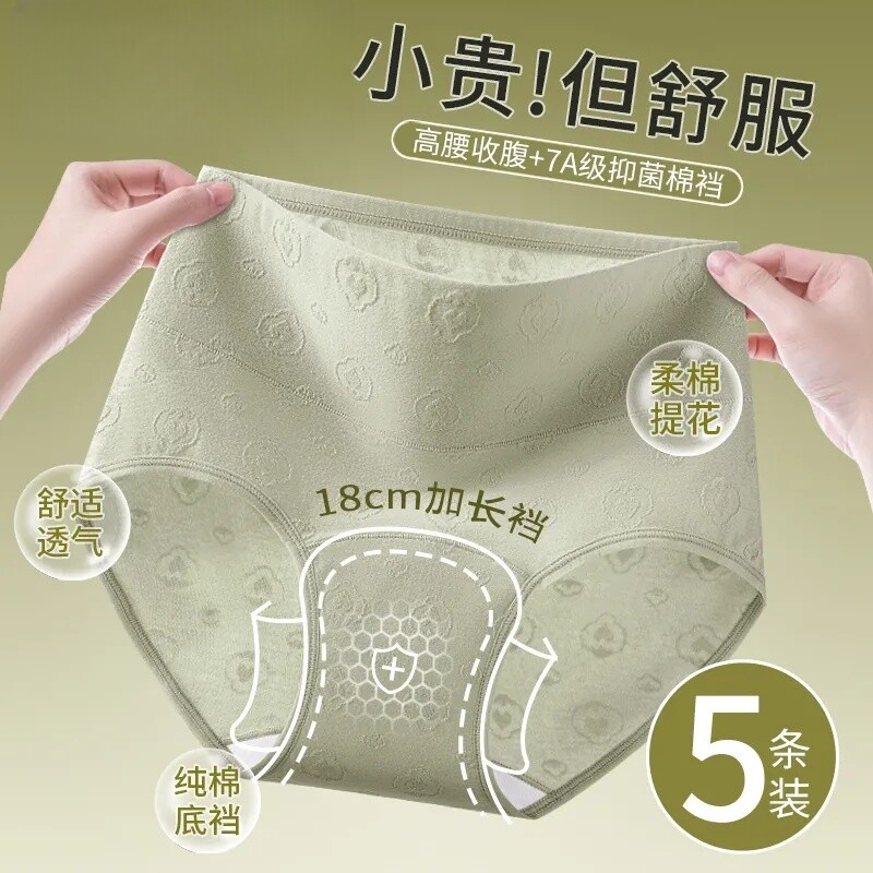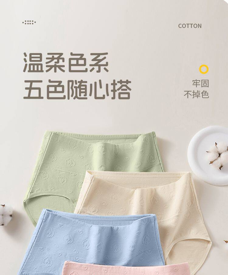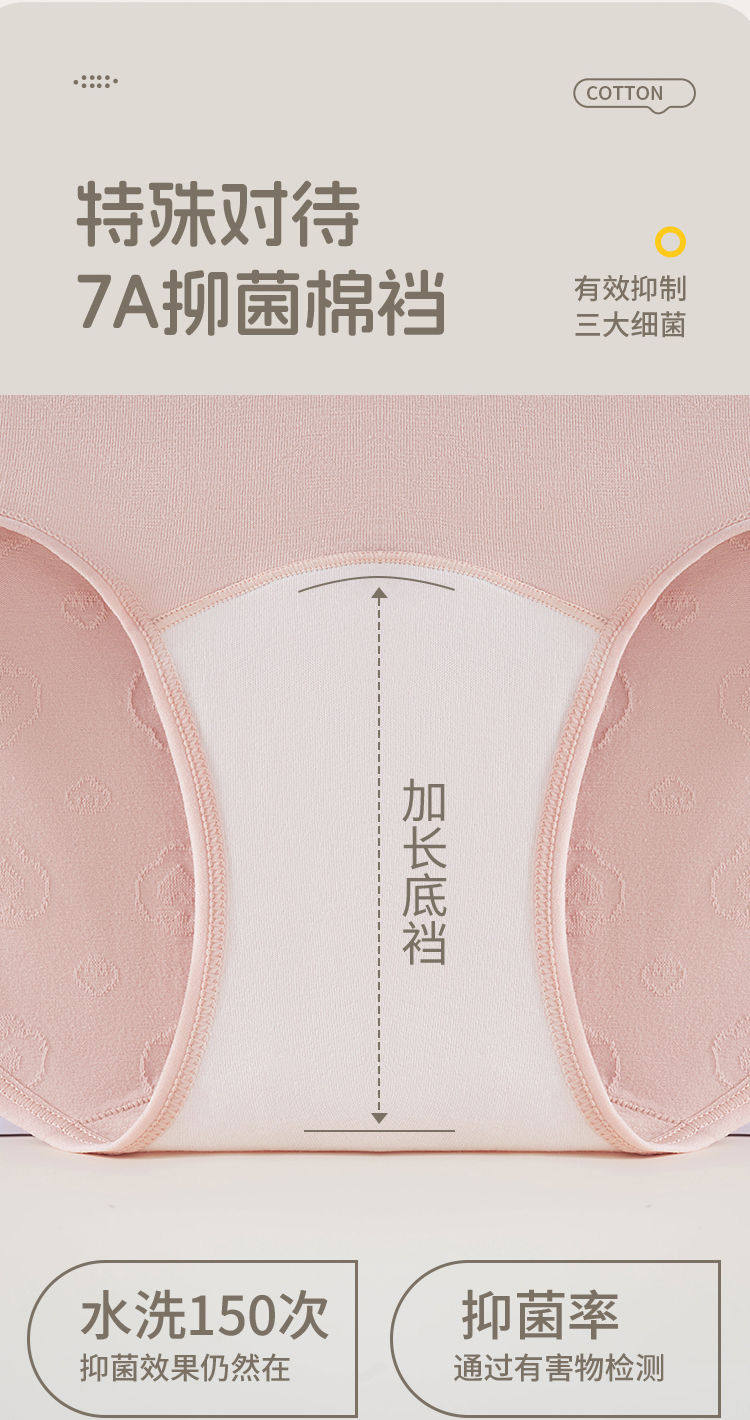 7A抑菌純棉高腰收腹提花舒適內襠加長女士內褲柔軟透氣全棉三角褲