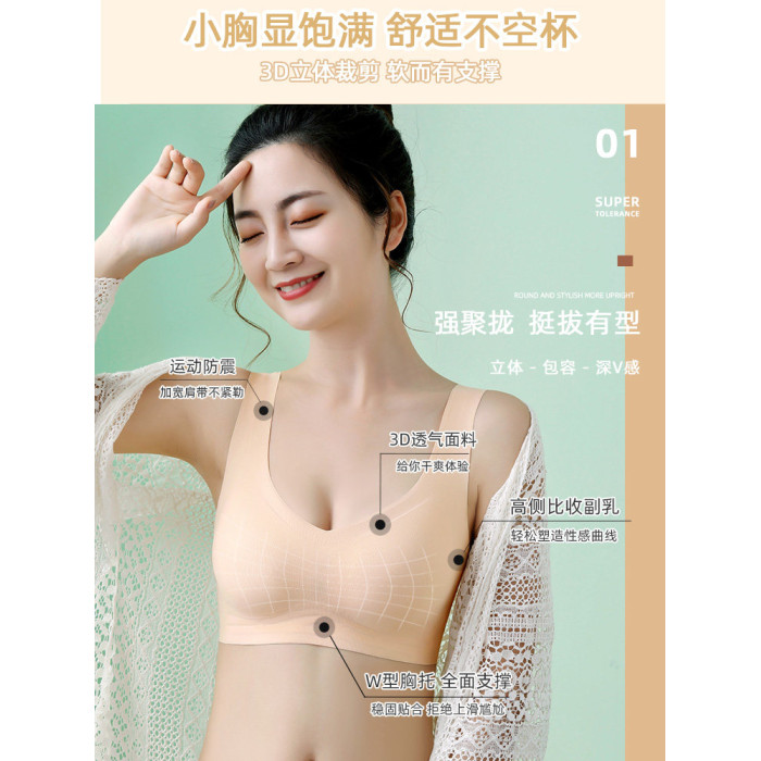 無痕運動內衣女夏季小胸聚攏無鋼圈收副乳防下垂上托背心式文胸罩