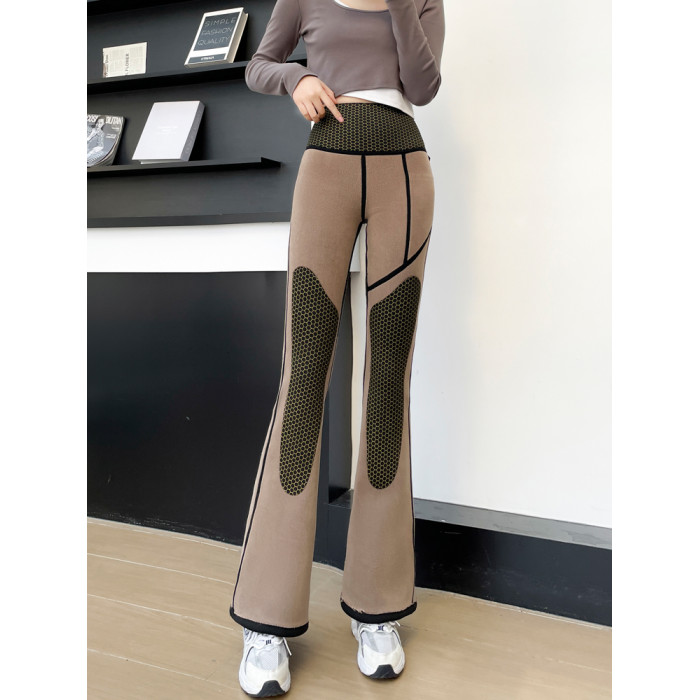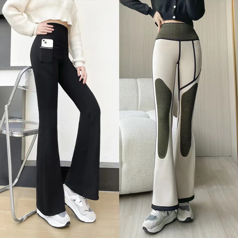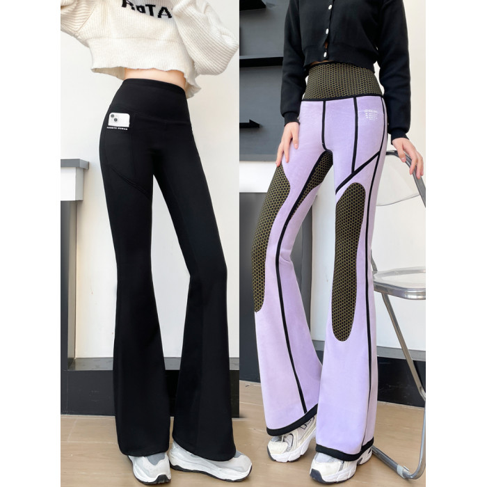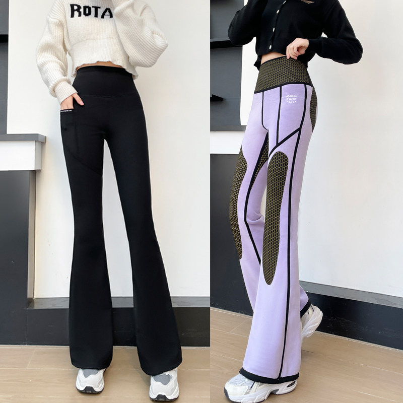 女秋冬加絨加厚微喇鯊魚褲高腰收腹提臀顯瘦外穿打底口袋瑜珈褲子