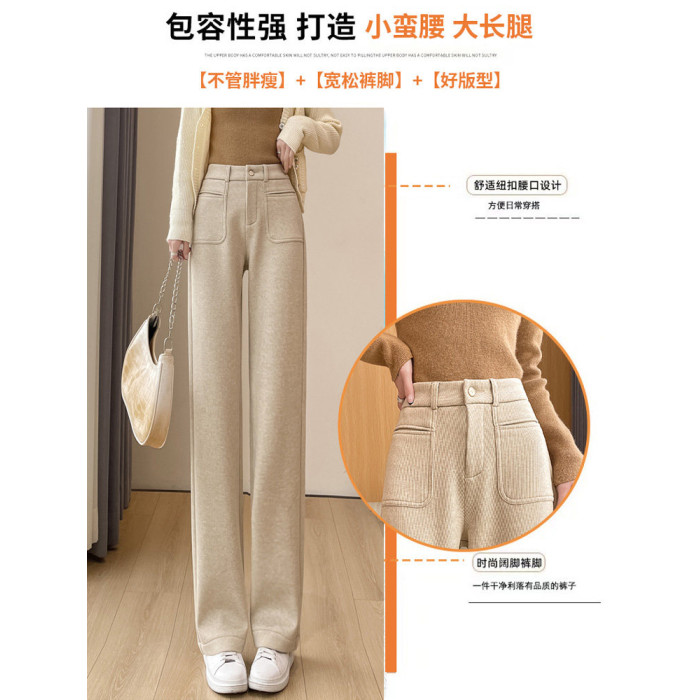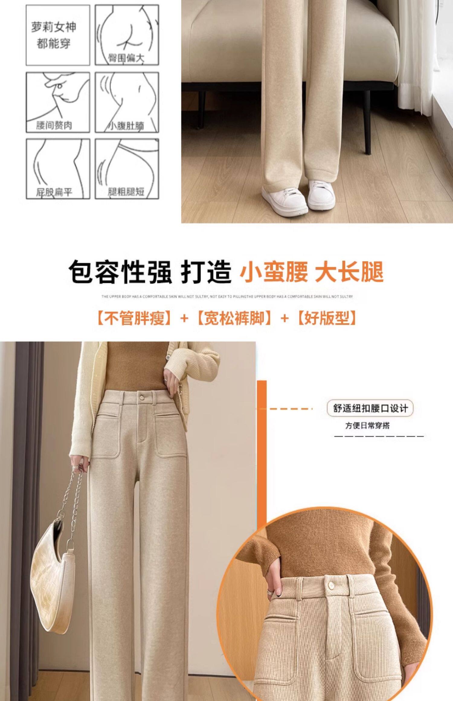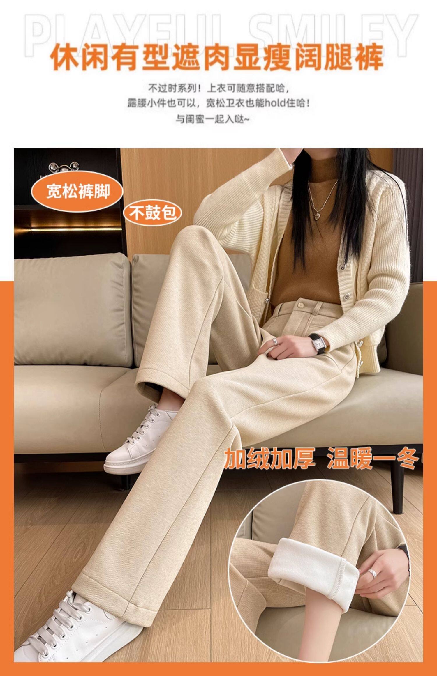 加長加絨秋冬濶腿褲女2026新款高個子175直筒顯瘦170高腰拖地褲子