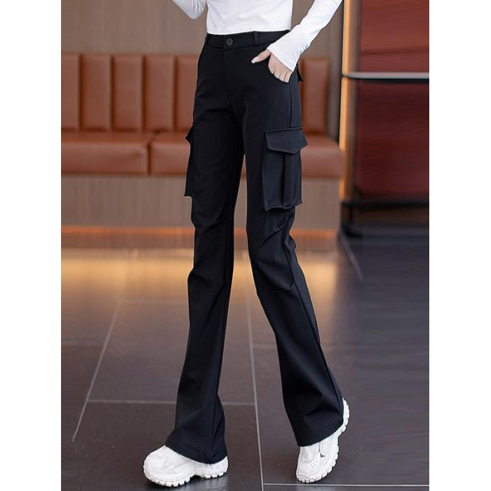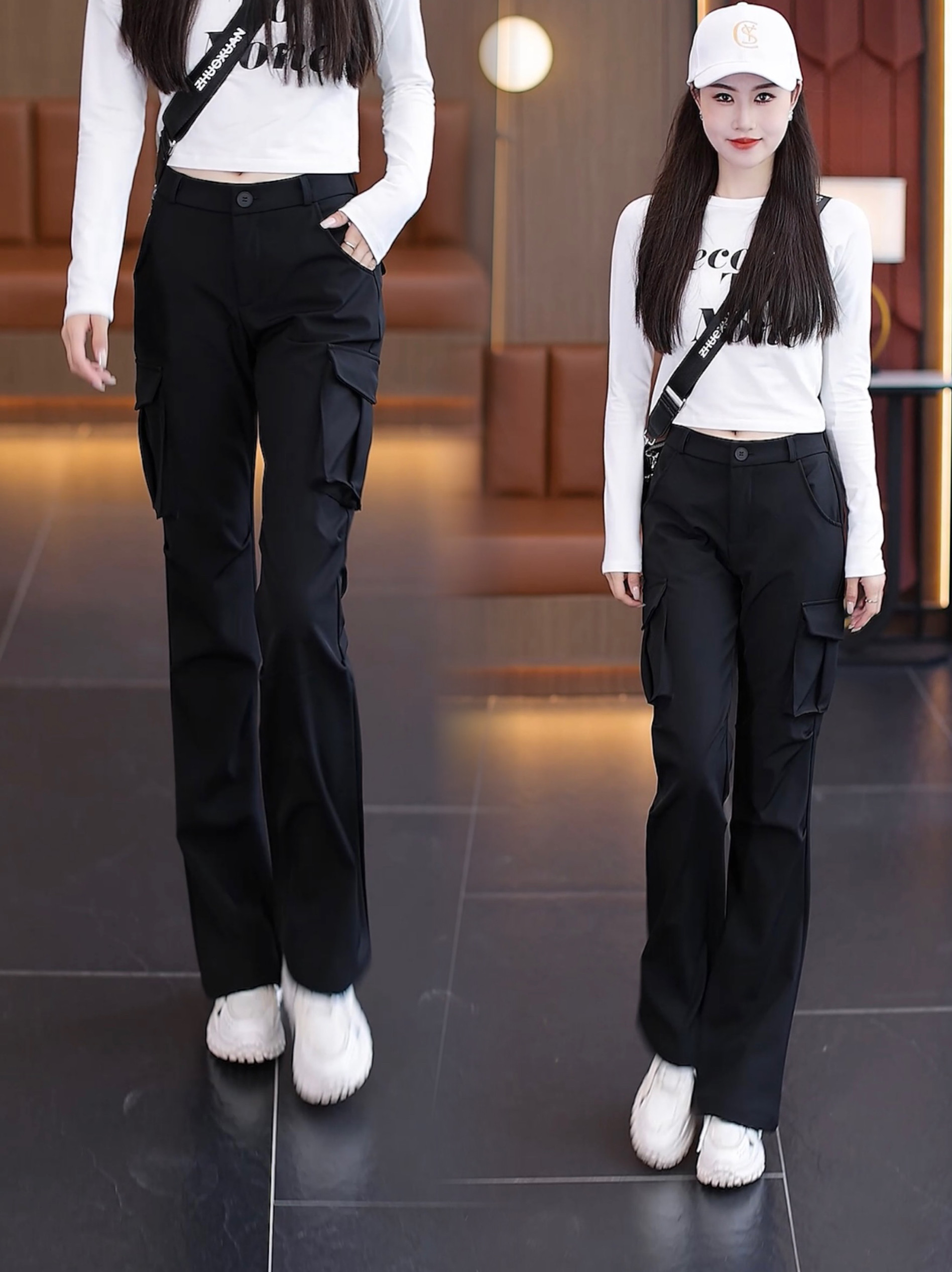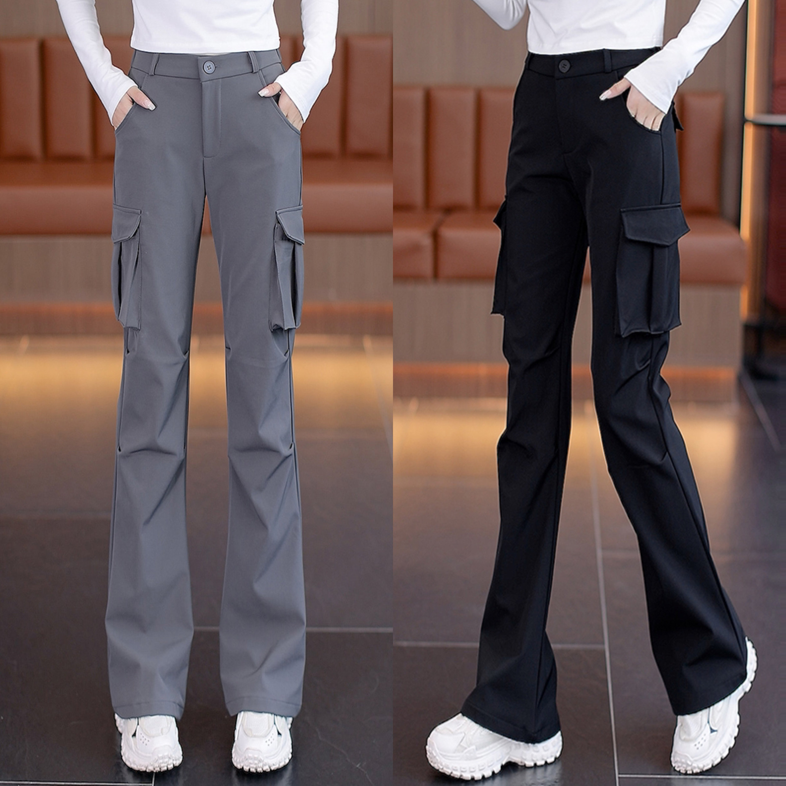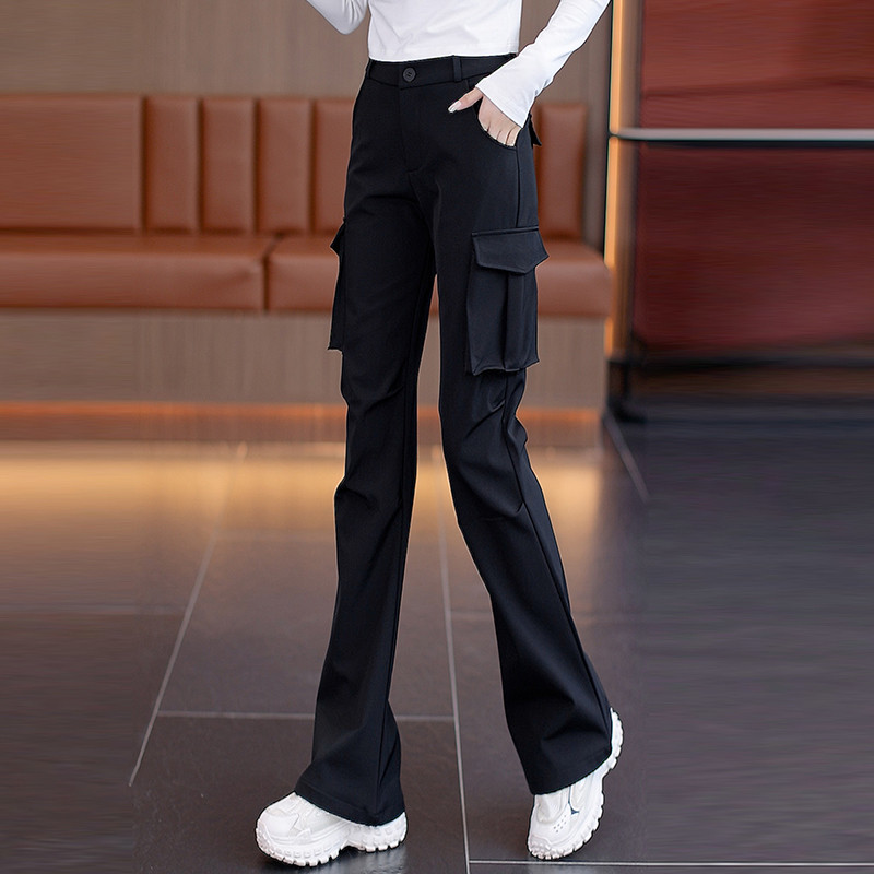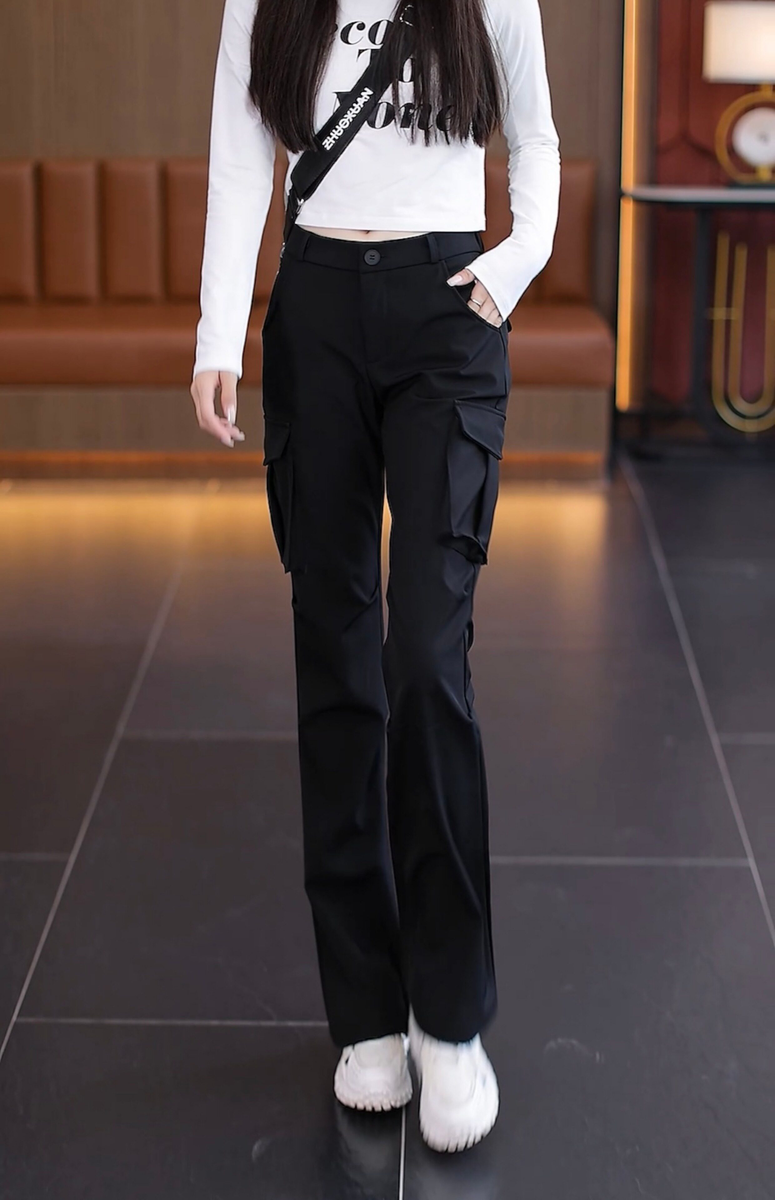 黑色工裝褲女2026新款秋季高腰顯瘦休閒直筒濶腿褲子美式微喇叭褲