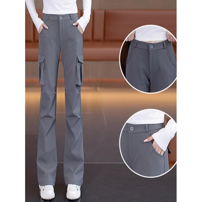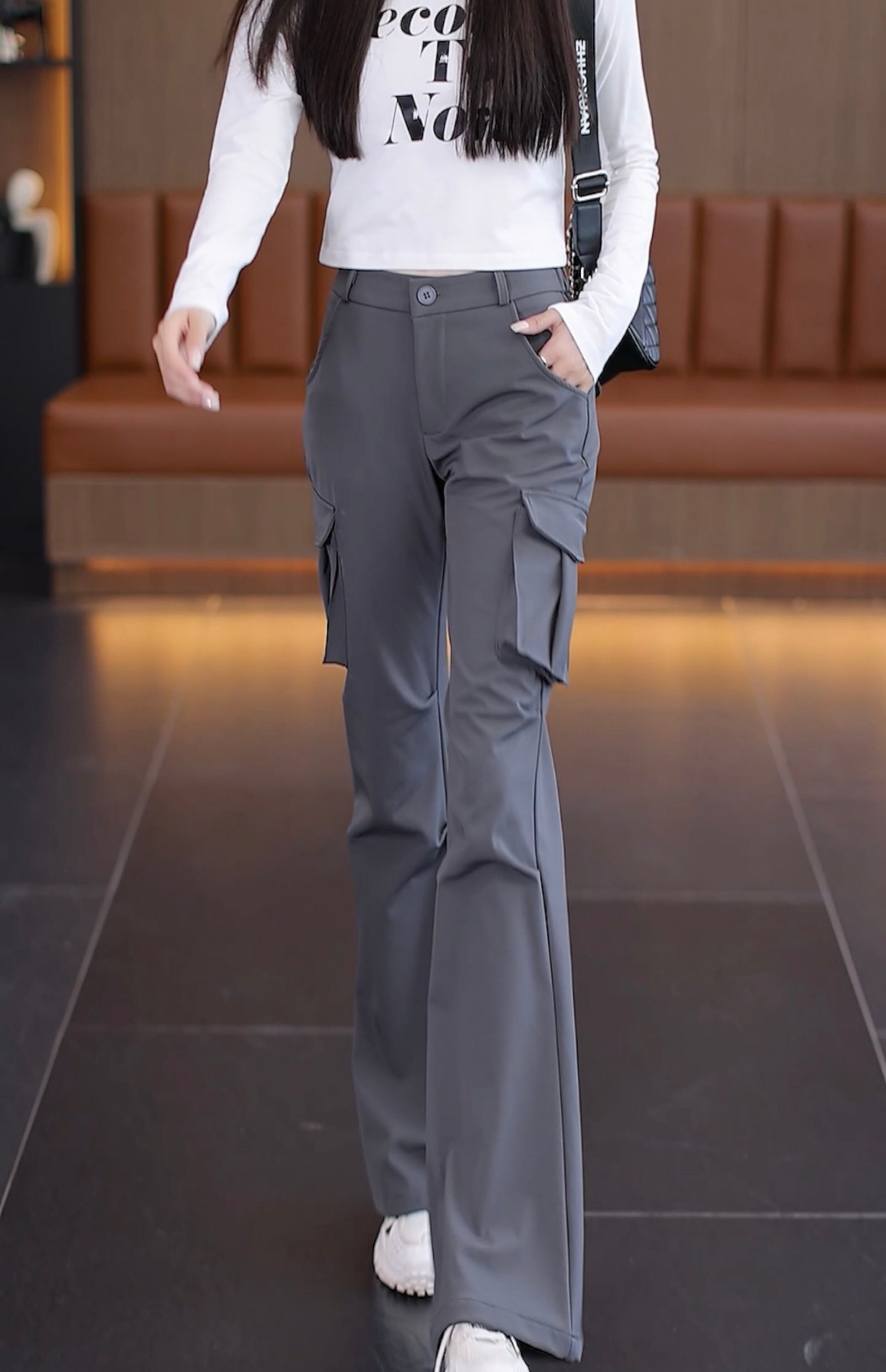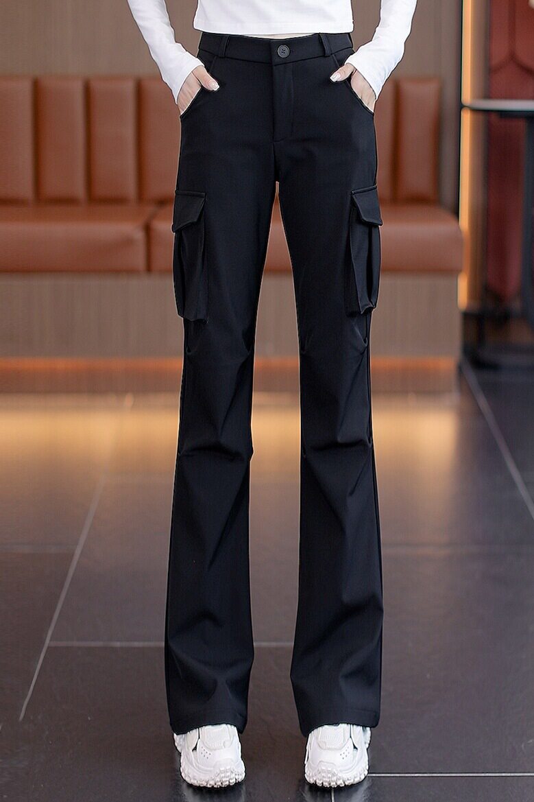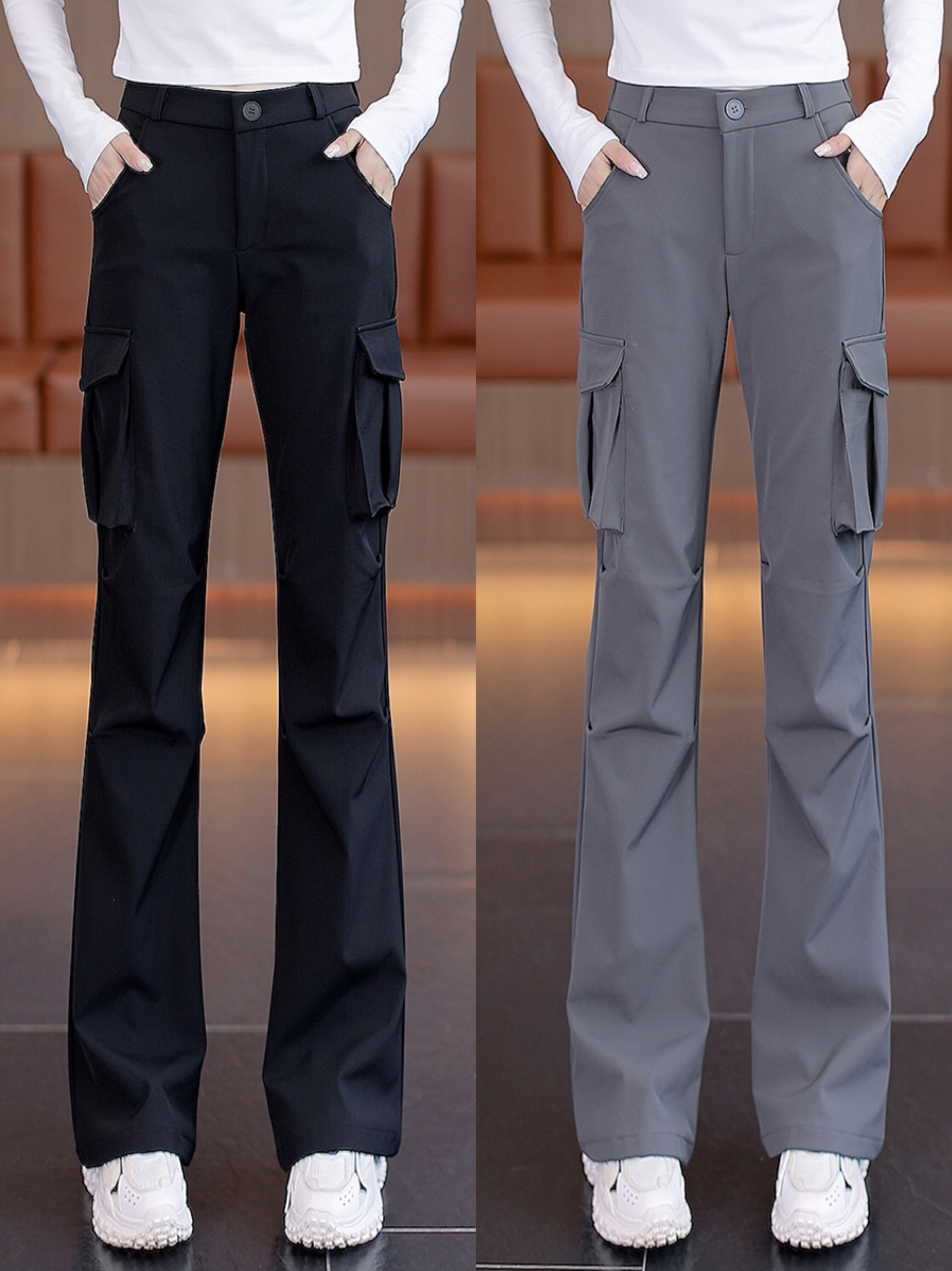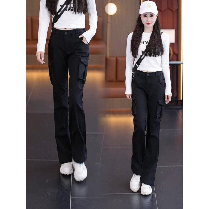 黑色工裝褲女2026新款秋季高腰顯瘦休閒直筒濶腿褲子美式微喇叭褲