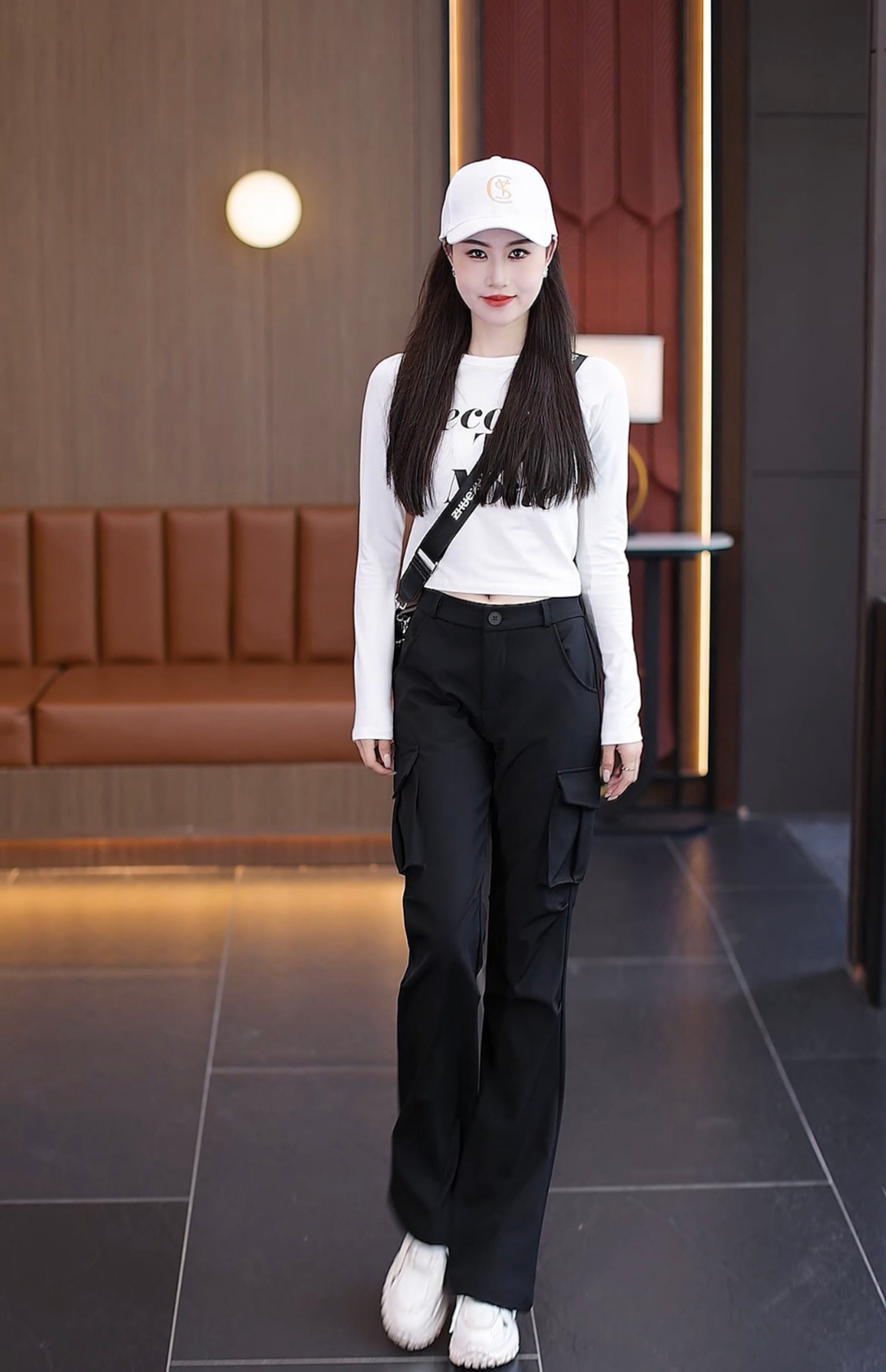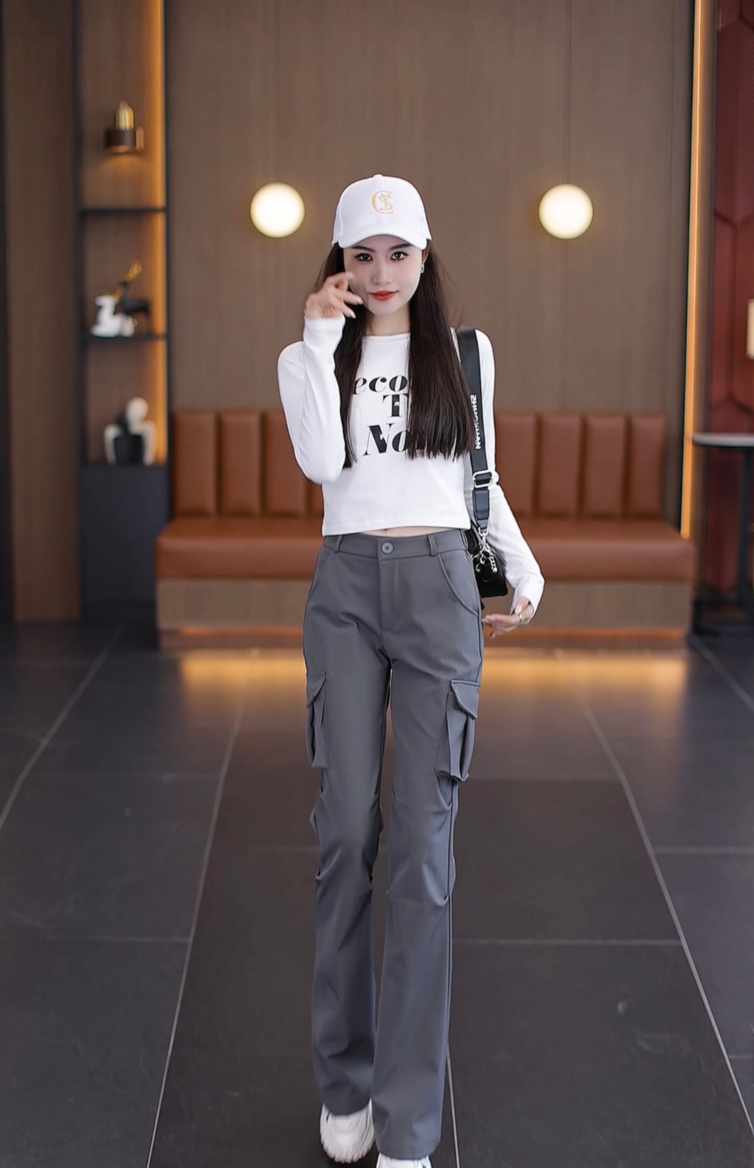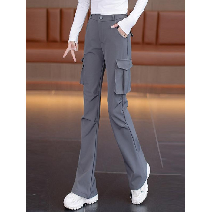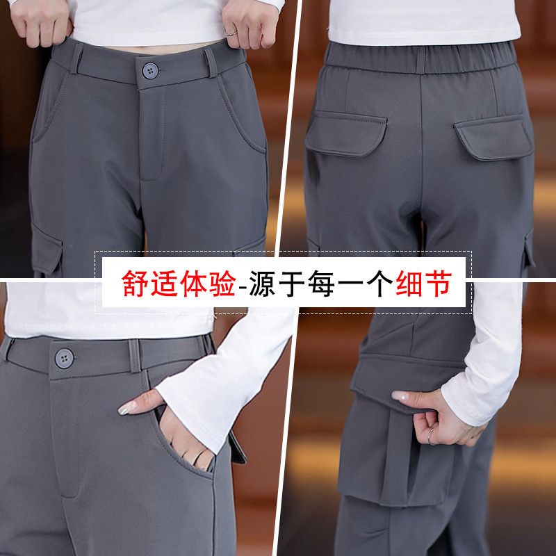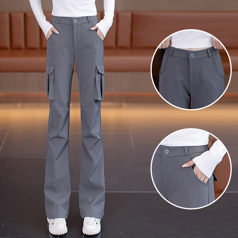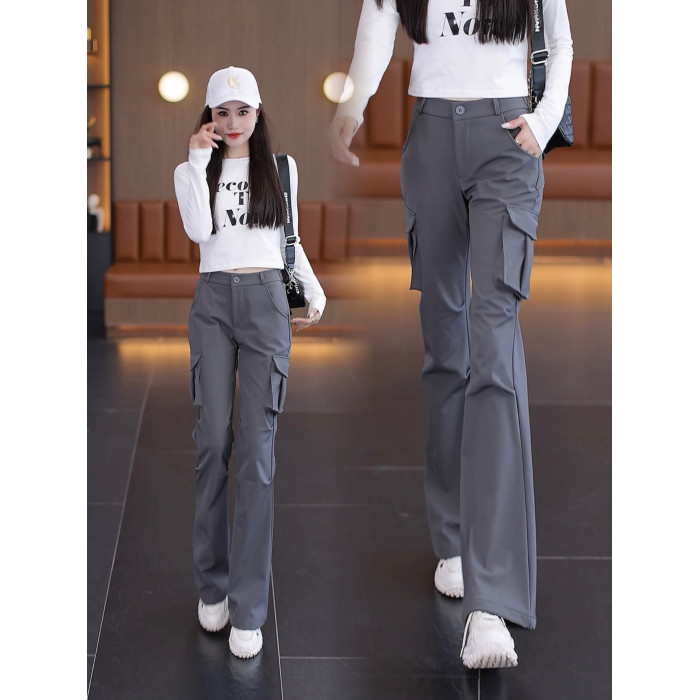 黑色工裝褲女2026新款秋季高腰顯瘦休閒直筒濶腿褲子美式微喇叭褲