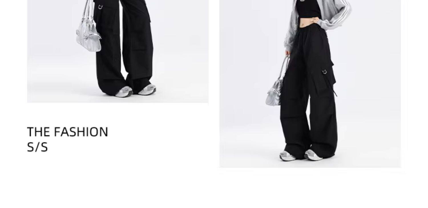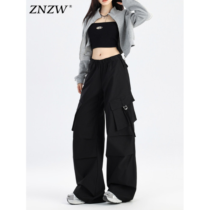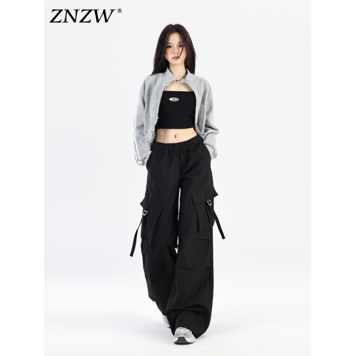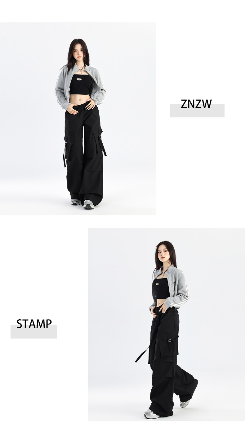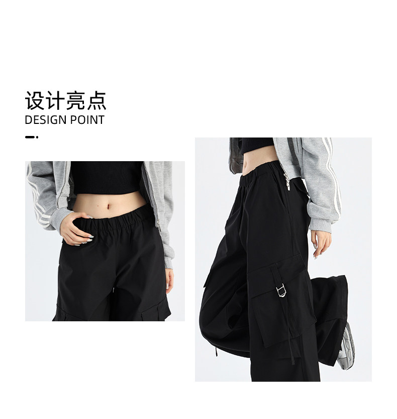 ZNZW黑色工裝褲女2025新款秋季美式甜酷直筒休閒垂感小個子濶腿褲