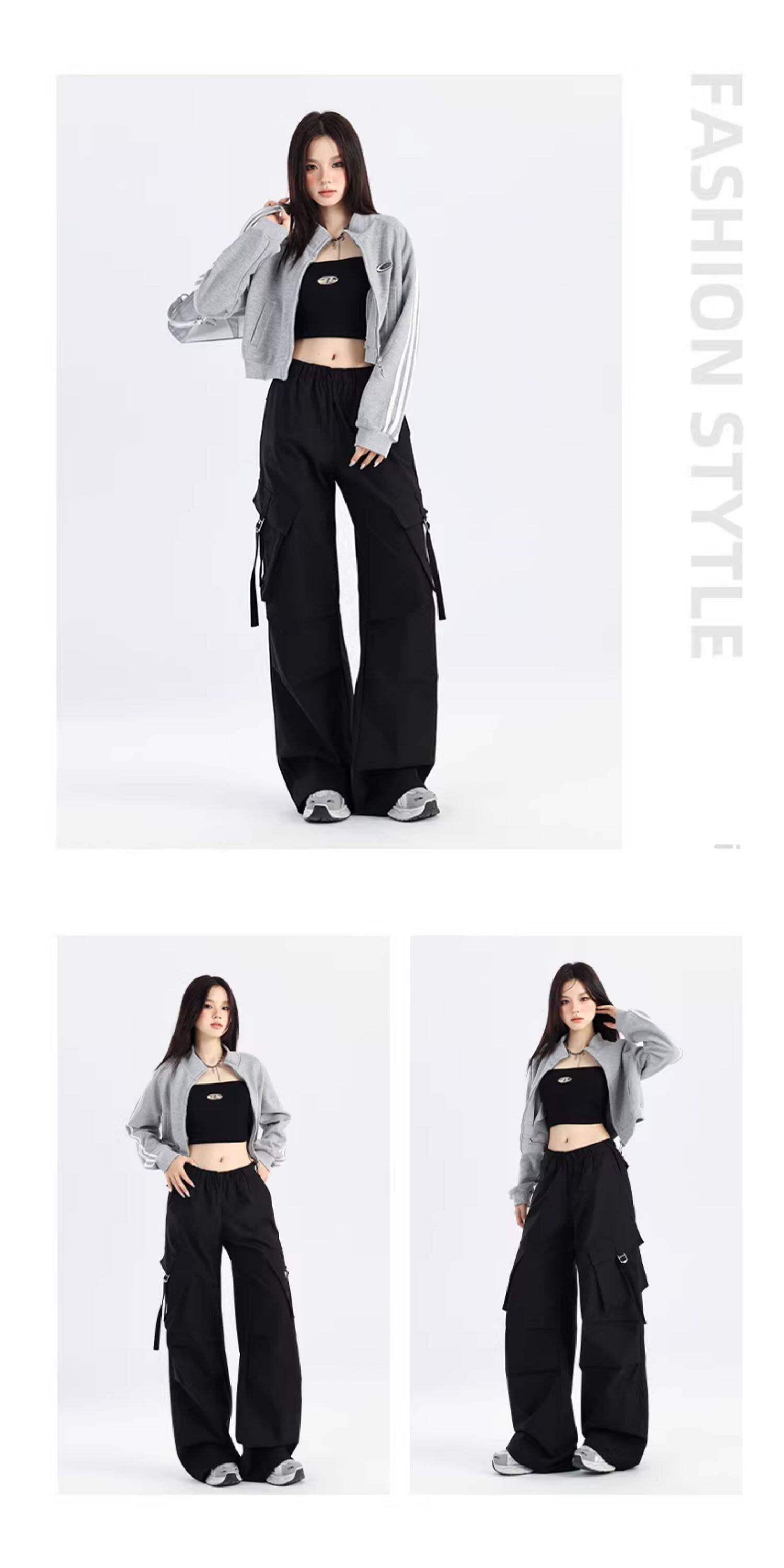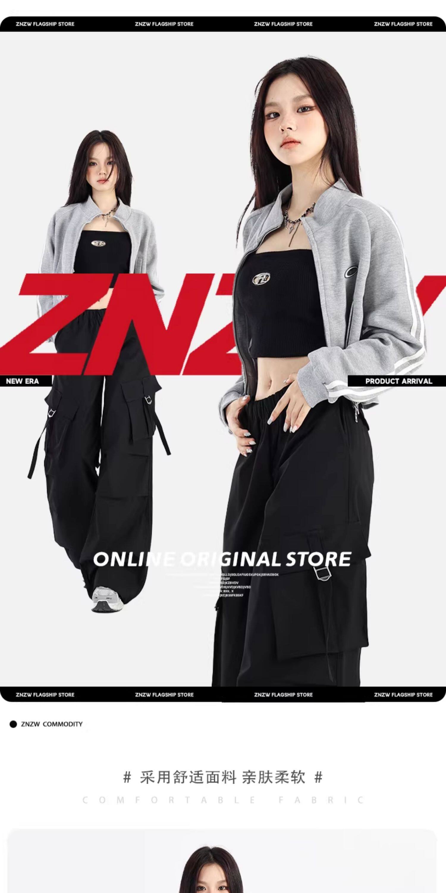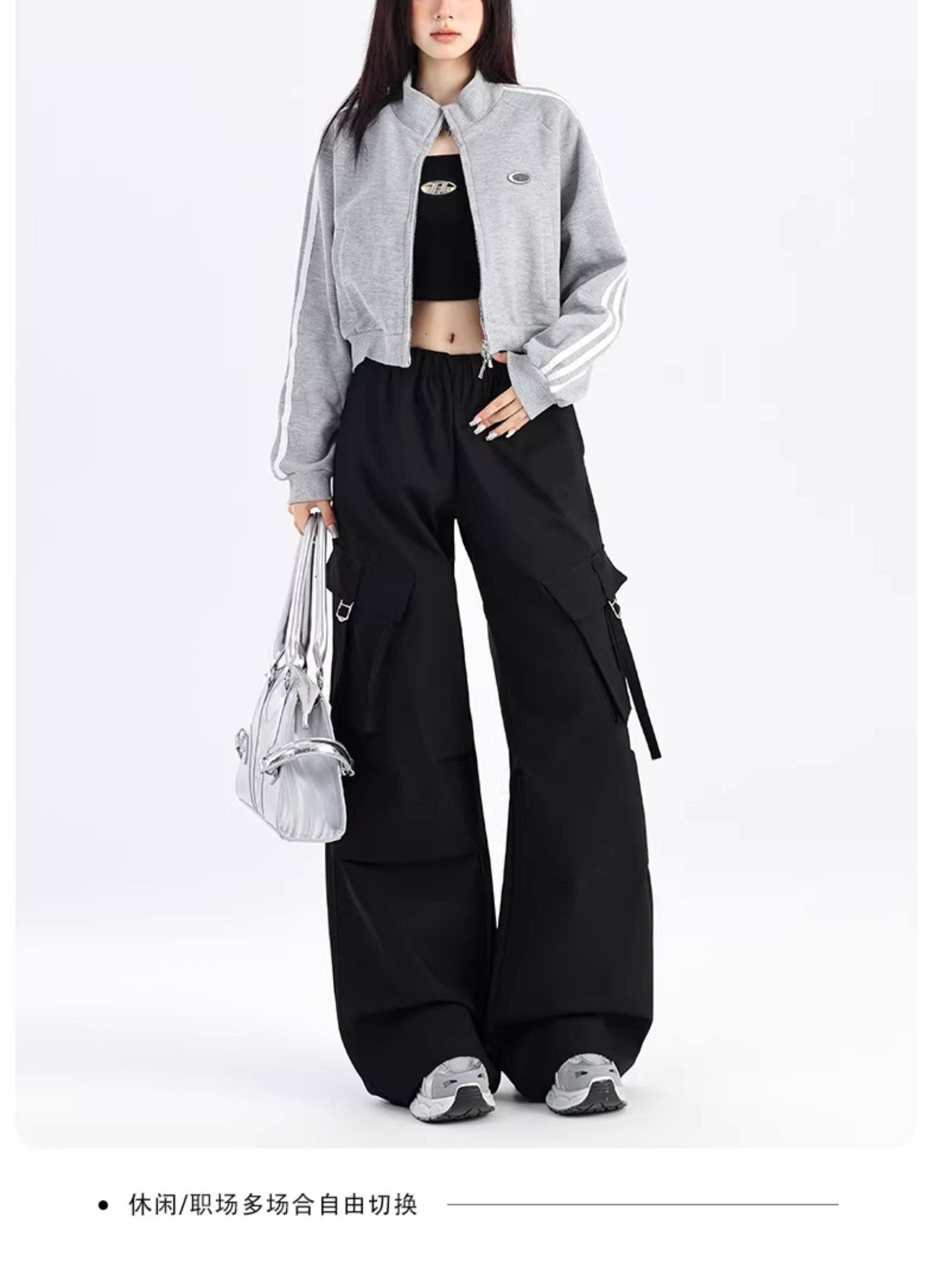 ZNZW黑色工裝褲女2025新款秋季美式甜酷直筒休閒垂感小個子濶腿褲